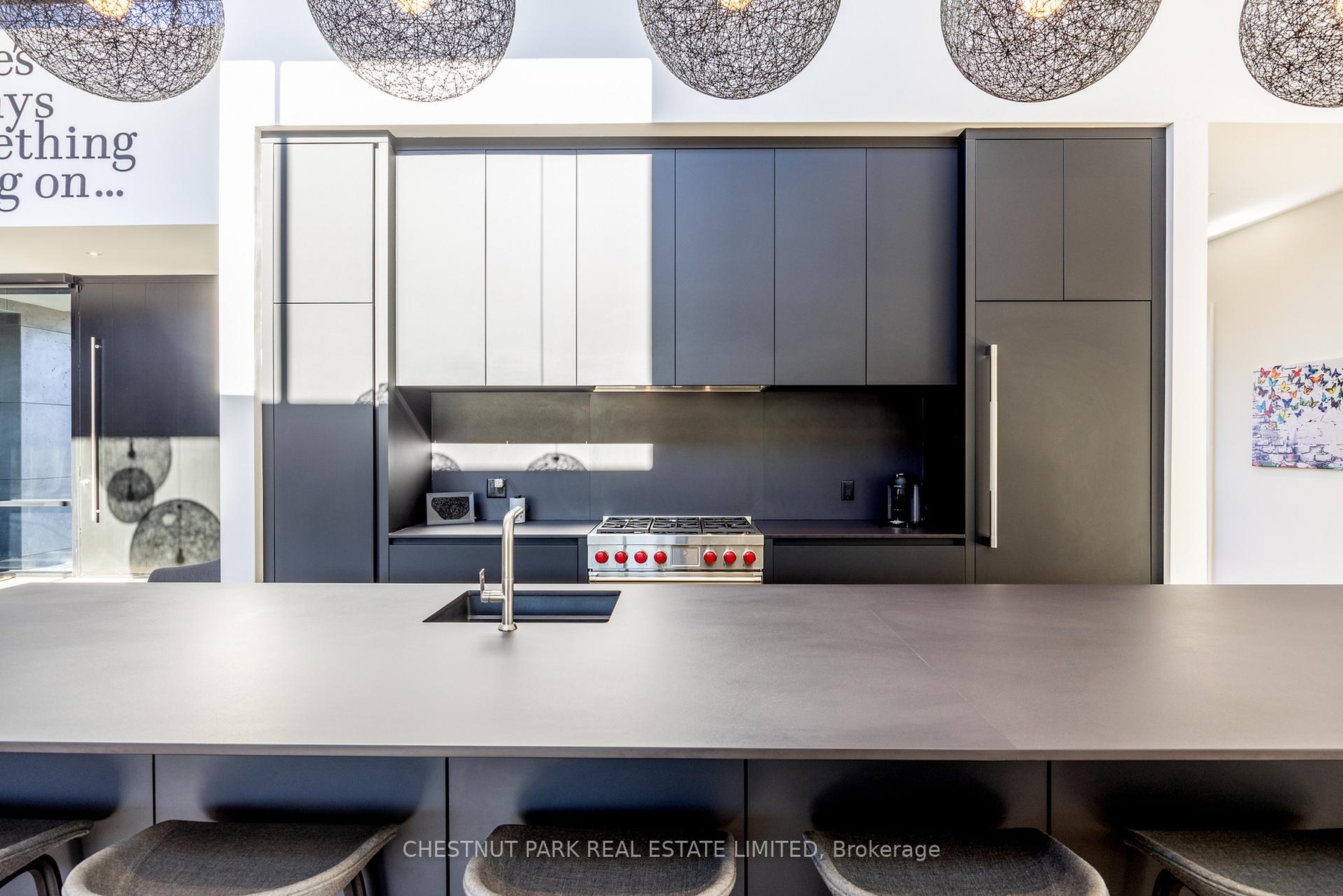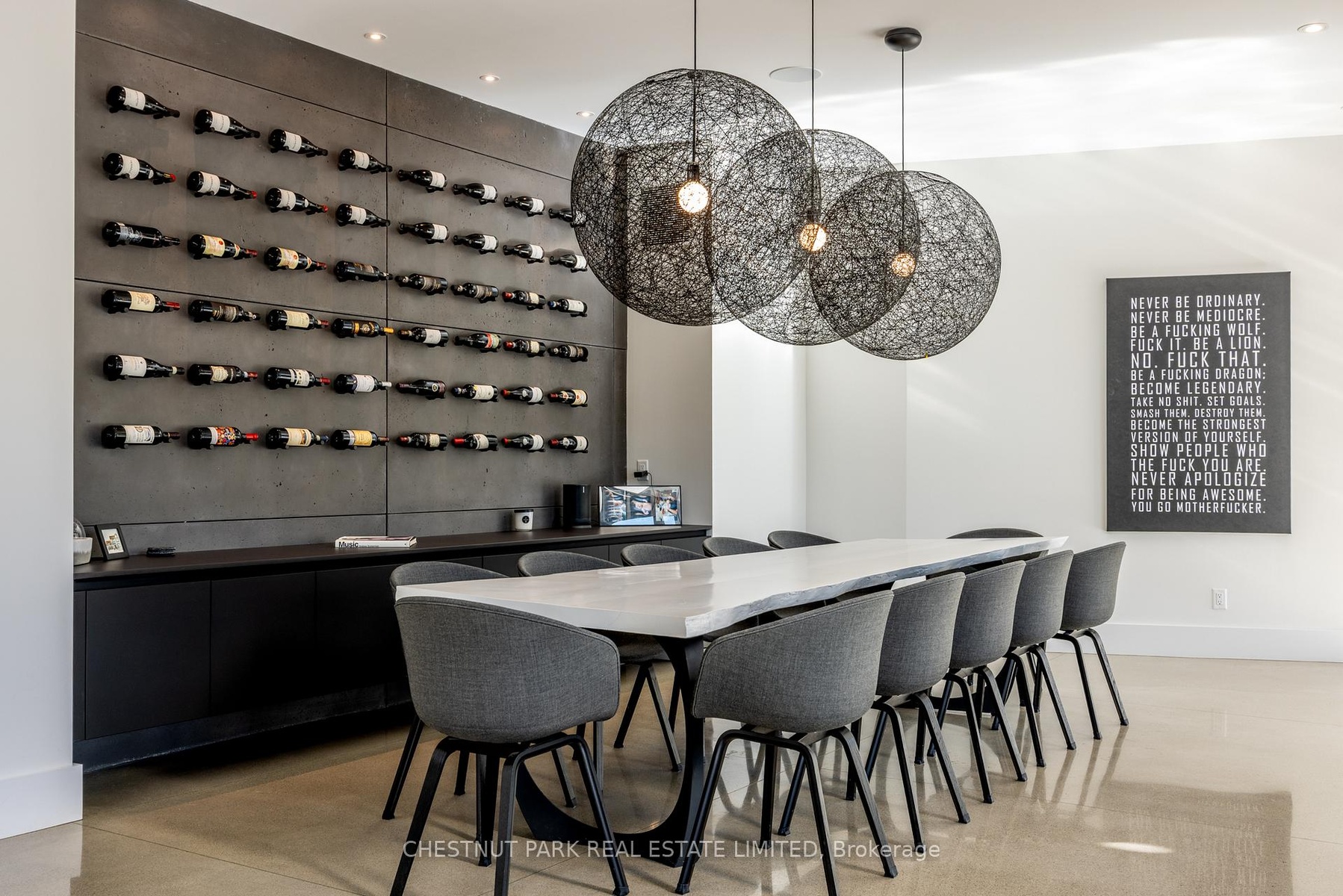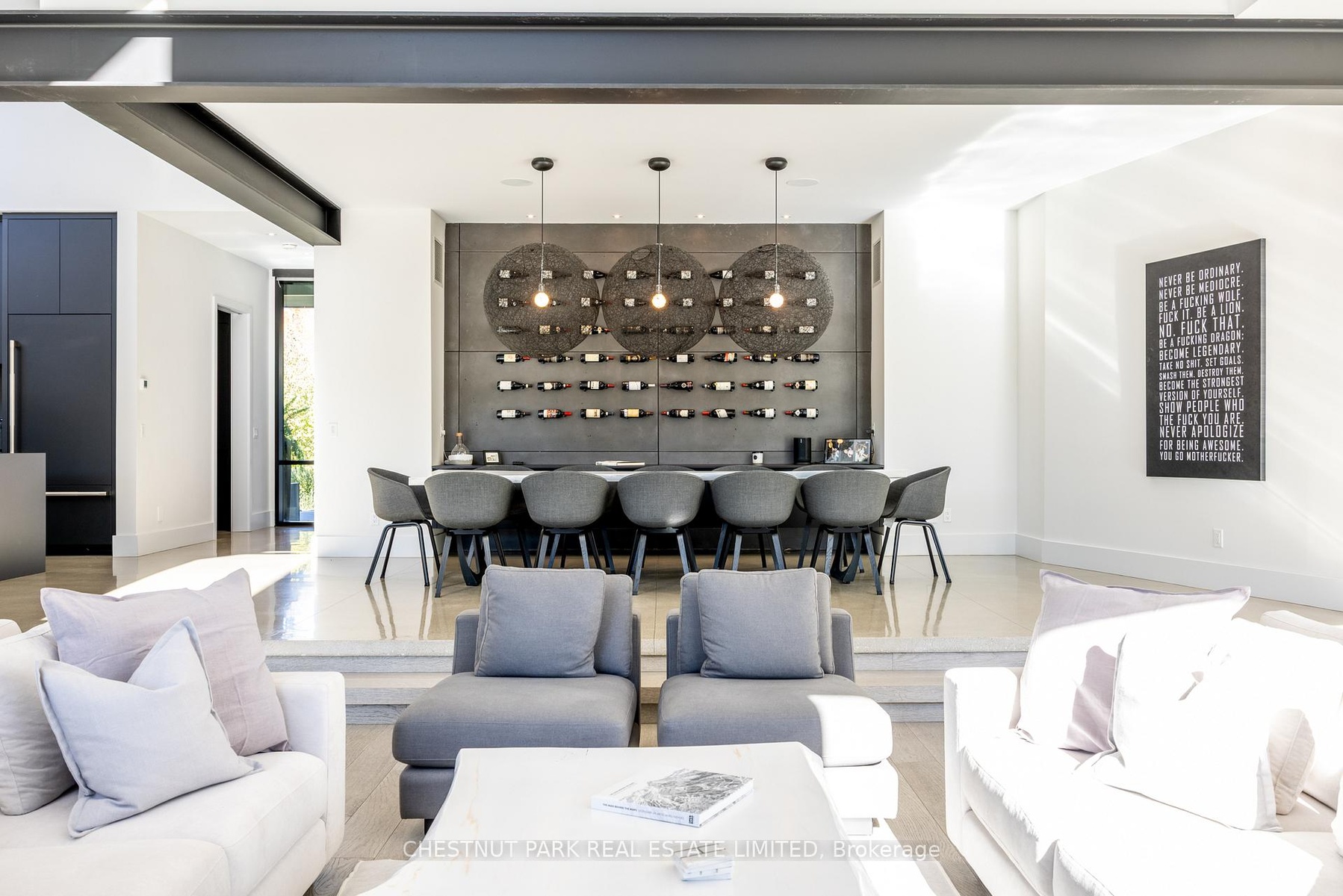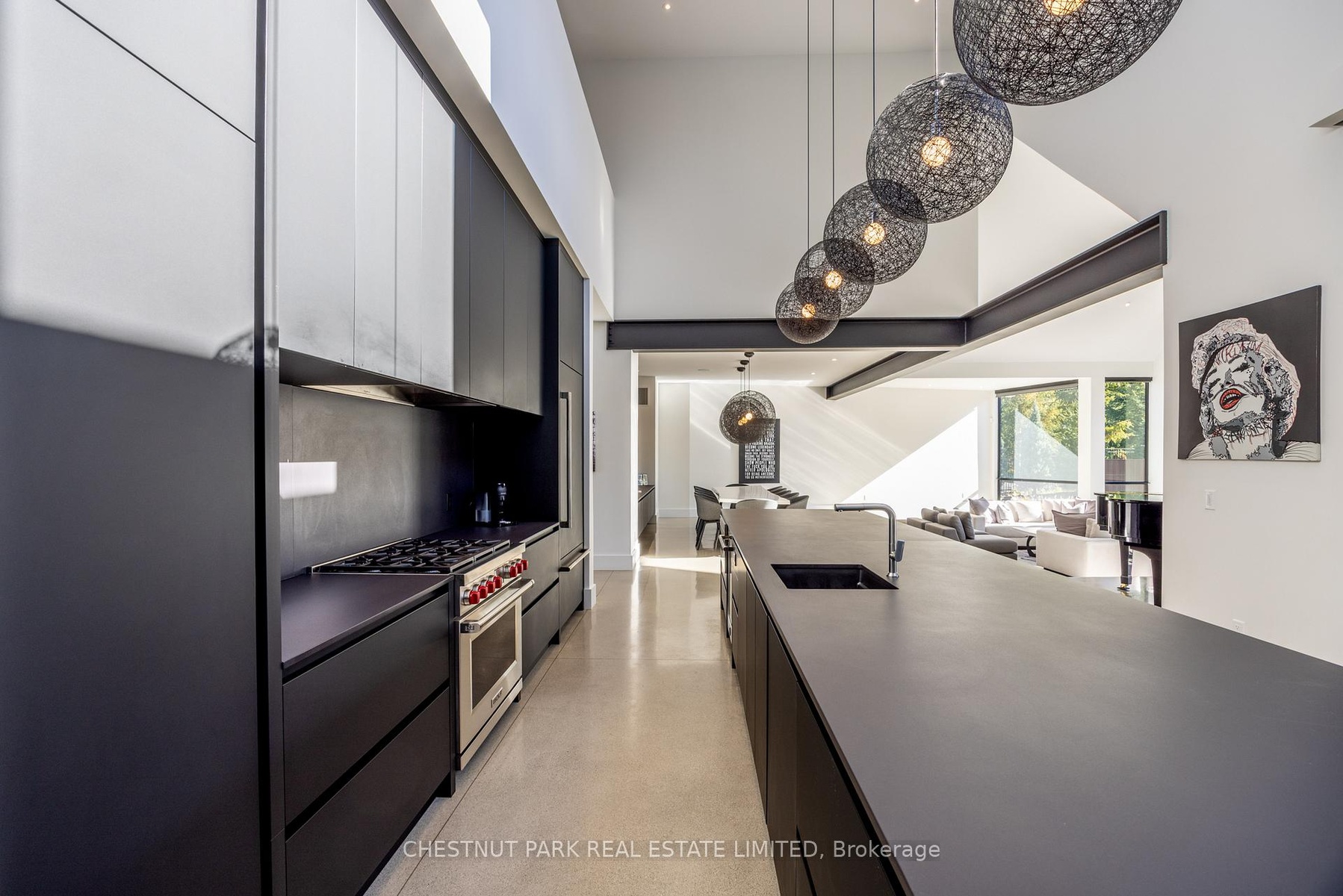 Architecturally stunning custom home in the exclusive Camperdown community, a coveted year-round golf, ski, and outdoor playground that epitomizes four-season living in Southern Georgian Bay. Over 9,000 sq.ft. of refined living space with soaring 20-ft ceilings, exposed beams, heated polished concrete floors and dramatic floor-to-ceiling windows that flood the interior with natural light. The sunken great room with a 24-foot stone fireplace exudes warmth and comfort - a space equally suited for quiet evenings or entertaining a hundred guests with ease. A striking matte-black kitchen anchors the main level with an 18-ft island, Wolf & JennAir appliances, and a fully equipped butler's kitchen for seamless hosting. The private primary wing is a true retreat featuring a fireplace, dual walk-in closets, and a spa-level ensuite with mountain views and a walkout to the hot tub. Upstairs, a junior primary suite impresses with vaulted ceilings, a 6-piece ensuite, and a private terrace, while two additional bedrooms open to a covered patio with escarpment views. The lower level is an entertainer's dream with a games lounge, wet bar, golf simulator, gym, music studio, and two more bedrooms. Outdoors, enjoy resort-inspired living with a waterfall pool, hot tub, and a covered lounge with wood-burning fireplace and built-in BBQ. Legal golf cart access to the Georgian Bay Club, and just minutes to Peaks, Blue Mountain, Thornbury, and Collingwood. A rare offering that captures the very best of four-season living in Southern Georgian Bay.