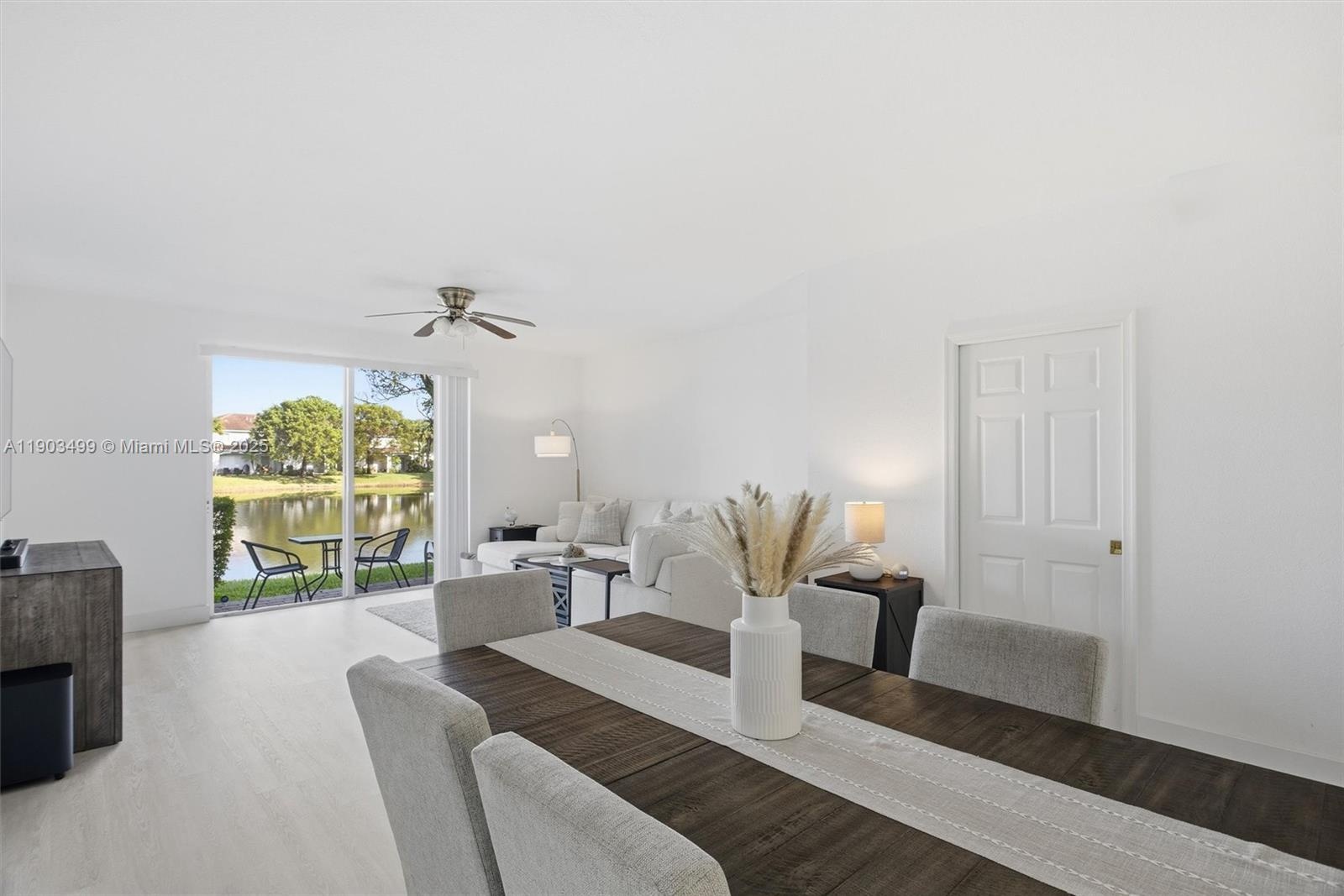 AMAZING 2 story townhouse featuring 3 bedrooms and 2.5 bathrooms, perfectly situated on the lake with stunning water views. Located in the desirable gated community of Tuscany, offering top amenities including a large pool, clubhouse, splash park, playground, basketball court, and security patrol. This home features a first-floor entry, open-concept living and dining areas, a modern kitchen with granite countertops and stainless steel appliances, a convenient powder room, modern engineered vinyl flooring, custom-built closets, a lakeside open patio, and energy-efficient foam insulation in the attic.