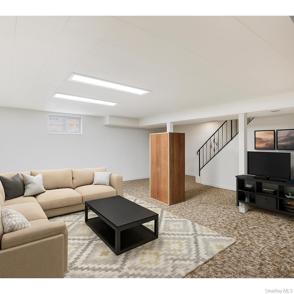 Venturing down to the finished basement, you discover a freshly painted area with comfortable carpeting, perfect for movie nights, a playroom, or even a home office. Additionally, there is a dedicated laundry and storage area, making life just a little bit easier.