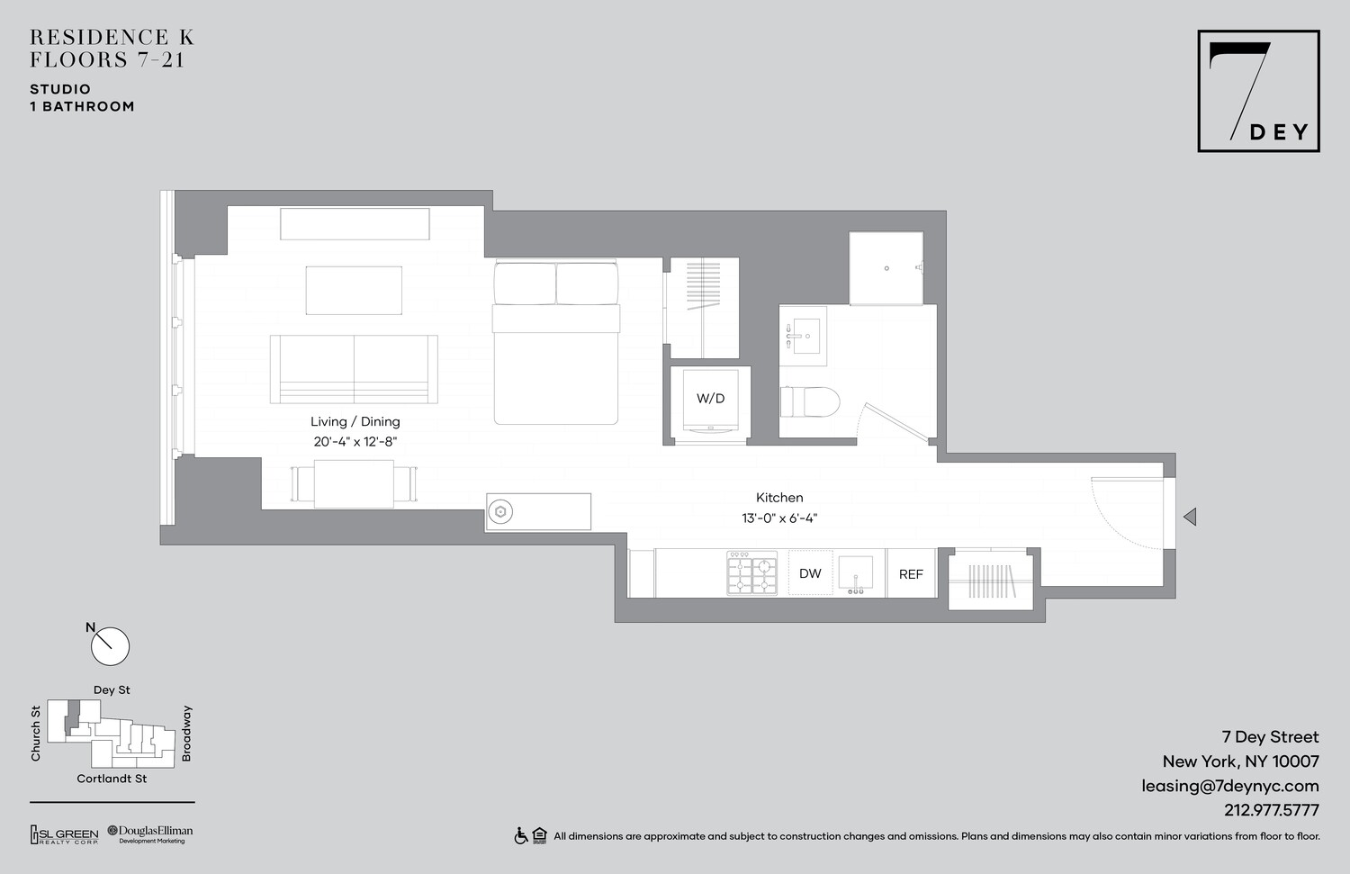 Perfectly positioned in the center of Downtown, 7 Dey offers stunning studio, one, two, and three bedroom luxury rental apartments with a select number of units featuring private terraces.