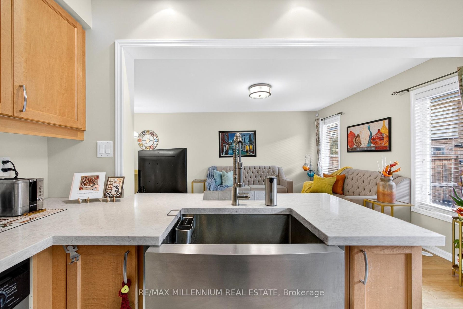 Welcome to this Energy Star-rated Mattamy-built Amesbury model, ideally located on a quiet street in one of Milton's most sought-after neighbourhoods. practicality in one of Milton's most desirable communities. This home offers a smart layout, chic finishes, and versatile living space. The exterior highlights attractive stamped concrete, parking for 4 cars, and great curb appeal. Step inside to find a bright, well lit, and open main floor featuring hardwood flooring, a spacious living/dining area, with a spacious and modern kitchen along with quartz countertops, upgraded stainless steel appliances, farm sink gas stove. The patio glass door "brings inside out" by seamlessly connecting living spaces, maximizing natural light, and creating an expansive feel. Your private fenced patio-an ideal spot for BBQs, outdoor gatherings, or evening stargazing. Upstairs, you will find three generously sized bedrooms with full size windows including a primary retreat with walk-in closet and semi-ensuite bath with linen closet. Direct garage and basement access from the kitchen add immense convenience for daily tasks The finished legal basement adds exceptional value, complete with a 4-piece bathroom, kitchenette, pot lights, and open concept room-offering the perfect setup for a home office, in-law suite, or rental income potential with direct access from the garage with automatic garage opener. This move-in ready home also provides unmatched convenience. Enjoy being just steps from Grocery Stores, Parks, Lake, Scenic Trails, Conestoga College, Wilfrid Laurier University Campus, Schools, Shopping Malls, Eateries, Hospital, and Public Transit. Commuters will appreciate the quick access to major highways, making travel a breeze. This upgraded and renovated home is ready for its next owners.