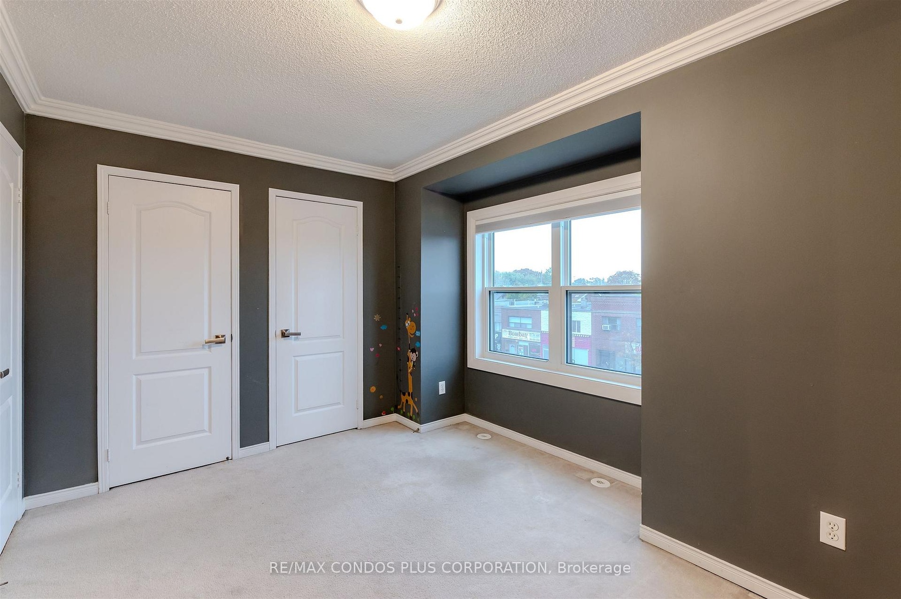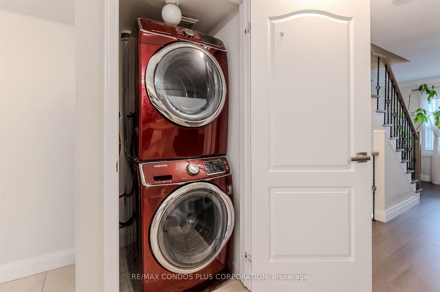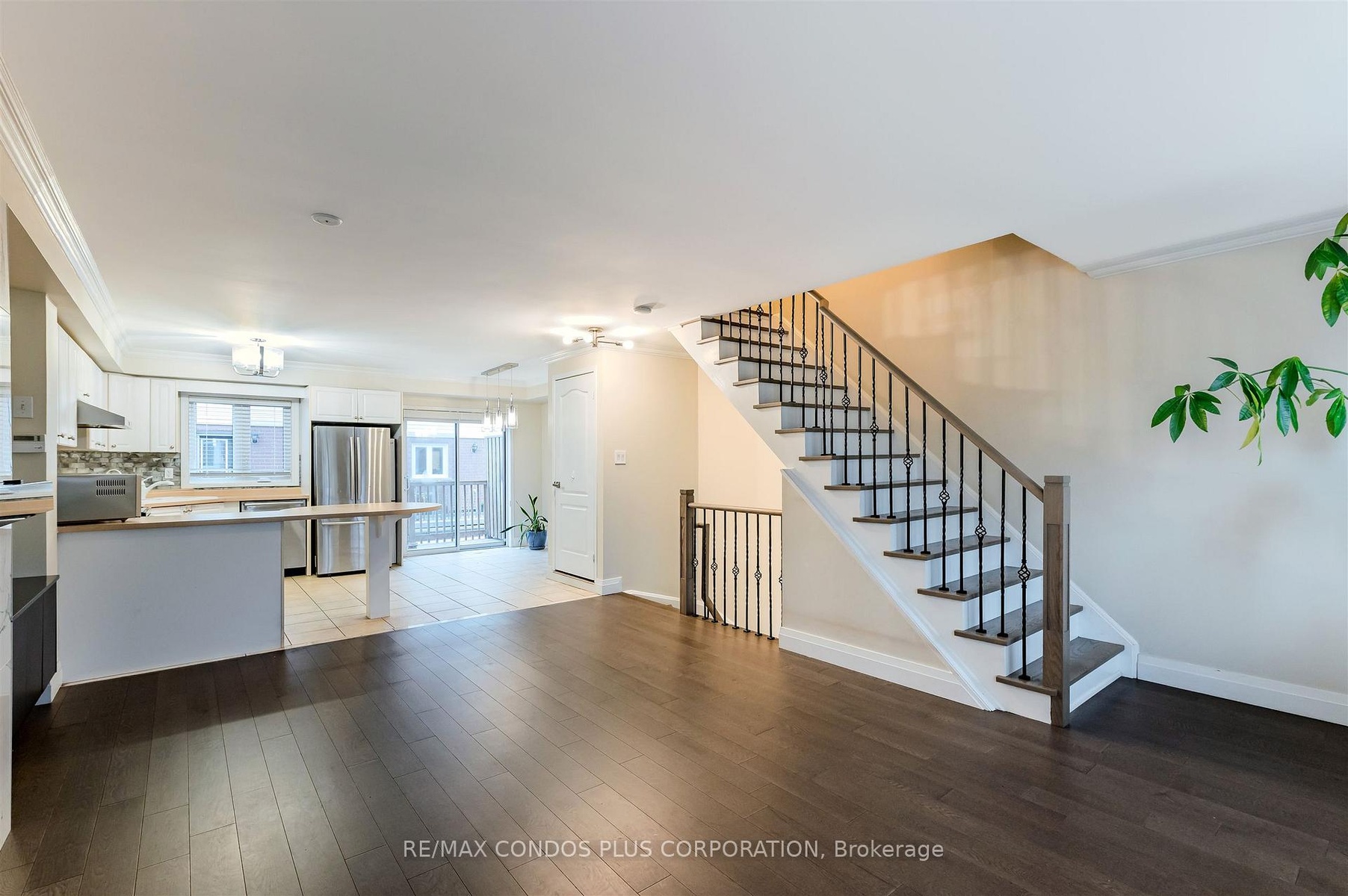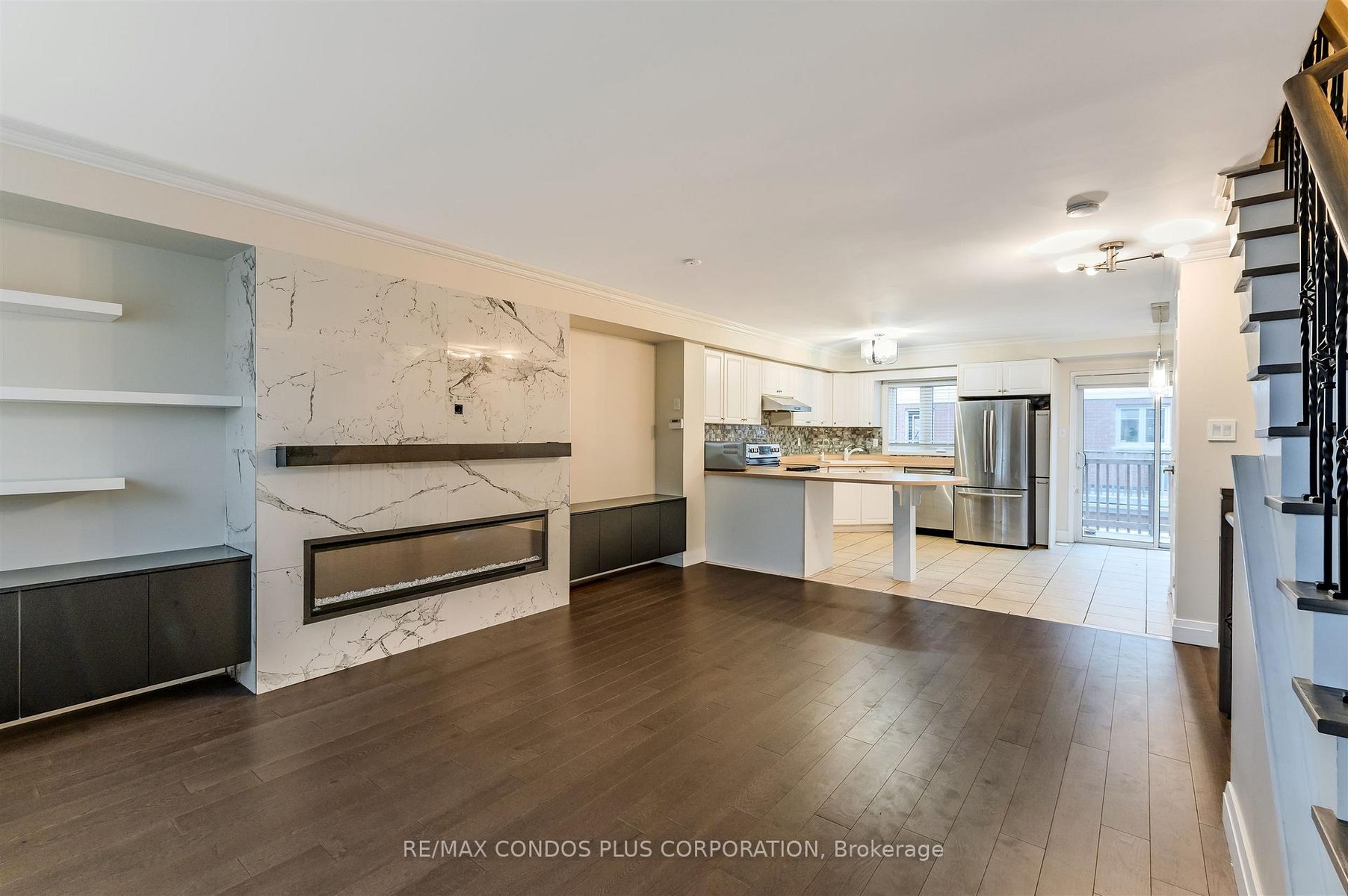 Experience over 1,500 sq. ft. of modern living in this stunning 2-bedroom, 3-bathroom townhome with a functional open-concept layout. Hardwood floors grace the stairs, living, and dining areas, anchored by a striking stone feature wall with fireplace. The kitchen boasts newer stainless steel appliances and a walkout to a private deck-ideal for entertaining or relaxing.A main-floor office doubles as a potential third bedroom with triple-pane windows for soundproofing. The primary suite features his-and-hers closets and an ensuite, while the secondary bedroom also offers its own ensuite, both room have soundproof windows. Triple-pane windows in both bedrooms ensure peace and quiet.Enjoy the convenience of a rare heated double-car garage with direct access. Steps from the 501 Queen St. streetcar, this home is close to shops, restaurants, green grocers, and local amenities including a pool, ice rinks, and a skating loop.
