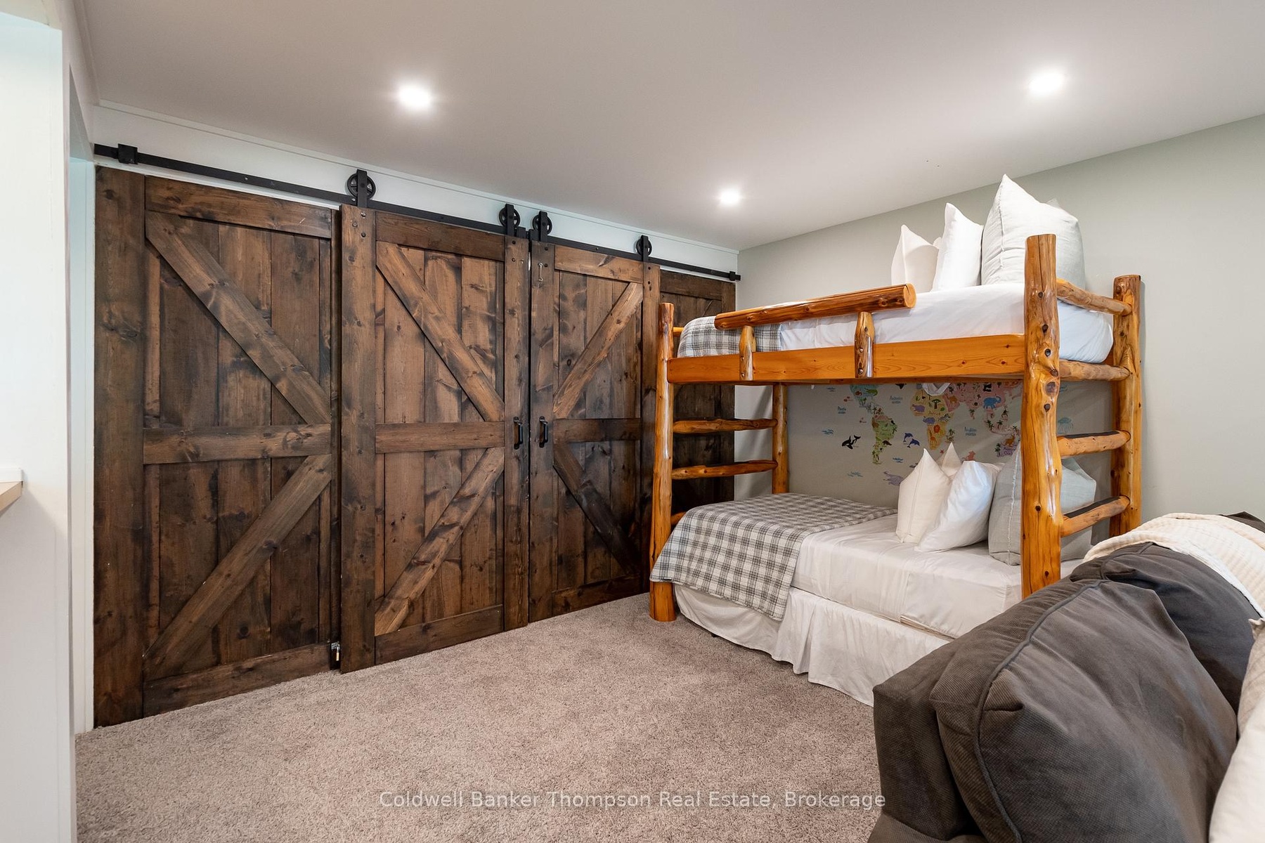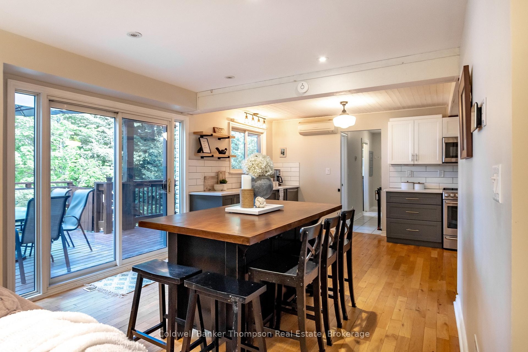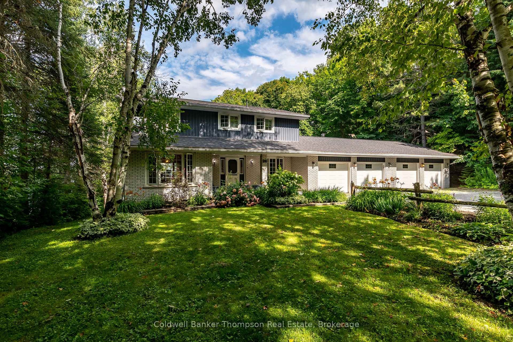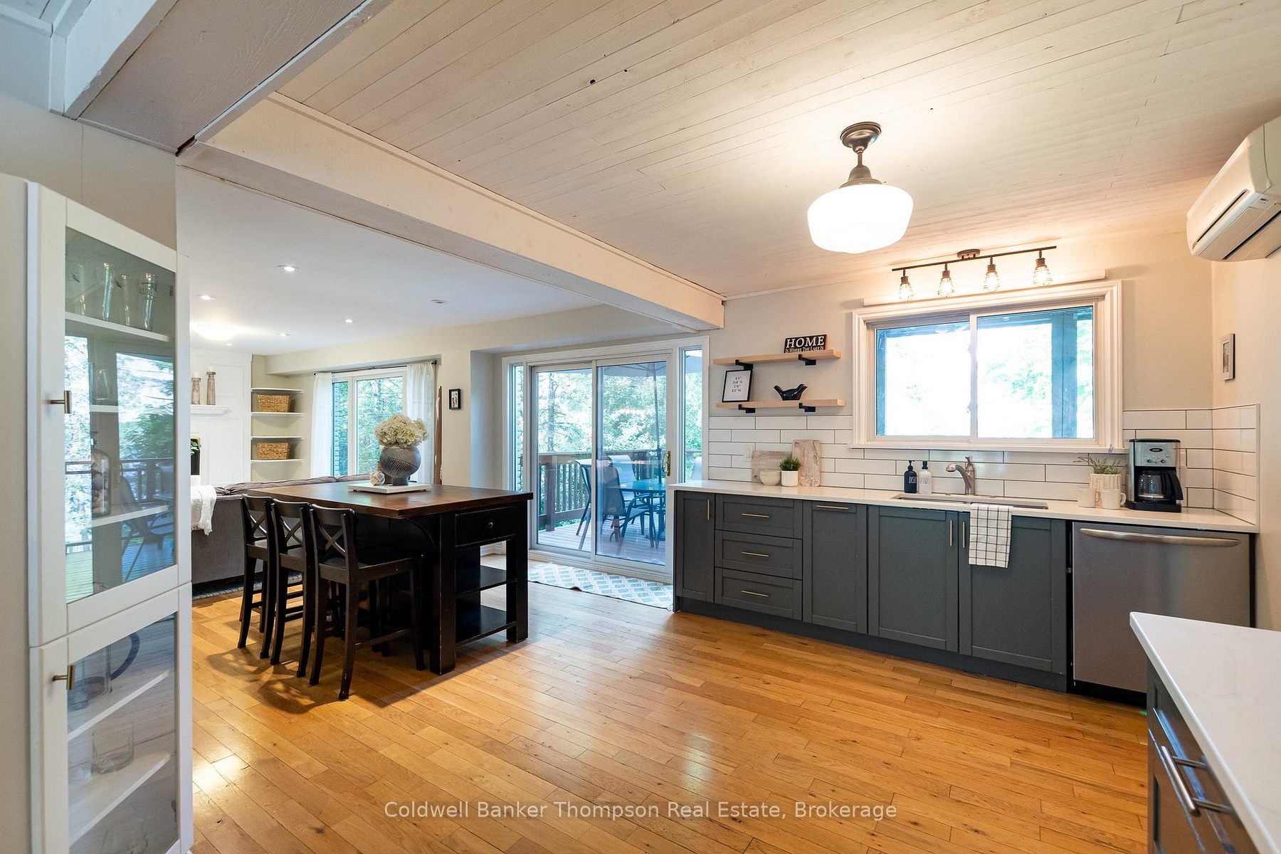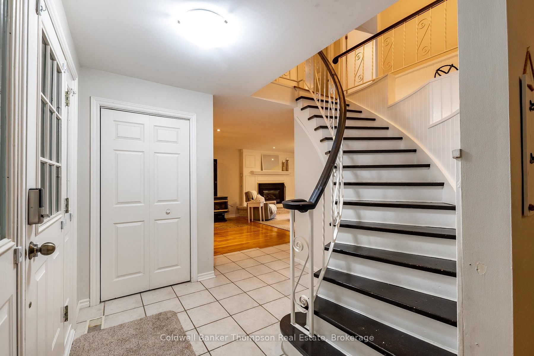 A rare offering on the shores of Fairy Lake, this beautifully upgraded 4-bedroom, 4-bathroom home or cottage offers the ultimate waterfront lifestyle on a completely level lot. Level land at the waters edge is an uncommon and valuable find, providing ease of access for all ages and making outdoor enjoyment, from lawn games to lakeside lounging, effortless and safe. Tucked on a quiet one-way street with minimal traffic, this location offers a peaceful setting just minutes from downtown Huntsville. Enjoy the convenience of full municipal services, including natural gas, water, sewer, and curbside garbage/recycling, a true luxury for a waterfront property. Inside, the home offers over 3,000 sq ft of stylish and functional space. The main floor is bright and open, with a modernized layout featuring a cozy wood stove, natural gas fireplace, and walkouts to a lakeside deck perfect for entertaining. Upstairs, four bedrooms which include three large guest bedrooms share a charming 4-pc bath with a freestanding clawfoot tub. The primary suite offers privacy and comfort with its own 3-pc ensuite, walk-in closet, and private balcony overlooking the lake. The walkout lower level is ideal for family fun and relaxation, featuring a rec room, gas fireplace, wet bar, two dens or offices, and a 3-pc bath. Recent upgrades include: opened main floor (2015), attic re-insulated (R4), sewer connection (2018), full basement reno with upgraded panel (2020), and new shingles (2022). Swim, paddle, or boat from your shoreline with access to over 40 miles of connected waterways. With a four-car garage, ample parking, and walking distance to shops, the LCBO, and Starbucks, this property blends lakeside serenity with in-town convenience. Whether you're seeking a full-time residence or a seasonal getaway, this flat, fully serviced property on Fairy Lake is an exceptional place to make lasting memories.