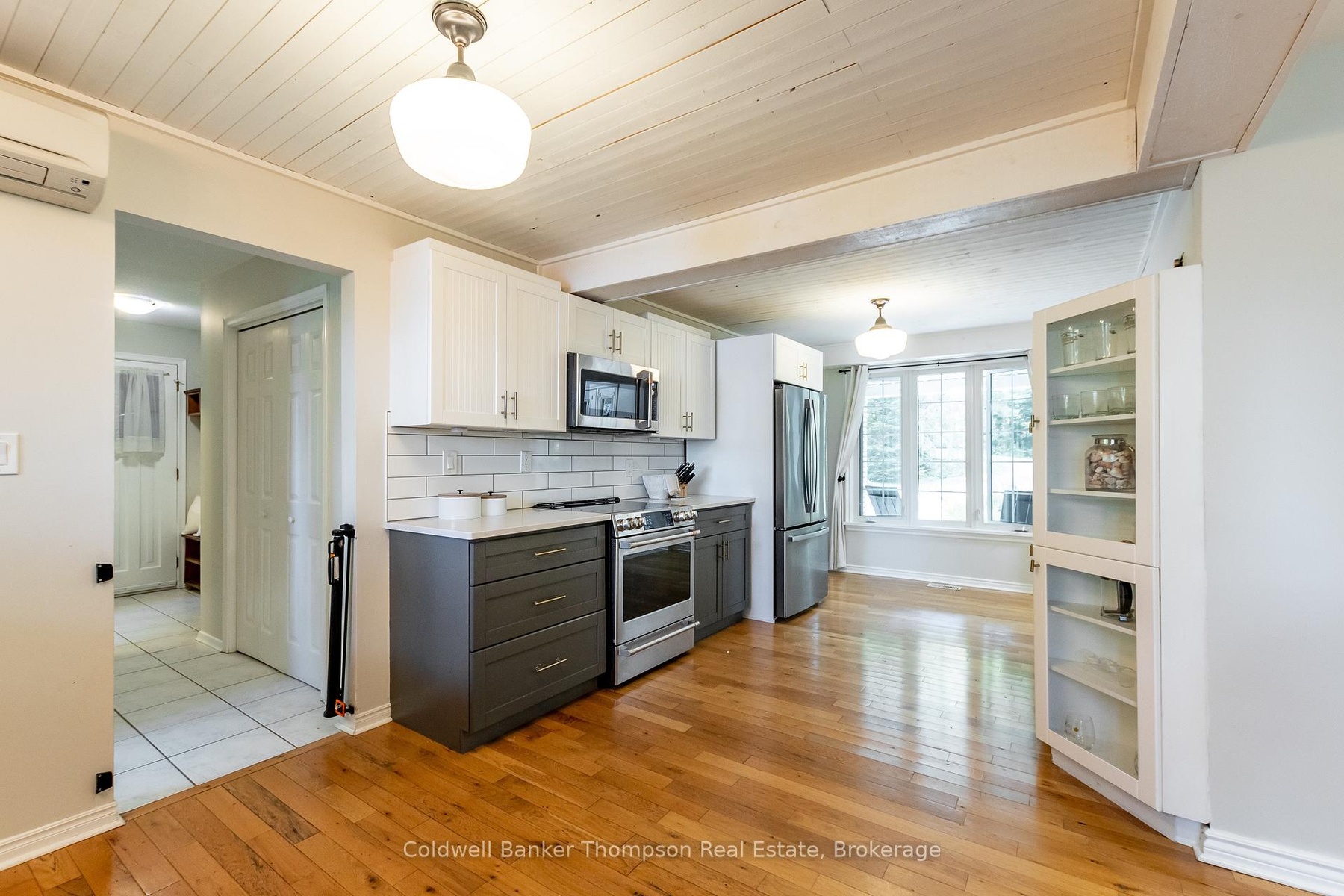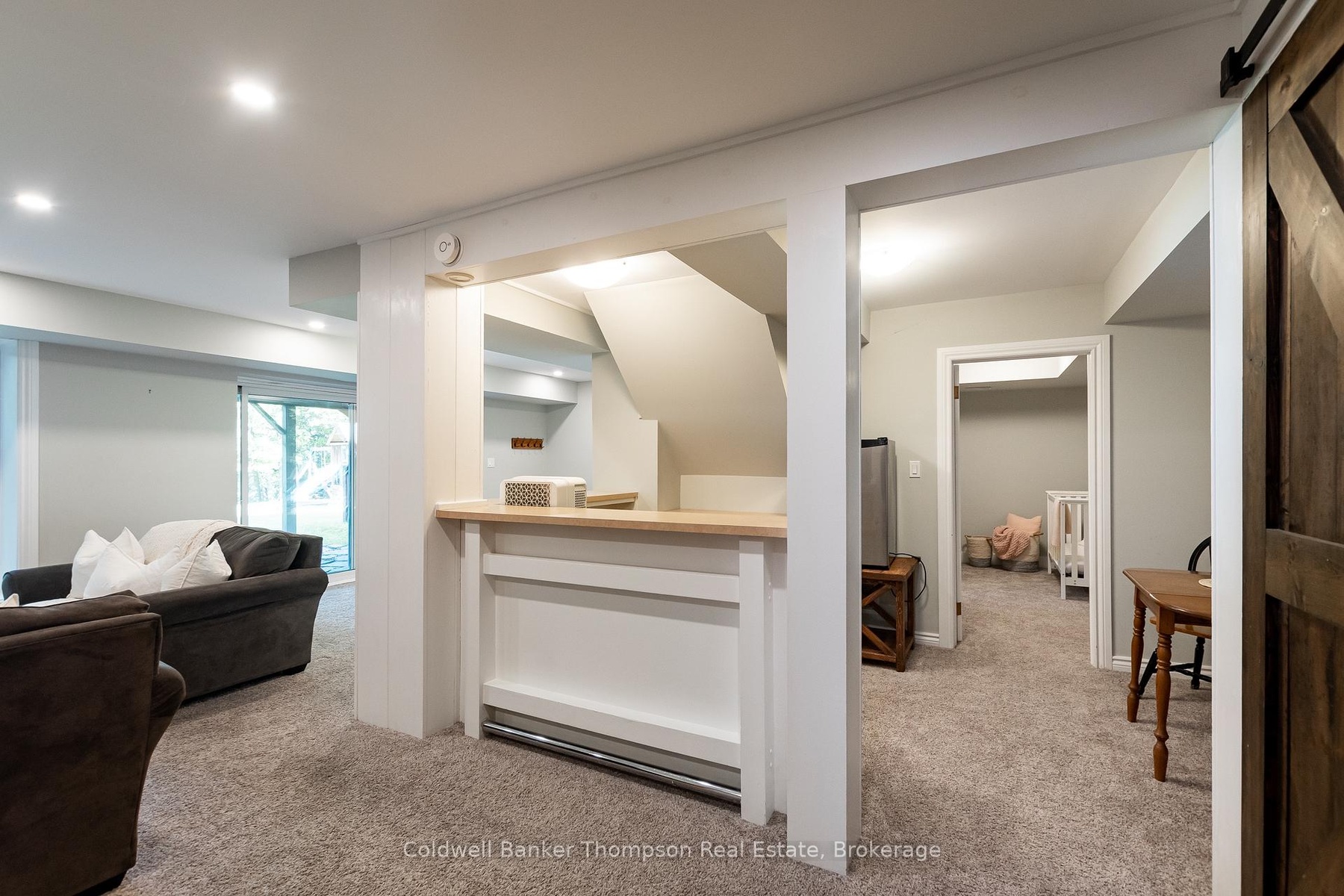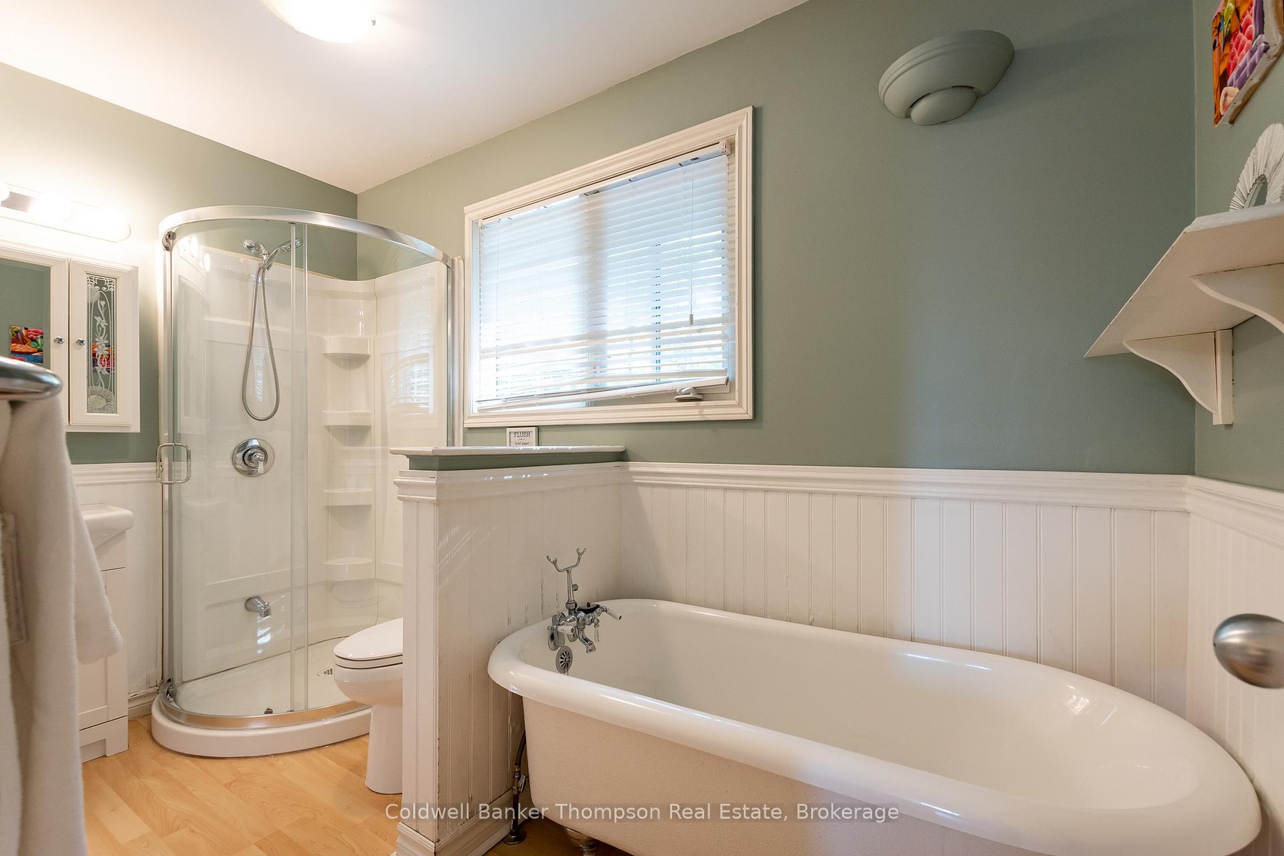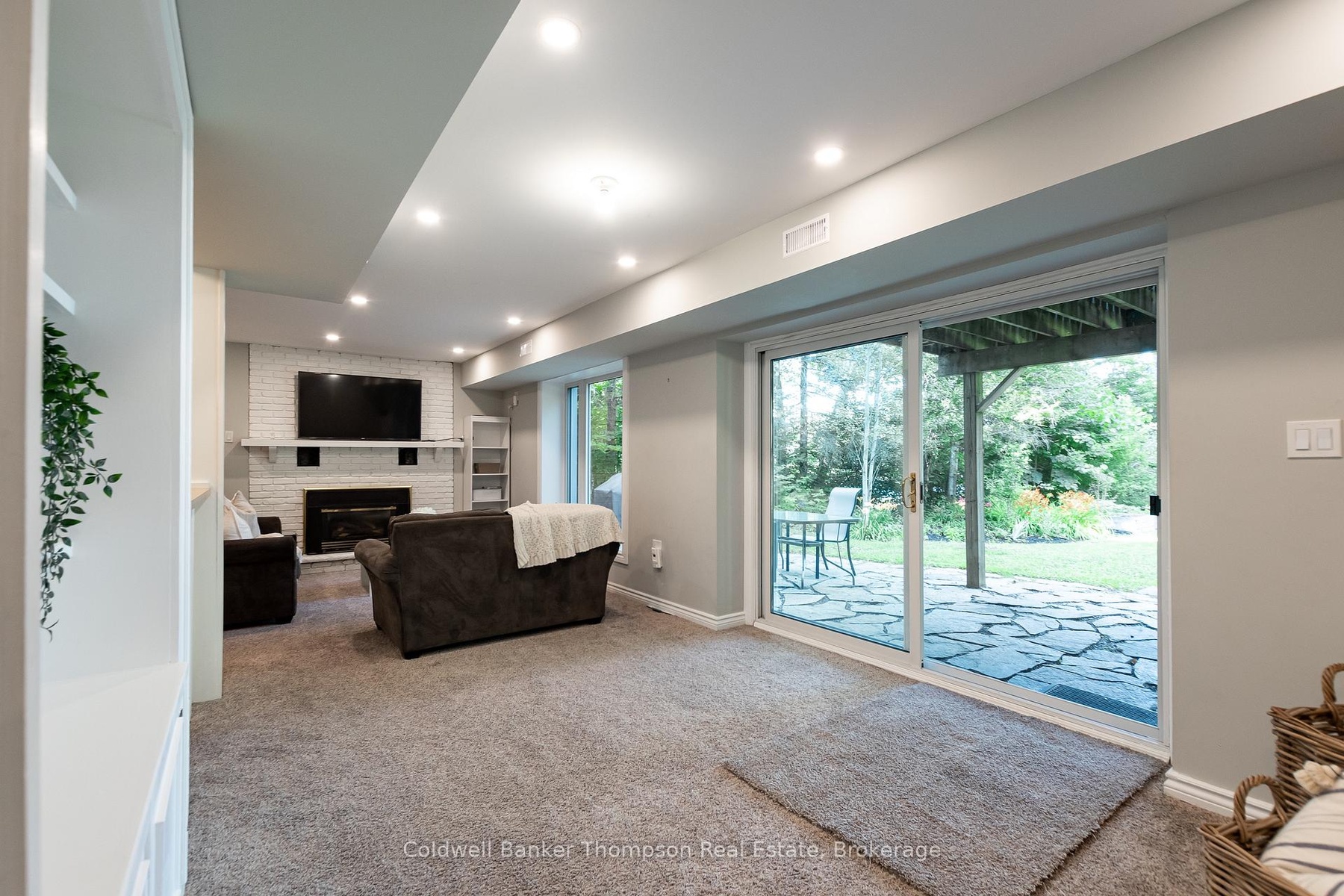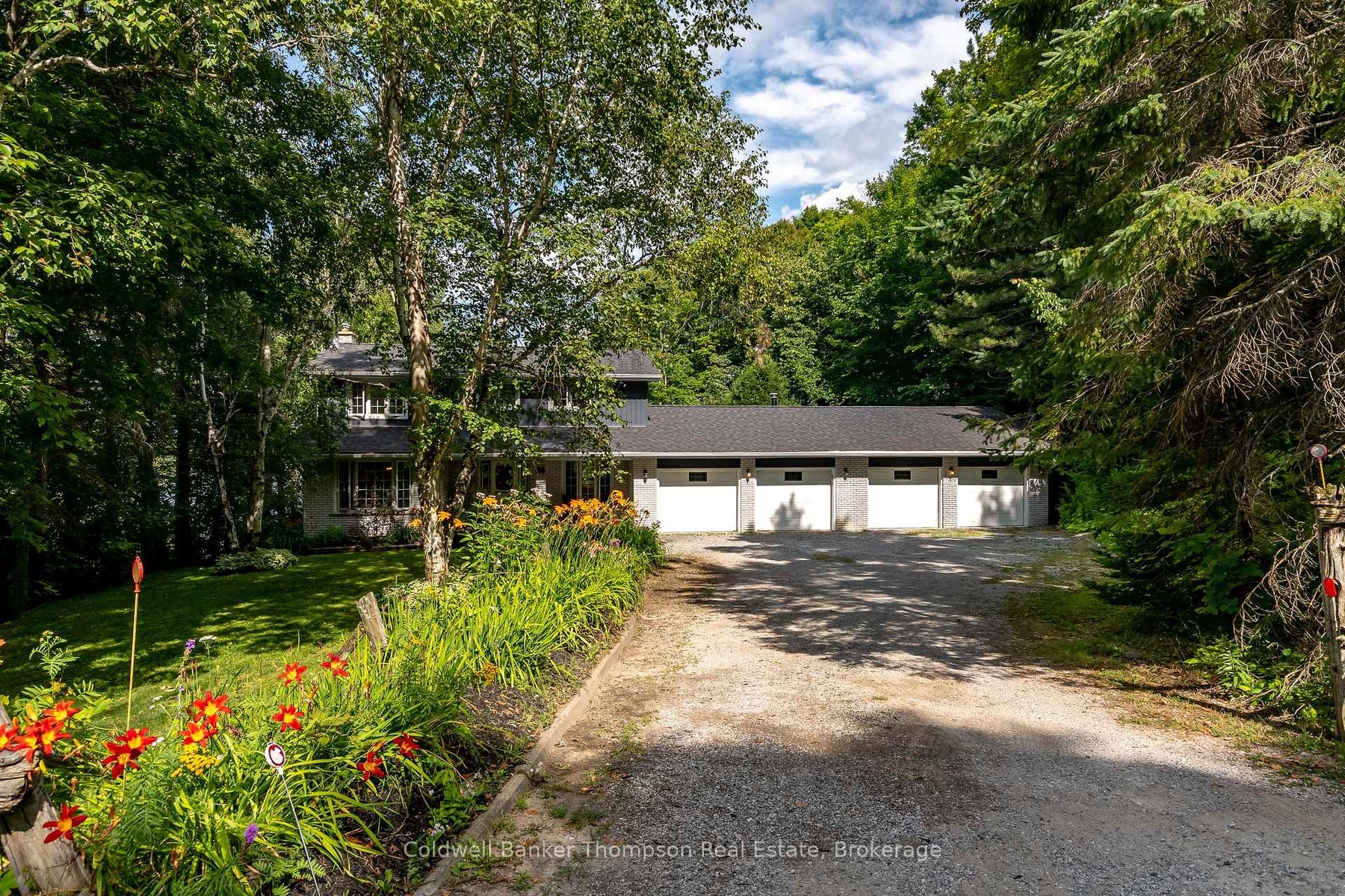 A rare offering on the shores of Fairy Lake, this beautifully upgraded 4-bedroom, 4-bathroom home or cottage offers the ultimate waterfront lifestyle on a completely level lot. Level land at the waters edge is an uncommon and valuable find, providing ease of access for all ages and making outdoor enjoyment, from lawn games to lakeside lounging, effortless and safe. Tucked on a quiet one-way street with minimal traffic, this location offers a peaceful setting just minutes from downtown Huntsville. Enjoy the convenience of full municipal services, including natural gas, water, sewer, and curbside garbage/recycling, a true luxury for a waterfront property. Inside, the home offers over 3,000 sq ft of stylish and functional space. The main floor is bright and open, with a modernized layout featuring a cozy wood stove, natural gas fireplace, and walkouts to a lakeside deck perfect for entertaining. Upstairs, four bedrooms which include three large guest bedrooms share a charming 4-pc bath with a freestanding clawfoot tub. The primary suite offers privacy and comfort with its own 3-pc ensuite, walk-in closet, and private balcony overlooking the lake. The walkout lower level is ideal for family fun and relaxation, featuring a rec room, gas fireplace, wet bar, two dens or offices, and a 3-pc bath. Recent upgrades include: opened main floor (2015), attic re-insulated (R4), sewer connection (2018), full basement reno with upgraded panel (2020), and new shingles (2022). Swim, paddle, or boat from your shoreline with access to over 40 miles of connected waterways. With a four-car garage, ample parking, and walking distance to shops, the LCBO, and Starbucks, this property blends lakeside serenity with in-town convenience. Whether you're seeking a full-time residence or a seasonal getaway, this flat, fully serviced property on Fairy Lake is an exceptional place to make lasting memories.