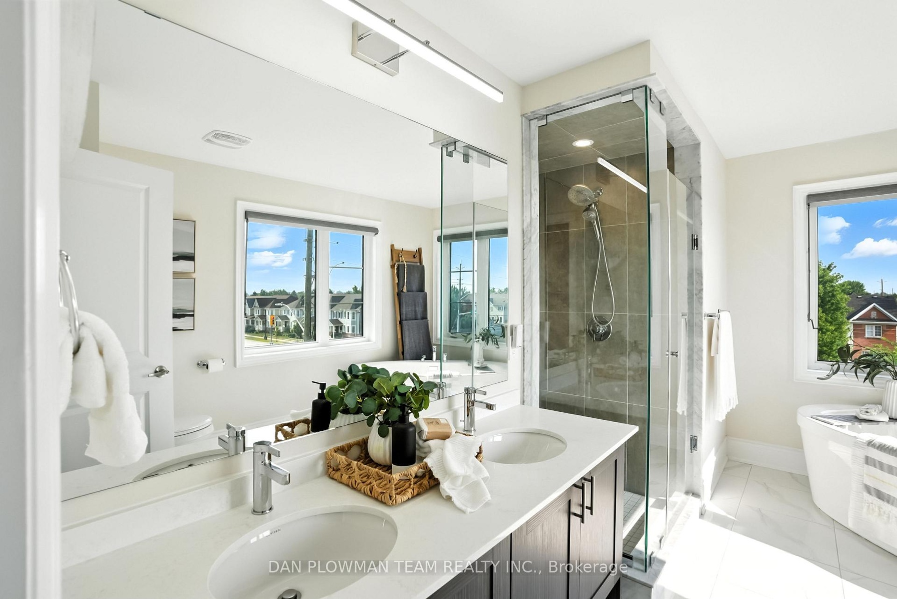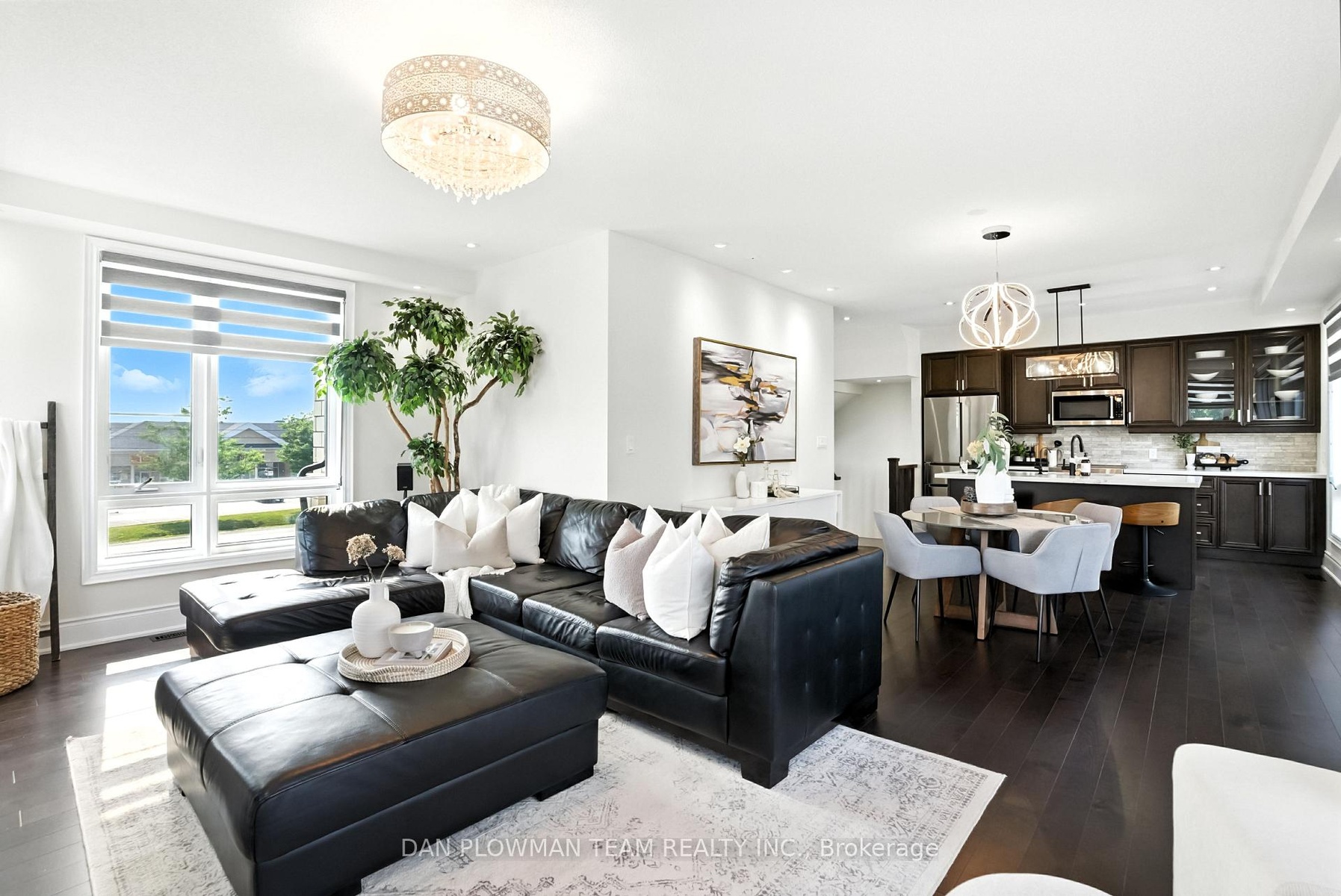 Offers Anytime! This Stunning And Spacious 3-Year-Old End Unit Townhome In The Heart Of Brooklin Combines Luxury, Comfort, And Convenience. With Over 2,600 Sq. Ft. Of Living Space, This Home Has Been Upgraded From Top To Bottom, Featuring 9 And 10 Ft Ceilings And Massive Windows That Fill Every Room With Natural Light. The Double Garage And Double Driveway Provide Parking For 4 Vehicles! The Main Level Welcomes You With Hardwood Floors, A Spacious Den Or Home Office, Powder Room, Large Foyer, Laundry, And Direct Garage Access. The Second Floor Offers A True Open-Concept Design With A Chef's Kitchen Featuring Quartz Counters, Marble Backsplash, Premium Stainless Steel Appliances, And A Gas Line On The Terrace. Entertain Effortlessly In The Large Living And Dining Areas, Each With Walkouts To Two Incredible Balconies. Upstairs, The Primary Suite Is A Private Retreat, Complete With A Walk-In Closet, A Personal Balcony, And A Spa-Inspired 5-Piece Ensuite With A Freestanding Tub. Two Additional Bedrooms With Double Closets And Another Upgraded 5-Piece Bathroom Complete The Level. Extras Include Premium Zebra Shades, Designer Light Fixtures, Central Vac, Unfinished Basement With Bathroom Rough-In, And High-End Finishes Throughout. Experience Low-Maintenance, Luxury Living Close To All Of Brooklin's Shops, Dining, Schools, And Parks.