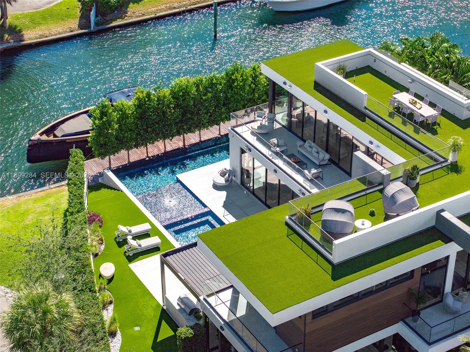 Welcome to Casa Moderne, a fully furnished turnkey architectural masterpiece in Bay Point, offering the community’s only rooftop terrace with 1,795 SF of panoramic 360° views of the Bay & Miami’s skyline. Nestled on a private cul-de-sac, this modern residence spans 7,036 SF with 6 bedrooms, 7.5 baths, an elevator, and A/C garage. Luxurious interiors with Minotti & Fendi furnishings, along with bespoke millwork in marble, leather, and wood. Floor-to-ceiling impact glass floods the home with natural light, while the chef’s kitchen, equipped with top-tier appliances, includes a 400-bottle wine cellar. Outdoors, enjoy a summer kitchen, infinity pool with jacuzzi, & private dock with new seawall and direct bay access. Experience waterfront luxury living in Miami’s most exclusive gated community. Indoor and outdoor furniture, décor, art, and accessories included in the sale.