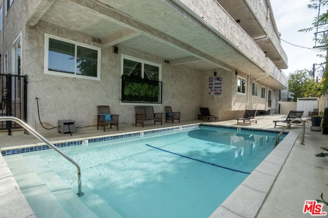 This 2BR/2BA condo is the best bargain in West Hollywood. Located on the second floor at the back of an intimate 21-unit building, this corner condo is bathed in natural light from west and south facing windows. Enjoy serene sunsets overlooking a rooftop view to the Hollywood Hills from this unit's big balconies that have sliding glass doors from the living room and the primary bedroom. This home is an amazing opportunity to channel your HGTV heroes! The galley kitchen, with its gas range/oven, could be a chef's delight with some loving renovations. The HOA allows installation of hardwood floors throughout to replace the carpeting. The two bathrooms are a blank canvas awaiting a creative owner to remodel with designer details. The primary bedroom has a walk-in closet and a spacious en-suite bathroom. Enjoy year-round climate-controlled comfort with central HVAC. In the building's securely gated garage, two side-by-side parking spaces and large storage closets are included in this sale. This pet-friendly building features succulent landscaping, a high-tech intercom system, community laundry rooms on each floor and a private pool area, all for a reasonable HOA fee that includes cable TV and internet. This coveted West Hollywood location is close to numerous restaurants, fitness studios, shopping and nightlife on Santa Monica Blvd. Don't delay; this home is the one you've been waiting for.