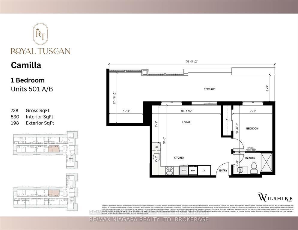 **FIRST TIME BUYER GST/HST REBATE INCENTIVE ON NOW! - SAVE UP TO $100,000** This is the 1 bed and 1 full bath Camilla Suite at The Royal Tuscan Luxury Residences. A master-planned collection of boutique luxury condos and penthouses that blends both the old and new with a rustic-inspired facade, modern interior design, and innovative smart features. Featuring a large open concept living and kitchen space. 9 ft ceilings, 7 ft interior doors, upgraded flooring throughout with quartz countertops. Primary bedroom with large walk-in closet, ensuite and in-suite laundry. Complete kitchen and laundry appliance package included! Choose from the tailored colour packages, quartz countertops, and custom cabinetry. Each feature and finish are carefully curated to harmoniously blend comfort, style, and luxury into your everyday. European elegance and innovative craftsmanship deliver you the pinnacle of luxury living in the heart of St. Catharines. Every single refined element of the Royal Tuscan is guaranteed to provide you with an unmatched feeling of home. From the spacious party room to serene community gardens, every detail enhances your experience. Enjoy leisurely moments at the gazebo or on our mini-golf course. Convenience is key with underground parking and a dog-washing station. Visitors are catered to with above ground parking, while electric car-charging stations and bicycle racks promote sustainability. Experience luxury living with every convenience at your fingertips. Find tranquility and relaxation by surrounding yourself with the lush flora and fauna at the community garden. The Royal Tuscan intersects both modern luxury and classic European elegance in every suite. With up to 450 sq ft of outdoor space, you'll have more than enough space to create your very own private oasis! Many other suite layouts available! Estimated occupancy date: Early 2026.