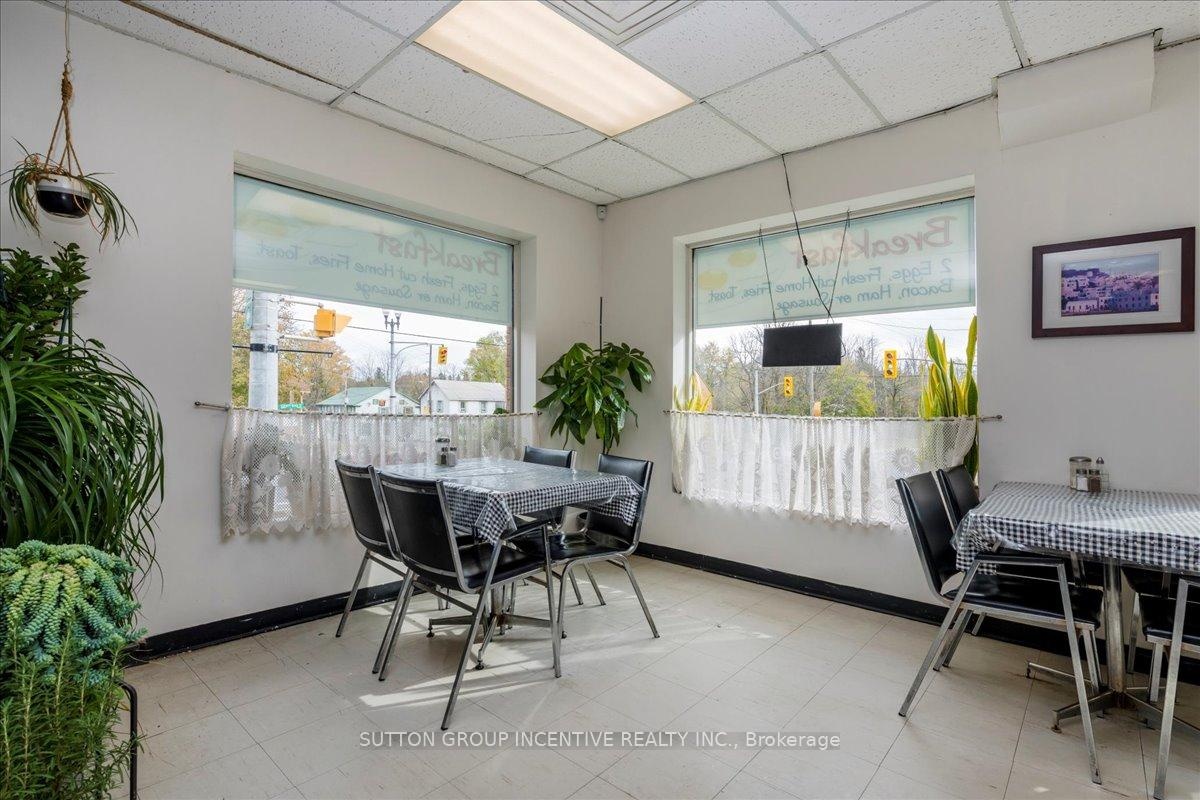 Fully Equipped Restaurant for Lease - Prime Bradford / Bond Head Corner -- Turnkey restaurant opportunity on the northwest corner of County Road 88 and Highway 27 - a highly visible, high-traffic commuter route with excellent exposure and accessibility. This approximately 1,600 SF space is fully equipped and ready for operation, featuring seating for 24, with large freezers, grill, deep fryer, pizza oven, prep station, tables, chairs, drink fridge, and more. All equipment is included in the lease (business not for sale). The building offers ample on-site parking and prominent signage at the front. Recently updated HVAC system (approx. 5 years old) ensures comfort and efficiency. Zoning permits a wide variety of commercial uses, making this an ideal opportunity for food service, café, or retail conversion. Net lease - tenant responsible for all utilities, interior & exterior maintenance, and operating costs. First-year lease rate offered "as is," with standard annual increases over a five-year term.