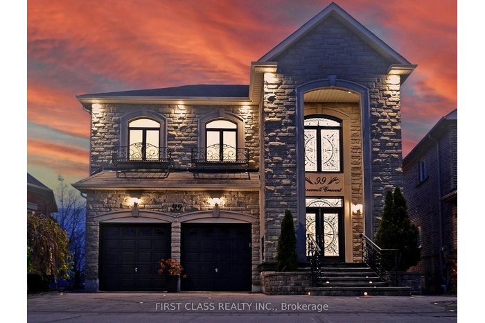 Rarely Available Premium Pie-Shaped Ravine Lot in Prestigious Upper Thornhill Estates!Experience executive luxury living in this stunning residence offering approx. 3,730 sq.ft. plus 1,336 sq.ft. of finished walk-out basement with a customized floor plan. Grand open-to-above foyer, 10' ceilings on main, smooth ceilings throughout, pot lights, oversized windows, 8' upgraded doors, crown moldings, custom frames, arches & columns. Elegant stone exterior with precast arches and fascia, oak staircase with custom metal railings, and engineered hardwood floors on main & second levels. Freshly painted interior. Sun-filled south-facing family and breakfast rooms with fireplace. Custom gourmet kitchen featuring granite countertops, backsplash, built-in stainless steel appliances, and walk-out to deck overlooking the ravine. Four ensuite bedrooms with custom closet organizers, including a spa-inspired primary retreat with his & hers walk-in closets. Finished walk-out basement offers a large recreation area, wet bar, sauna, steam shower, and direct access to the professionally landscaped backyard oasis with exterior lighting, automatic sprinkler system, and upgraded garage doors. Prime location - walk to parks, trails, shops, and top-ranked schools!