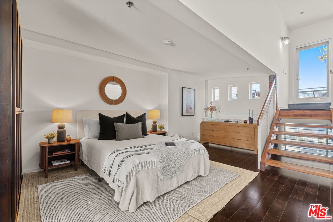 Perched on the top floor of the Venice Art Lofts, this modern, artistic, and undeniably cool Venice condo is a sun-drenched sanctuary just moments from Abbot Kinney, Main Street, and the beach. With over 1,350 square feet of loft-style living space, this 1-bedroom, 1.5-bathroom unit blends architectural edge with coastal ease. //Soaring ceilings and expansive windows fill the open living area with natural light and frame iconic palm tree views - an everyday reminder that you're living in the heart of SoCal paradise. From the tall entryway surrounded by extra windows to the seamless flow through the kitchen, main level bath, in-unit laundry, and living room, the entire space feels light, open, and effortlessly connected. The staircase adds an airy, architectural touch leading to the loft-style primary bedroom with full bathroom and large balcony. Another half stair leads to a landing ideal for office space and a large private rooftop deck that offers front-row seats to vibrant sunsets, ocean breezes, and starry nights. It's the ultimate outdoor escape, perfect for soaking in the Venice lifestyle. //Built in 2004, this building includes modern conveniences like central air & heat, gated 2-car parking, and secure access. Whether you're hosting friends, creating from your home studio, or winding down after a surf session, this space meets the moment with style and soul. Enjoy unbeatable walkability to Venice's best restaurants, coffee shops, and boutiques, all while being just blocks from the sand. This is loft living with a beachside twist, ready for you to call it home!
