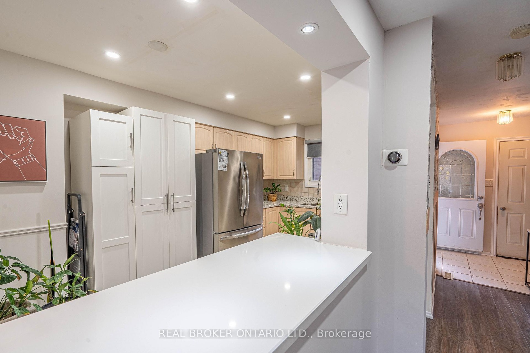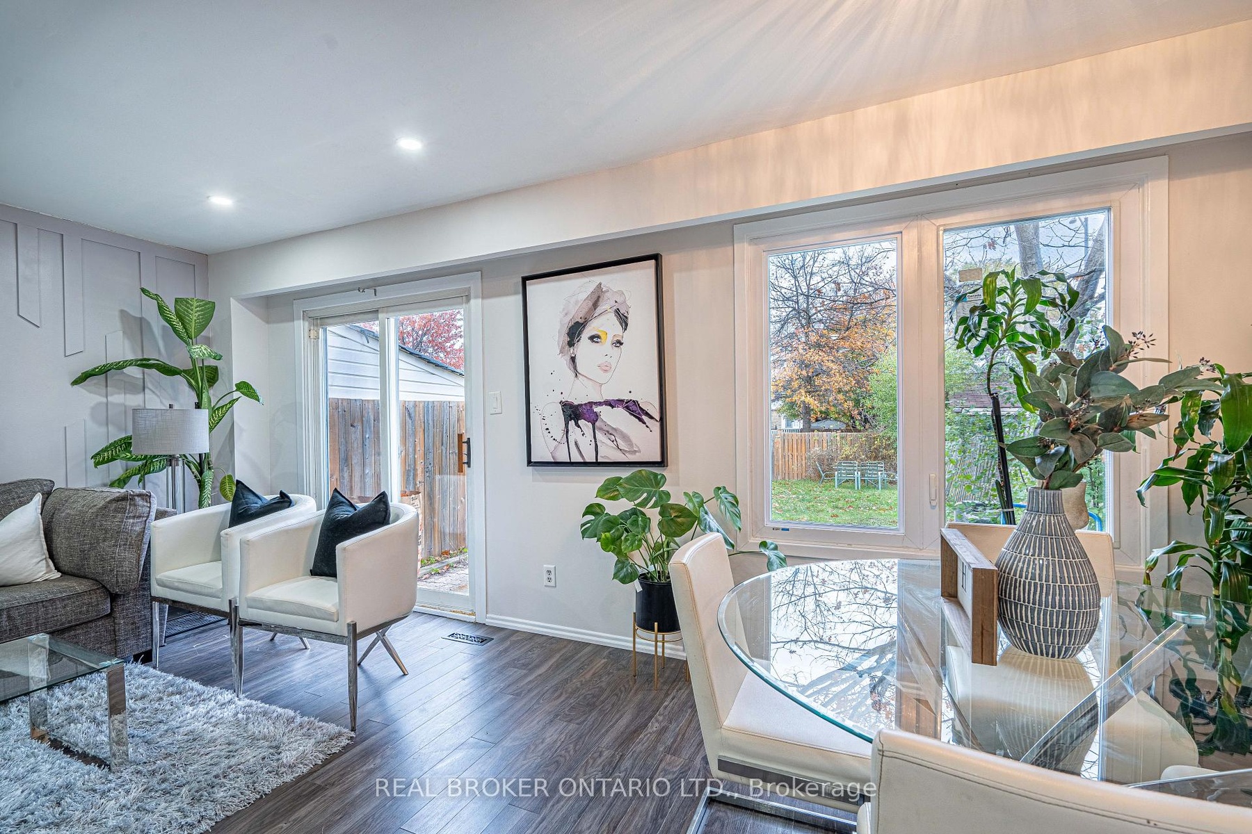 A fabulous mint condition 3 bedroom home with finished basement! Affordable and spotless, a great family home just move in. This beautifully maintained freehold townhouse offers nearly 1,800 sq ft of living space across three functional levels, including the basement. The open-concept living and dining area is enhanced with pot lights, laminate flooring, and a stylish accent wall, creating a warm, modern feel. The updated kitchen (2023) boasts quartz countertops, and a new Fridge (2024) - perfect for cooking enthusiasts. Enjoy a deep private backyard with mature trees and no rear neighbors-perfect for relaxing or entertaining. Additional updates include new Windows (2022), Roof (2019), Fencing (2020), and an enclosed Porch (2022). Convenient direct garage access and 3 parking spaces (1 garage + 2 driveway). Located in a mature, family-friendly neighborhood, you're steps from parks, trails along Etobicoke Creek, public transit, hospitals, and with grocery stores and restaurants just a walk away. This hidden gem proves you can upsize affordably - right here in Brampton North