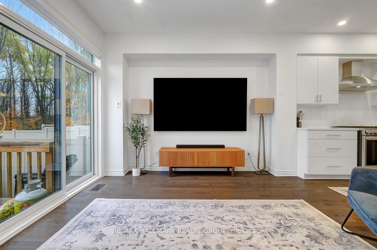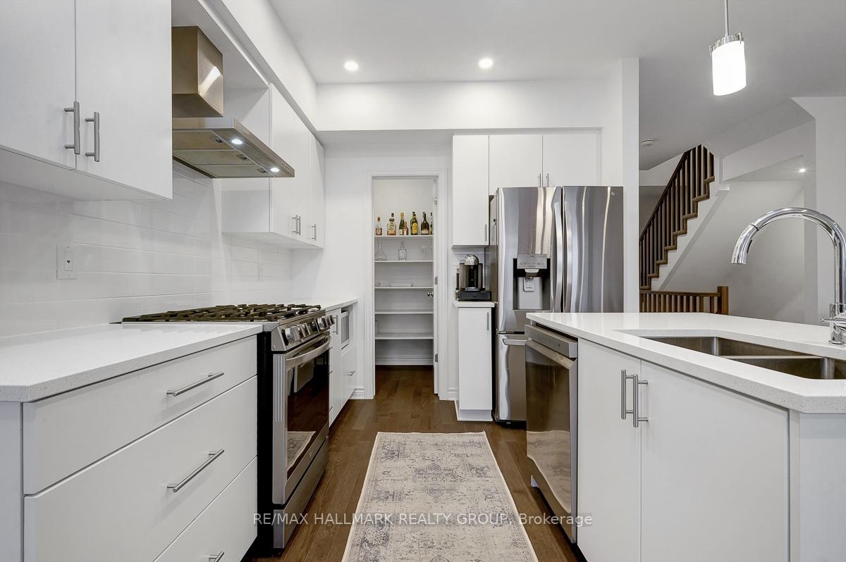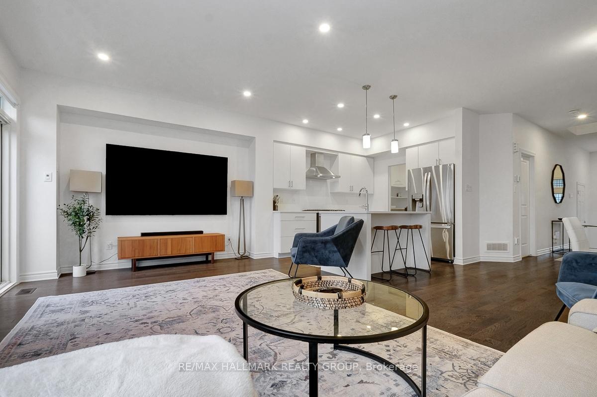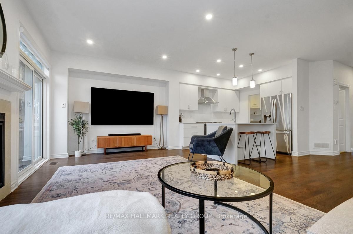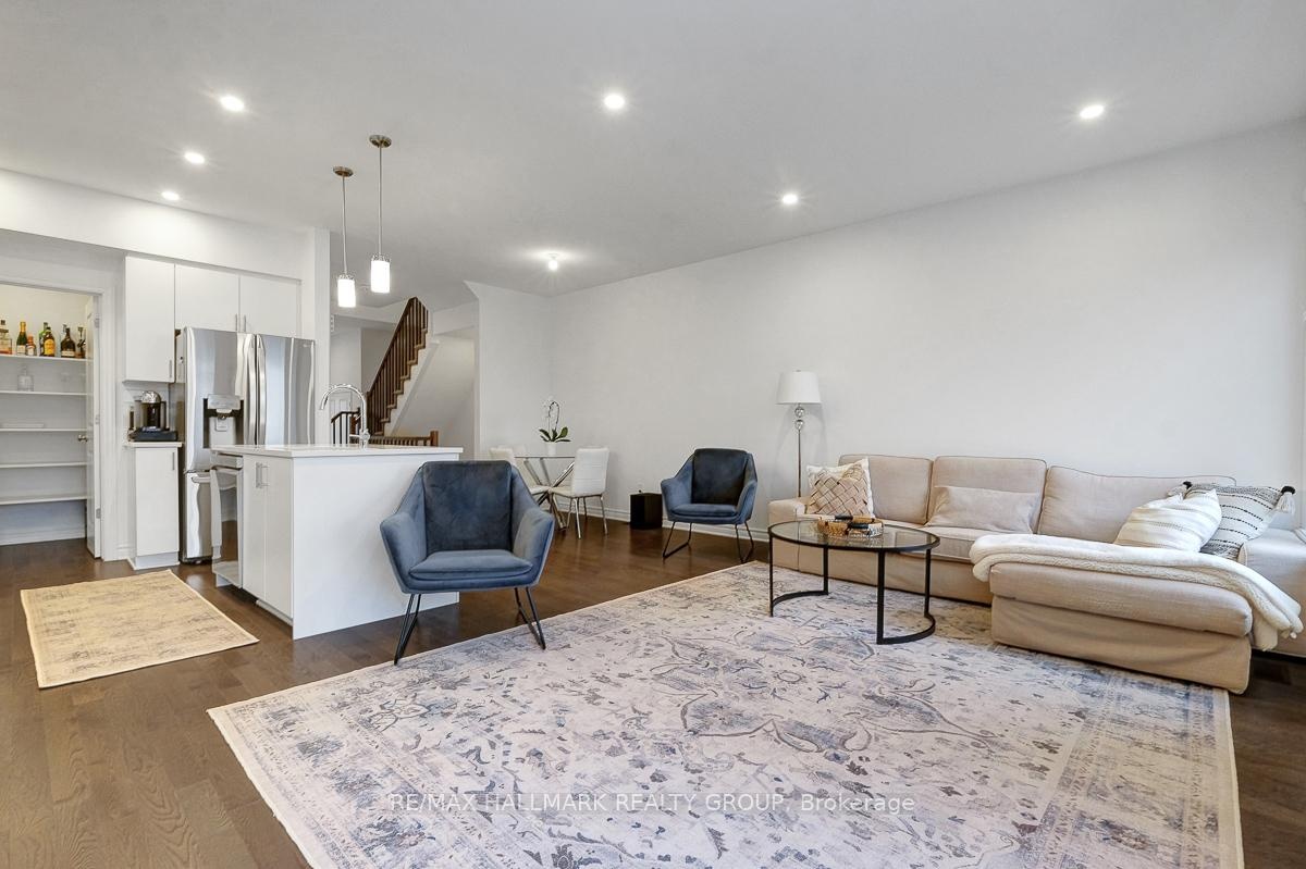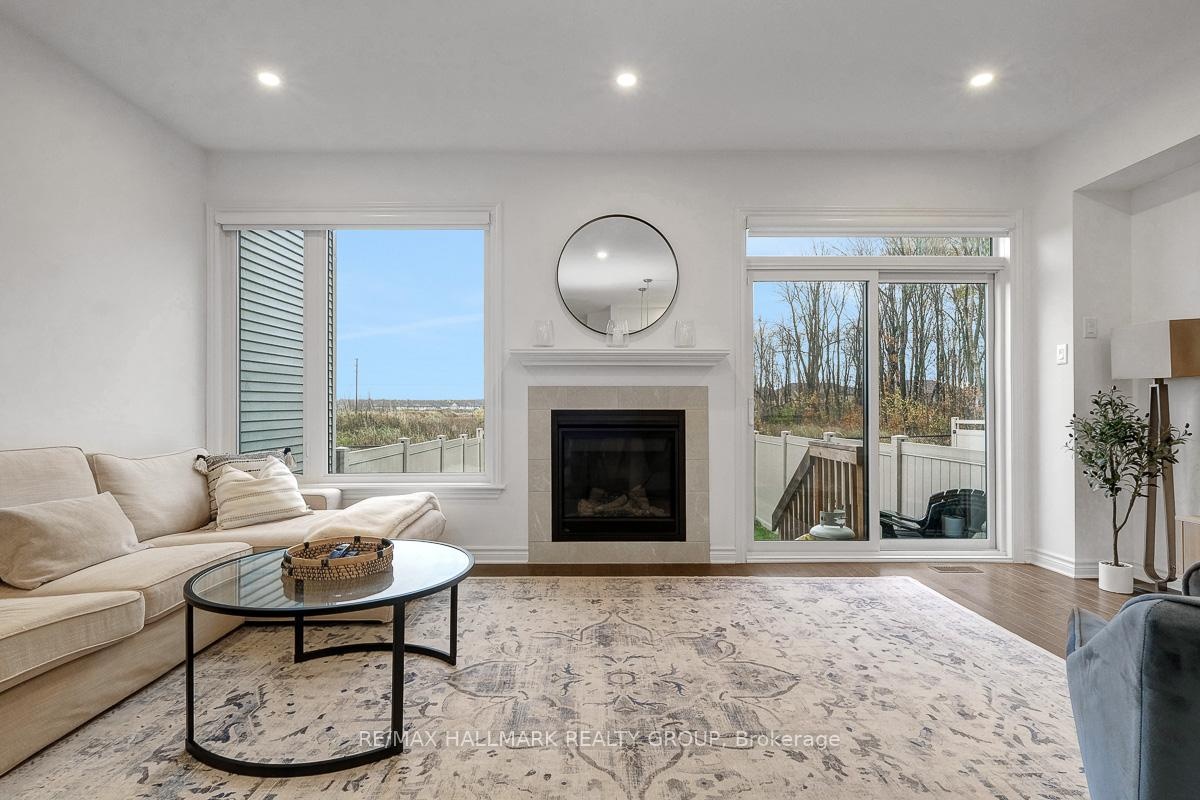 Opportunity to rent a fully furnished, turnkey, 3bedroom/3bath executive townhouse in Riverside South. 91 Canvasback Ridge features gleaming hardwood floors throughout main level. Open concept living space including kitchen, dining room and living room. Kitchen includes stainless steel appliances including nat-gas stove, quartz counters, plenty of cabinet space including walk-in pantry, breakfast bar w/ pendant lighting. Pot lights throughout kitchen, living room. Cozy gas fireplace. Neutral tones throughout. Easy access to backyard with no rear neighbours. Second level has primary bedroom with large walk-in-closet and 3pc ensuite. Two other good-sized bedrooms, laundry area, and main bathroom complete the upper level. Fully finished basement rec room. Plenty of storage. Do not miss this opportunity. Close to parks. A short jaunt to Manotick shops and cafés. 4mins drive to Limebank North LRT Station. Ideal for Diplomatic Mission looking for a multi-year lease. Call today!,