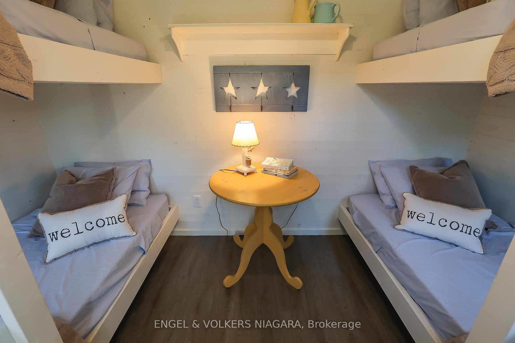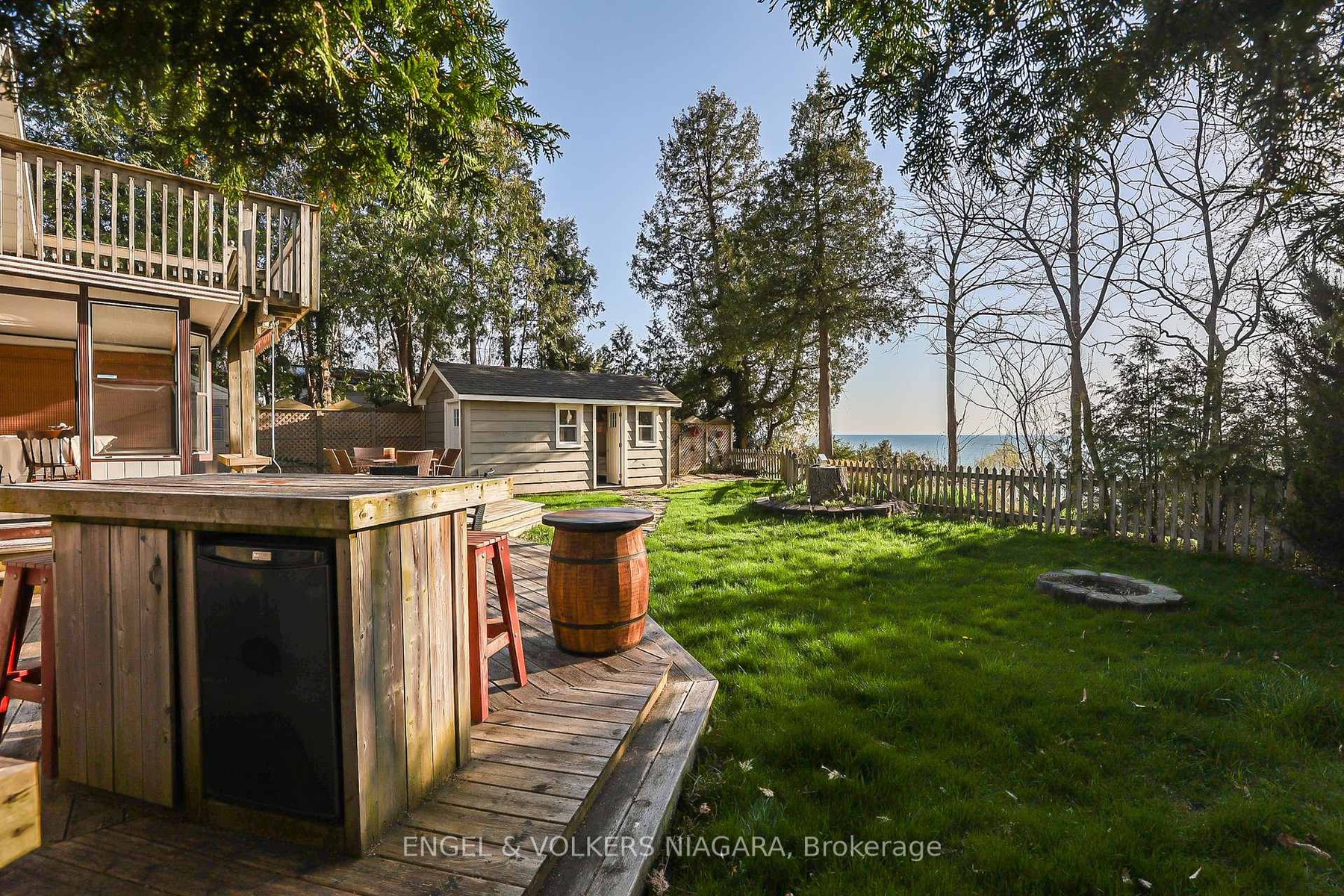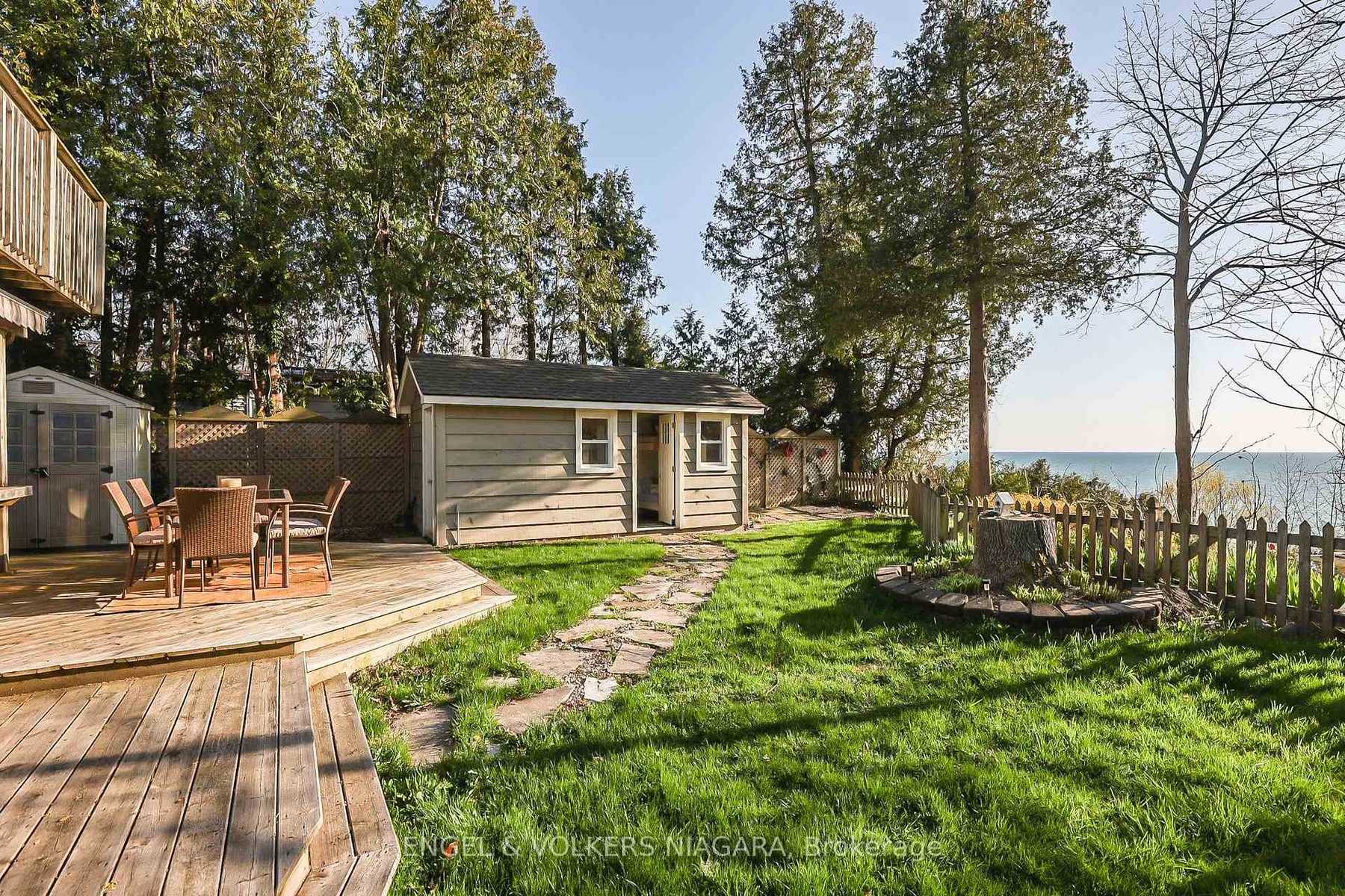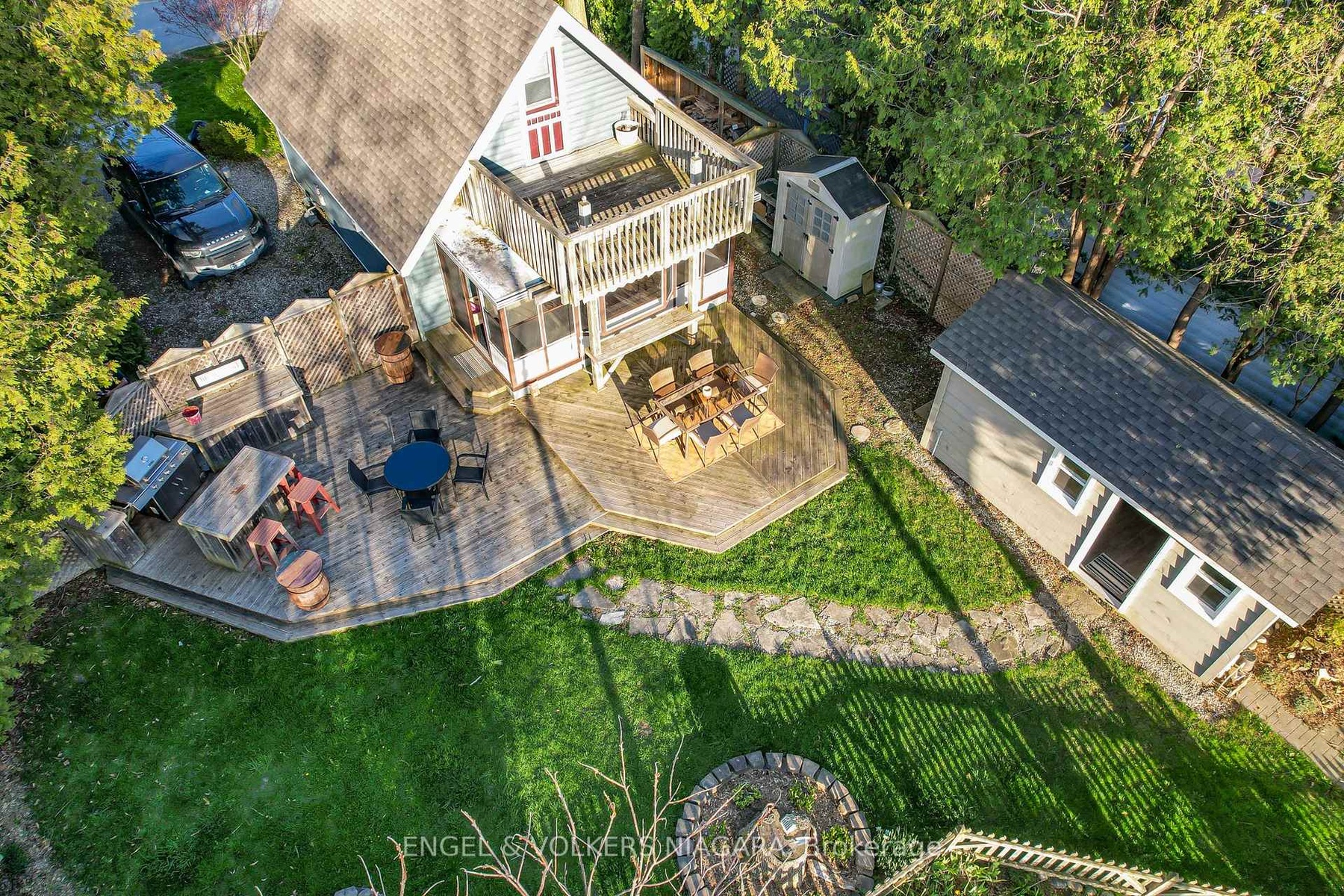 LAKEVIEW 4 season cottage with a 3 season sunroom, adorable board-and-batten bunkie, fenced yard and loads of privacy! Take in the magnificent Lake Huron views and sunsets from any of the 4 ground level seating areas or the upper level deck. Lovely community on the outskirts of Goderich and only minutes to Bayfield. Fantastic outdoor cooking area with island and bar fridge. Cosy around the gas fireplace which heats cottage sufficiently in winter. Enjoy the sunroom on a rainy evening or a cool morning. Take your morning coffee or your evening wine out of the bedroom to the upper level deck. Super cute bunkie with 2 built-in bunk beds and separate storage area. 4 piece bathroom with newer window, toilet, and flooring. Several updates make this cottage move-in ready. Roof 2017, Bunkie with separate hydro line 2017, front screen door, toilet, bathroom window and flooring, pine shiplap accent livingroom walls, curbstop and yard hydrant 2019, new front deck 2020. New flooring 2023. Meander through the hosta garden beside the driveway. 2 sheds for ample storage. Access to lake is via community path. 2 bedrooms upstairs, pullout couch in living room and 4 single beds in bunkie, so the cottage can accommodate 10 for sleeping. Affordable utility costs. Water included in association fee. Parking for 3 vehicles in driveway. A true gem!