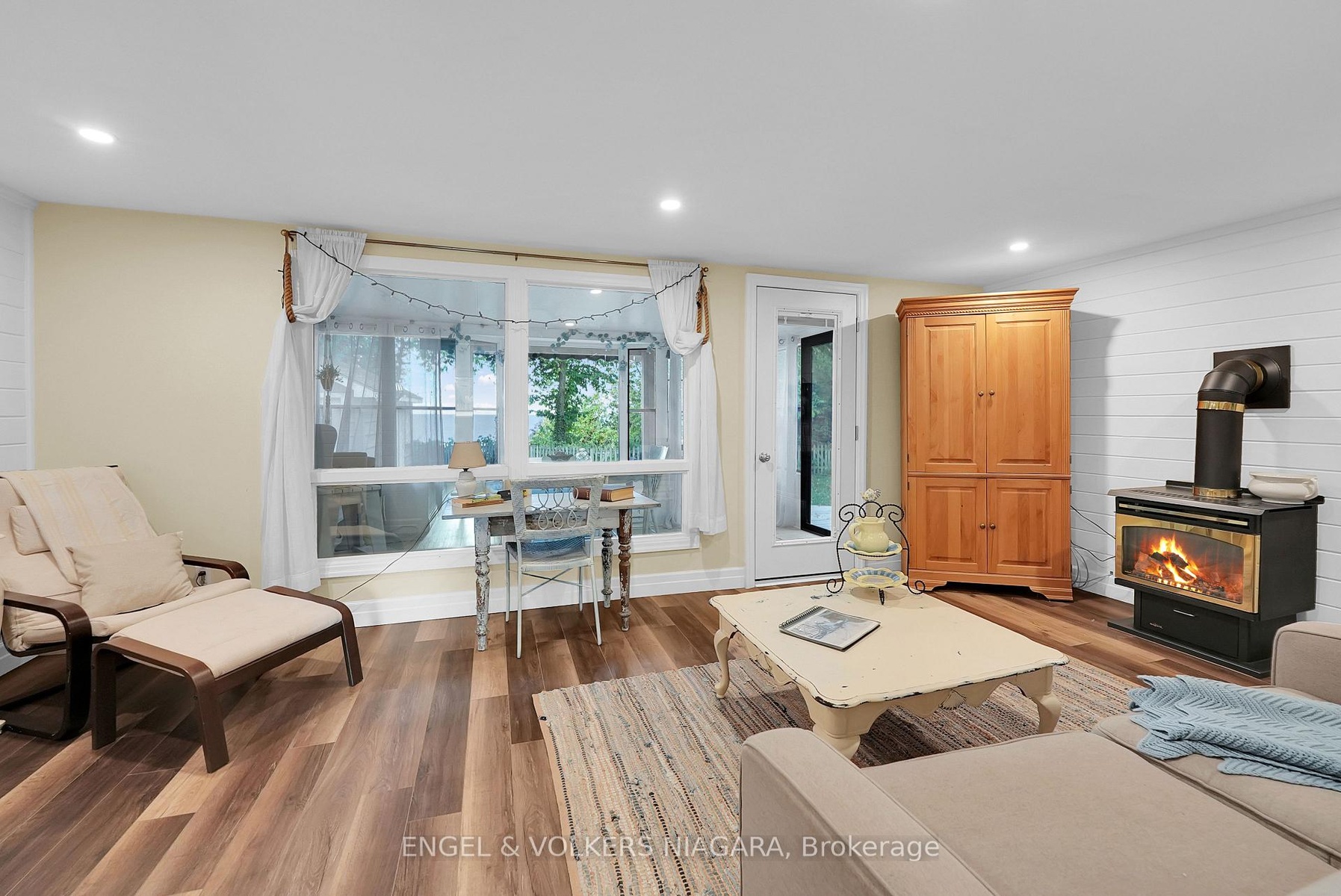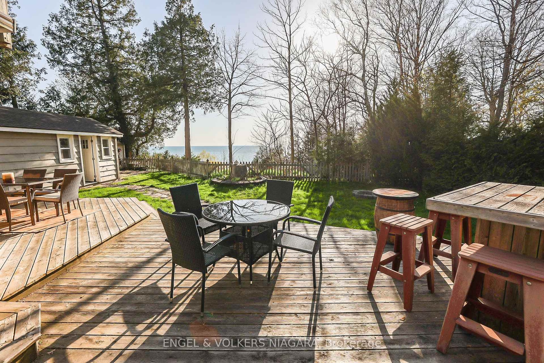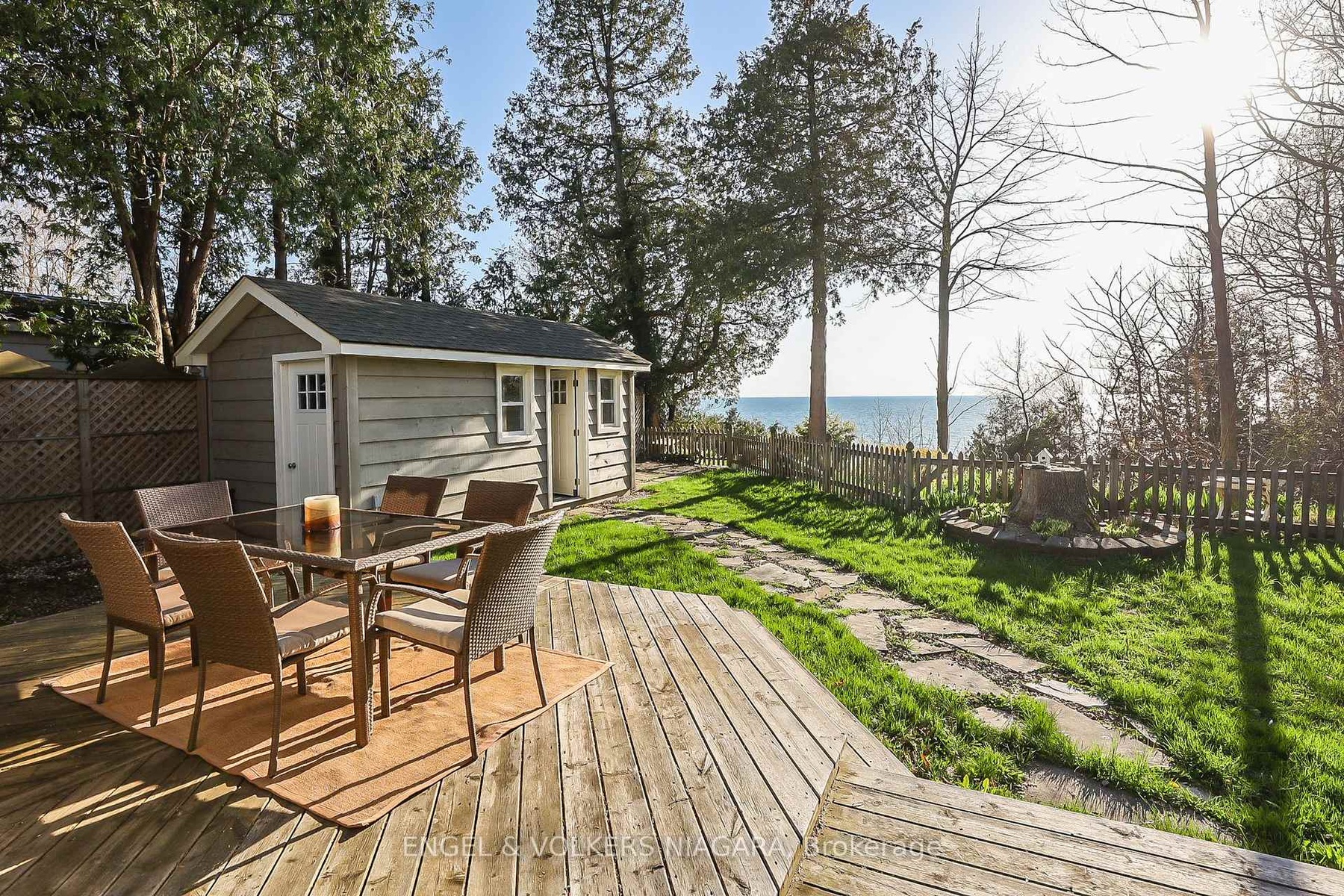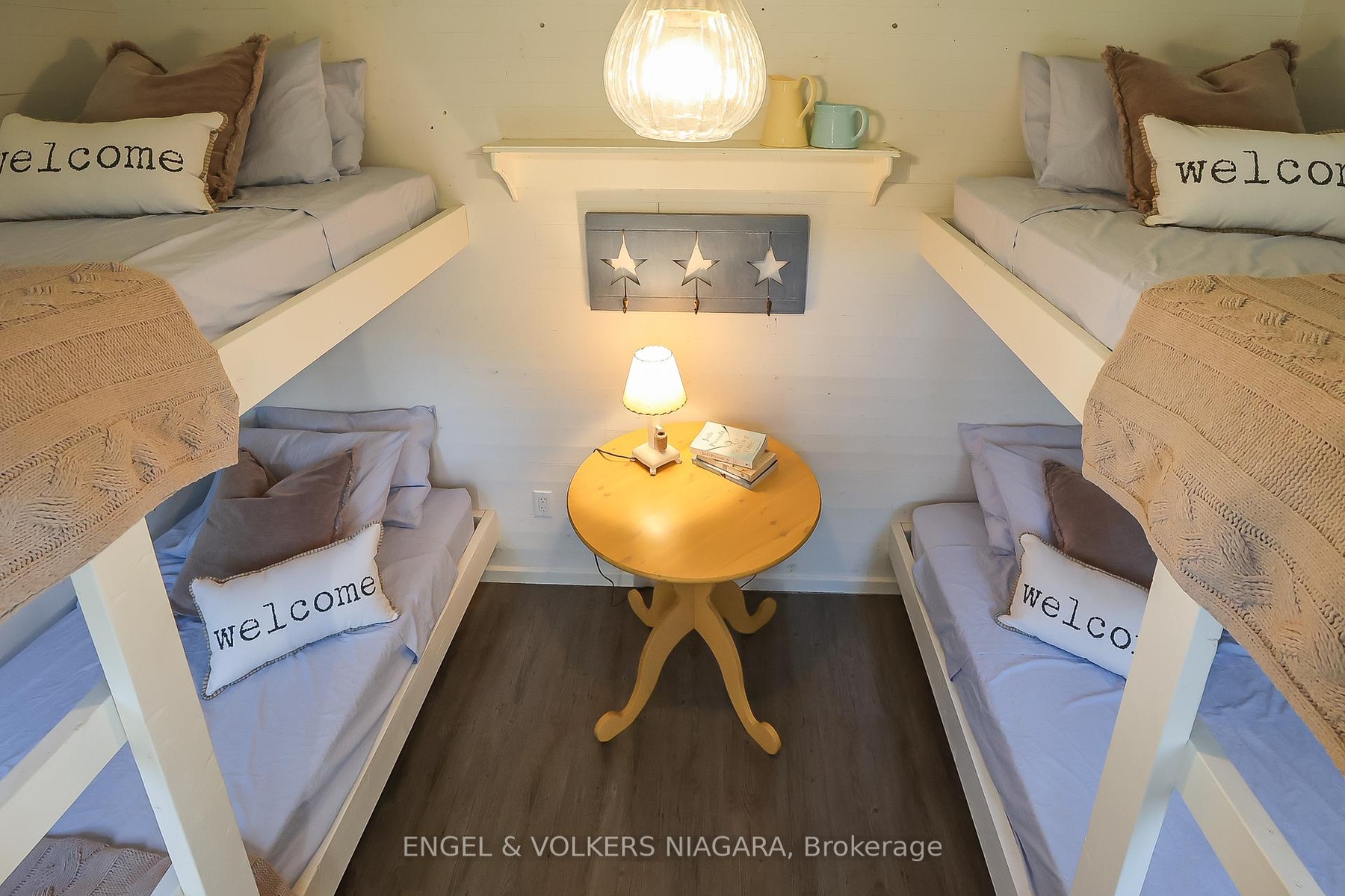 LAKEVIEW 4 season cottage with a 3 season sunroom, adorable board-and-batten bunkie, fenced yard and loads of privacy! Take in the magnificent Lake Huron views and sunsets from any of the 4 ground level seating areas or the upper level deck. Lovely community on the outskirts of Goderich and only minutes to Bayfield. Fantastic outdoor cooking area with island and bar fridge. Cosy around the gas fireplace which heats cottage sufficiently in winter. Enjoy the sunroom on a rainy evening or a cool morning. Take your morning coffee or your evening wine out of the bedroom to the upper level deck. Super cute bunkie with 2 built-in bunk beds and separate storage area. 4 piece bathroom with newer window, toilet, and flooring. Several updates make this cottage move-in ready. Roof 2017, Bunkie with separate hydro line 2017, front screen door, toilet, bathroom window and flooring, pine shiplap accent livingroom walls, curbstop and yard hydrant 2019, new front deck 2020. New flooring 2023. Meander through the hosta garden beside the driveway. 2 sheds for ample storage. Access to lake is via community path. 2 bedrooms upstairs, pullout couch in living room and 4 single beds in bunkie, so the cottage can accommodate 10 for sleeping. Affordable utility costs. Water included in association fee. Parking for 3 vehicles in driveway. A true gem!