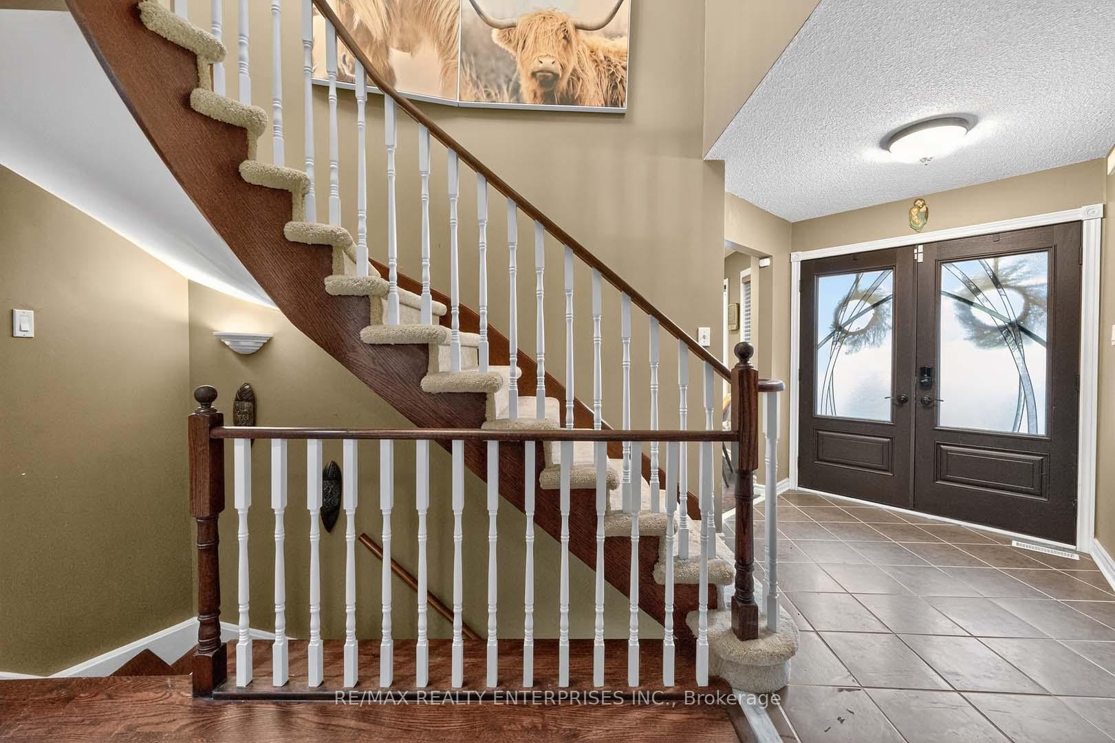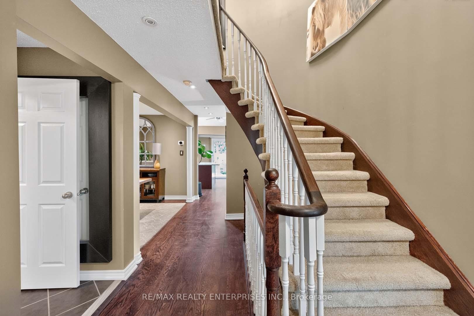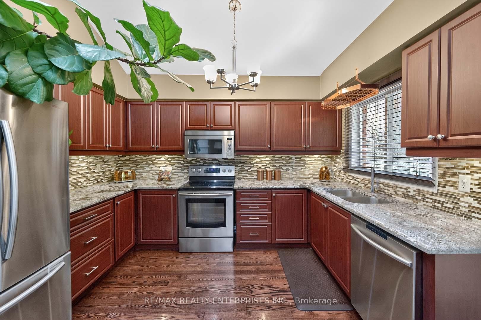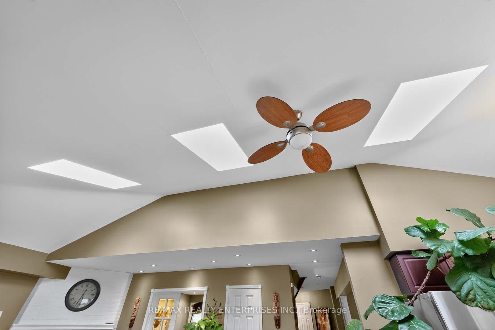 This unique 3+1 bedroom, 3-bath detached home offers nearly 1,900 sq.ft. above grade and a thoughtful blend of comfort, character, and functionality. A truly special home tucked within sought-after Fletcher's West. The heart of the home is the beautifully updated kitchen featuring granite countertops, a breakfast bar, stainless steel appliances, and generous storage - perfect for both everyday meals and effortless entertaining. The main floor showcases hardwood flooring, pot lights, and an inviting family room with a gas fireplace and dramatic vaulted ceilings with skylights that fill the space with natural light. Convenience continues with main floor laundry and direct garage access. Upstairs, the spacious primary suite offers a walk-in closet and a renovated ensuite, complemented by two additional bedrooms and a stylishly updated main bath.The finished basement expands your living space with a large recreation area, dry bar, and a 4th bedroom or flexible office/gym setup. Outside, the backyard feels like a private retreat - backing onto greenspace with a large deck and gazebo (2023) for relaxing or entertaining. Major updates include roof (2022), chimney siding (2019), exterior pot lights (2019), and a new double driveway (2024), enhancing both curb appeal and peace of mind. A rare find combining modern upgrades, timeless charm, and a tranquil natural backdrop - all in a family-friendly neighbourhood close to parks, schools, and every convenience.