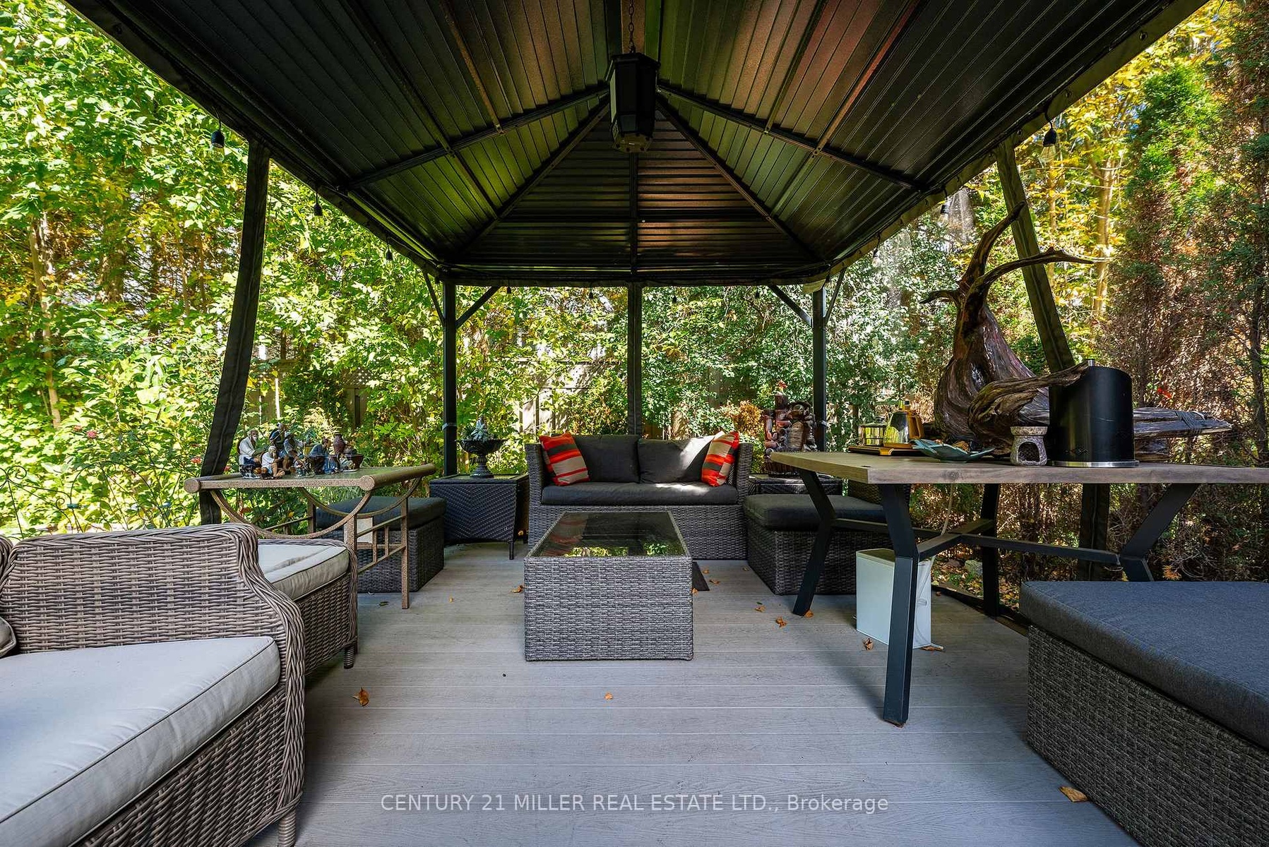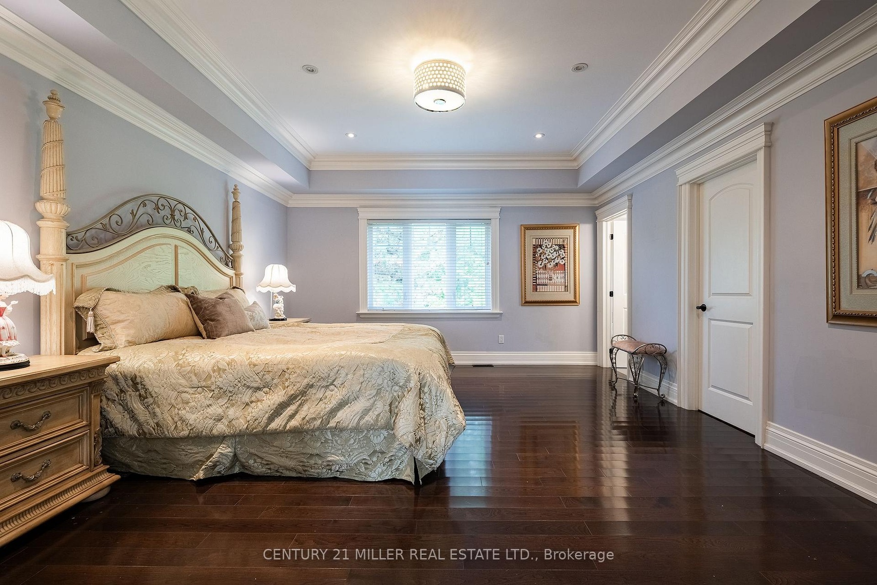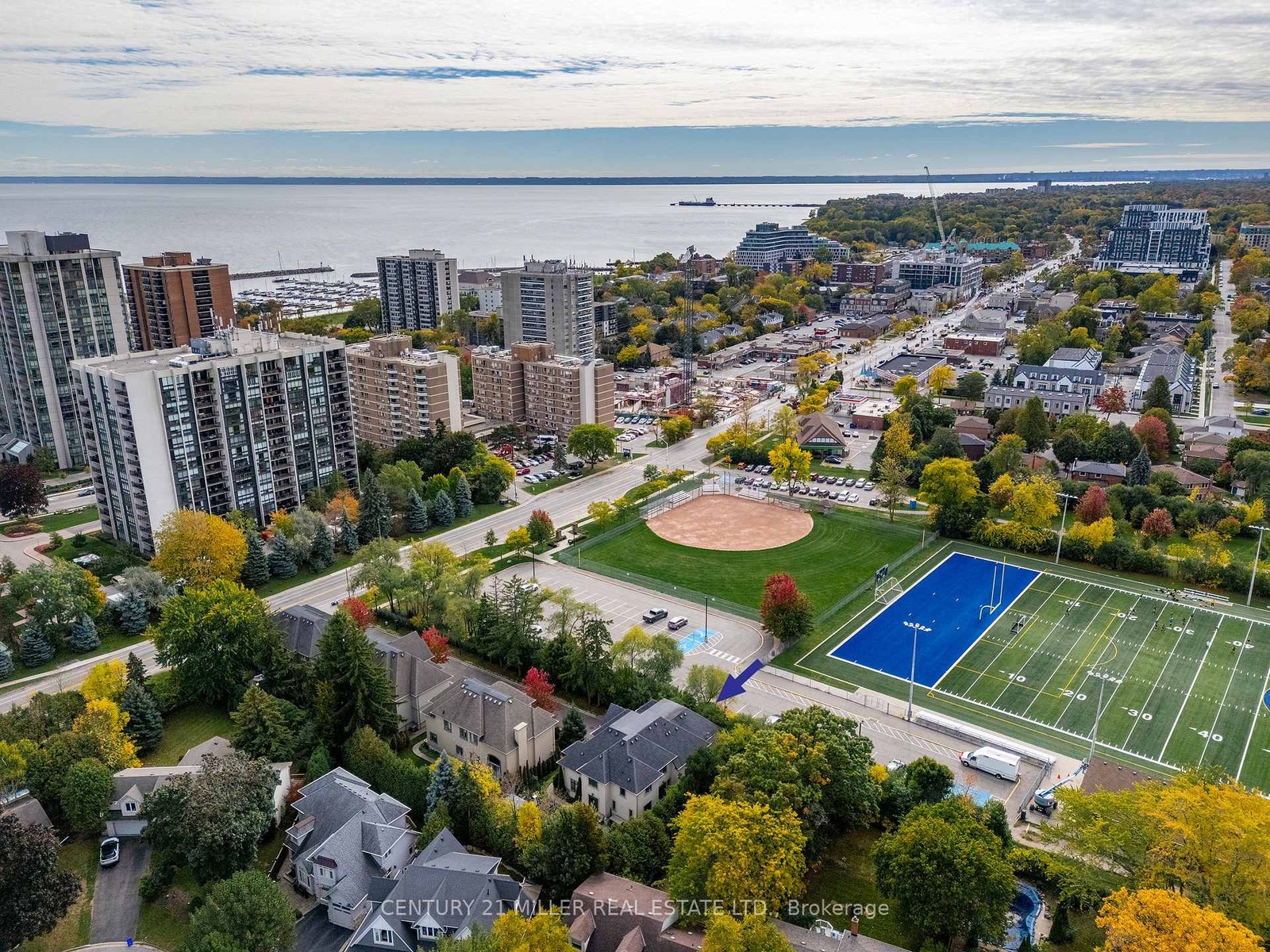 Distinguished custom-built two-storey residence offers over 5,600 square feet of refined living space, including approximately 3,700 square feet above grade and nearly 2,000 square feet in a luxuriously finished lower level nestled within a prestigious Bronte East enclave. Step through the double entry doors into an impressive two-storey foyer crowned by soaring 20-foot ceilings and an open gallery overlook. Expansive transom windows bathe the space in natural light, highlighting the floating hardwood staircase with wrought-iron railings. Main level unfolds with an open-concept layout featuring hardwood floors, vaulted and recessed ceilings, French doors, custom millwork, and oversized picture windows that fill each room with light. Family room serves as a true architectural centerpiece with its 14-foot vaulted ceiling and floor-to-ceiling fireplace, while six additional rooms offer the flexibility to tailor each space to your lifestyle. Chef's kitchen blends form and function with custom cabinetry, premium built-in appliances, and an expansive centre island ideal for both cooking and entertaining. The upper level hosts four spacious bedrooms, including a primary suite overlooking the rear and side gardens. This retreat features a spa-inspired five-piece ensuite complete with a floor-to-ceiling glass shower and whirlpool-style jetted tub. Two of the secondary bedrooms boast graceful, vaulted ceilings, adding a sense of airiness and architectural character. Mature trees and lush greenery envelop the property, creating serene views from every window. Professionally finished lower level extends the home's luxurious living space, offering a recreation room, theatre room or fifth bedroom, home office, above-grade windows, and a three-piece bath. Outside, the manicured backyard oasis features a gazebo and flower garden, providing a tranquil setting for relaxation or entertaining. A true beauty that you can not miss. Main level laundry room, plus upper level laundry room.