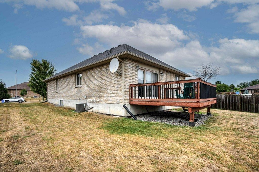 This inviting 2 + 1 bedroom bungalow in Trenton enjoys a desirable southeastern exposure, filling the home with natural light. The open-concept kitchen, dining, and sunken family room create a welcoming central hub, highlighted by floor-to-ceiling windows that frame the outdoors beautifully and provide direct access to the large backyard. The granite kitchen offers sophistication, and a pantry allows for additional storage. A separate living room provides a relaxed retreat with a built-in electric fireplace and stone surround. Hardwood floors run throughout the main living areas, adding warmth and elegance. The carpeted bedrooms are designed for comfort, with the primary suite featuring double closets and a private three-piece ensuite bathroom. An additional bedroom is serviced by a well-appointed shared four-piece family bathroom, making the layout ideal for families or guests. The thoughtful design balances open gathering spaces with private retreats, ensuring functionality for modern living. Downstairs, the basement offers a 3rd bedroom or versatile flex room that can serve as a rec room or home office, complemented by an additional three-piece bathroom. The rest of the basement space is unfinished, providing endless possibilities for customization. With its bright orientation, spacious layout, and quality finishes, this bungalow is a wonderful place to call home. Home inspection available.