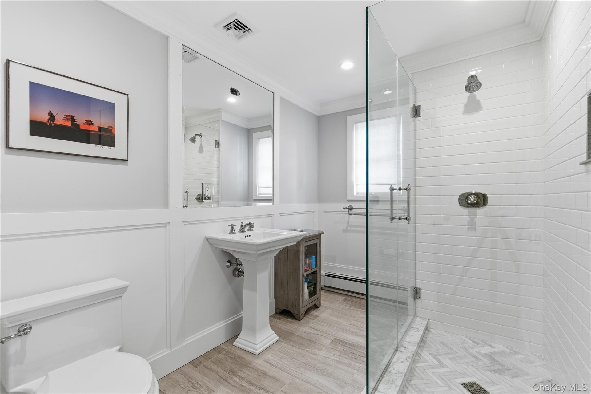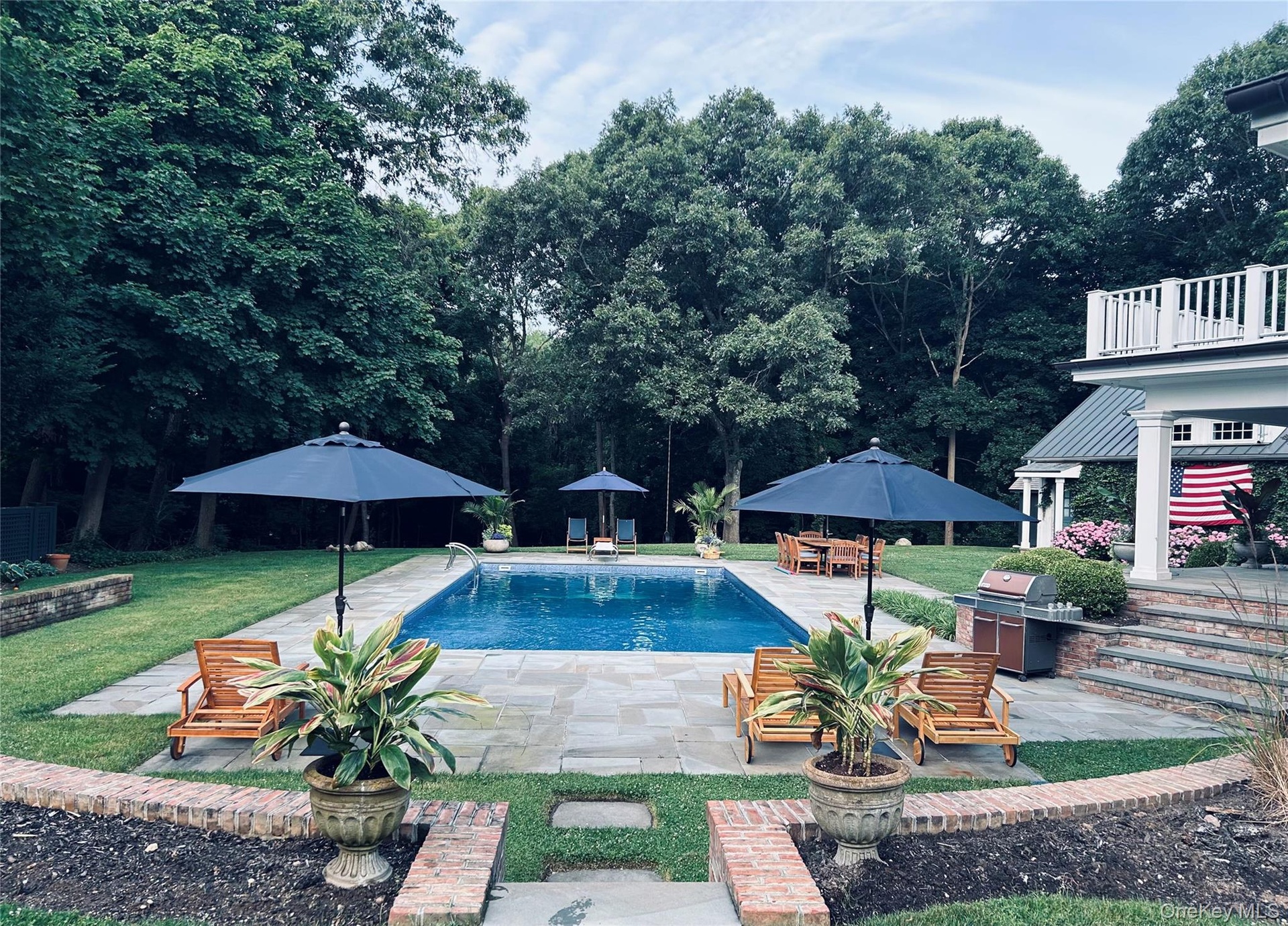 This exquisite Hampton-style 4 bedroom classic home offers timeless elegance and modern comfort, perfectly situated on over one acre of beautifully landscaped property in one of Huntington’s most desirable neighborhoods. Inside, sophistication meets comfort with radiant heat throughout, detailed moldings, and light-filled living spaces designed for both entertaining and everyday living. The gourmet kitchen features marble counters, Thermador appliances, refrigerator drawers, a farm sink, wine refrigerator, and warming drawer, all complemented by fine cabinetry and elegant finishes. The 3 wood burning fireplaces enhance each room with a special warmth for this residence which offers elegance and modern luxury. Additional amenities include a full-house generator, a mudroom with main-floor laundry, an ice maker and bar, and a surround sound system. The saltwater pool is a private retreat with newer equipment, gas heater, and liner—perfect for summer enjoyment surrounded by bluestone and brick patios. A circular stone driveway lined with specimen plantings welcomes you to this stunning property, featuring a cedar roof, copper gutters, Marvin windows, and Maibec shingles — a true showcase of craftsmanship and curb appeal. A detached oversized garage provides abundant space for vehicles, storage, or a potential studio/workshop. Combining Hamptons-inspired design, modern luxury, and a premier Huntington location, this exceptional home offers a lifestyle of elegance, privacy, and comfort.