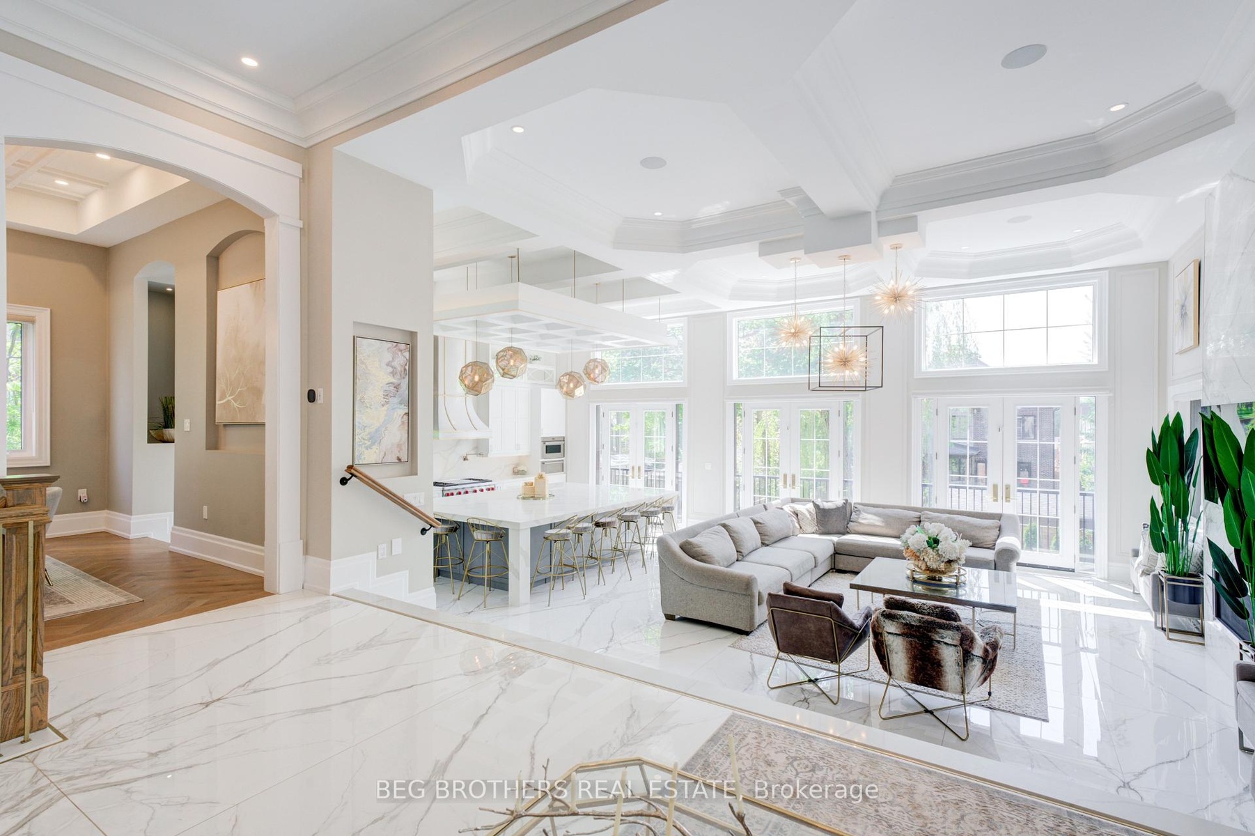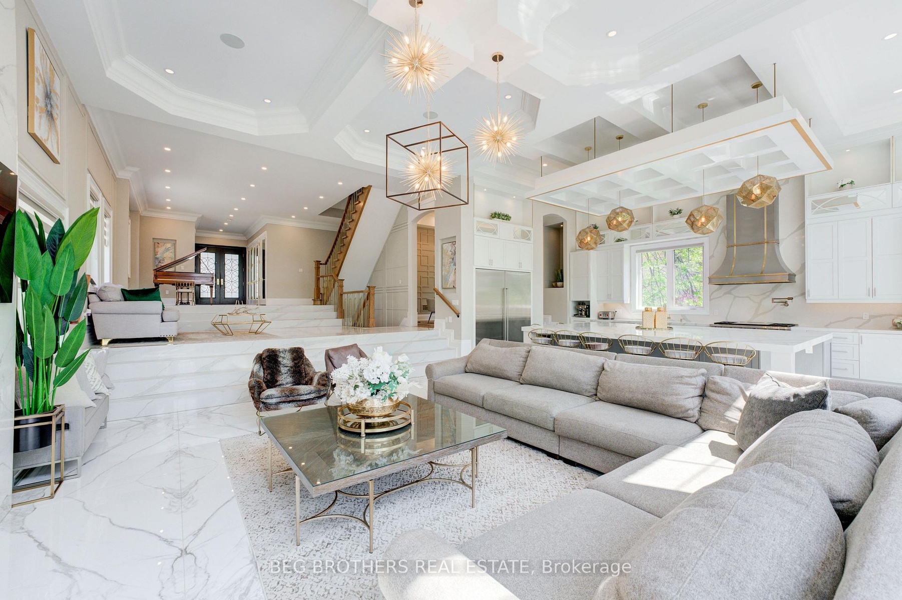 Welcome To 415 Sheppard Ave Located In Prestigious Woodlands. This Custom 5+2 Bedroom, 6 Bathroom Home Boasts Over 7,500 Sqft Of Above Ground Living Space. Step Into The Californian Open Concept Grand Main Floor, Backsplit To Soaring 15 Ft Ceilings In Family Room and Designer Kitchen, With 3 Elevated South Facing Garden Doors With Transoms For A Sun Filled Home. Chefs Kitchen With Top of The Line Sub Zero Fridge and Wolf Range, Custom Vent Hood, 12 X 8 Island Accented By Suspended Waffle and Floor To Ceiling Cabinets. The Main Floor Also Includes A Formal Dining Room, Office, And 2 Elevated Living Rooms Finished With Large Bookmatch Tile and Herringbone Hardwood Throughout. Spacious Master Bedroom With Juliette Balcony Has A Spa Oasis W/ 5 X 7 Shower and Soaker Tub, Accessible to W/I Closet With Centre Island. Additional Spacious Bedrooms Surround A Central Study Nook With Large Skylight Open To 3rd Floor Loft Retreat With A Large 22 X 22 Room Plus Covered Balcony Overlooking The Rouge Forest. An Entertainers Dream! Basement Features An Open Rec Area With Walkout To Backyard, Theatre Room, Nanny Suite, Guest Br/Gym All Equipped With 2 Bathrooms. Backyard Bliss With South Facing 16 X 32 Saltwater Pool And Two Large Sports Pads For Trampoline, Basketball, Etc. Accented By Mature Willow Tree, Dozens Of Cedar Trees And Turf So No Grass Avoiding Excess Lawn Maintenance. Perfect For Families, In Top Ranked EB Phin School District and Steps To Dunbarton and St. Mary's Highschools. No Expenses Spared - Over 200 Potlights, 200 Amp Service, Fully Spray Foamed, Wood Interior Doors, 9 1/4 Baseboard and Crown Mouldings, And More. Must See For Yourself!