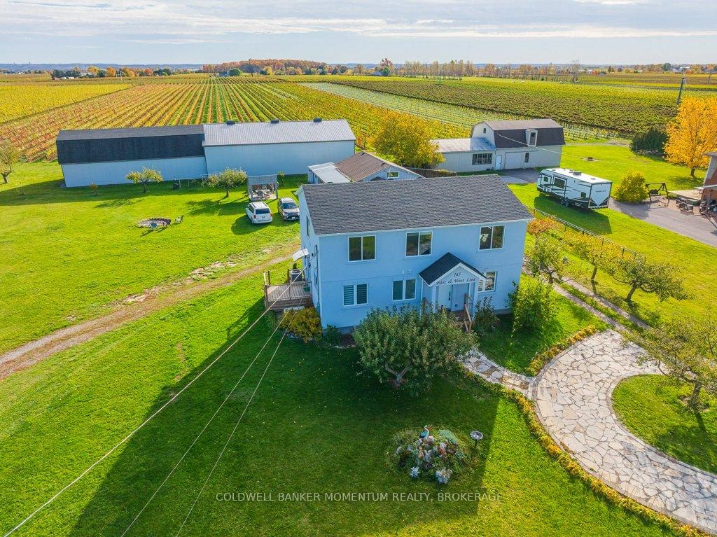 Nestled among serene orchards and lush vineyards, this unique country property offers nearly 2,400 square feet of finished living space and outstanding income potential, all in the heart of Niagara-on-the-Lake. This spacious two storey home is thoughtfully designed with two separate living units, making it ideal for multi-generational living or investment purposes. The main floor unit offers 2 bedrooms, a 2-piece bathroom and a 3-piece bathroom along with an eat-in kitchen and comfortable living room. The 2-storey unit features a primary bedroom with private 3-piece ensuite and a spacious second bedroom. On the second floor there is also an additional 5-piece bathroom, eat-in kitchen and spacious living area. The property also includes a fully finished recreation room in the basement, offering additional space for entertainment or guest accommodations. Currently operating as a licensed Airbnb, the home generates solid rental income and is a proven money-maker in one of Ontario's most sought-after destinations. Bonus income comes from the 36' x 25' detached shop on the property which is leased out, providing an additional annual income of nearly $16,000.Whether you're looking for a tranquil residence, multi-generational living, a vacation home with income, or a savvy investment, this property delivers. Enjoy the peaceful rural setting while being just minutes from wineries, restaurants, and all that. Niagara-on-the-Lake has to offer.