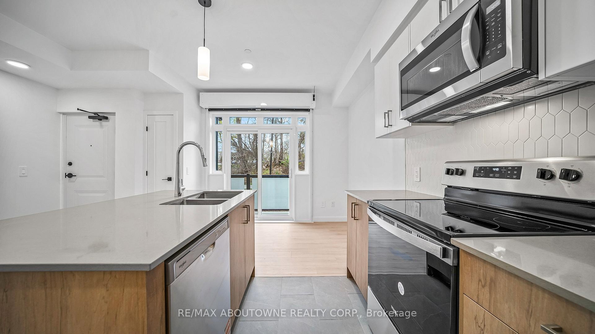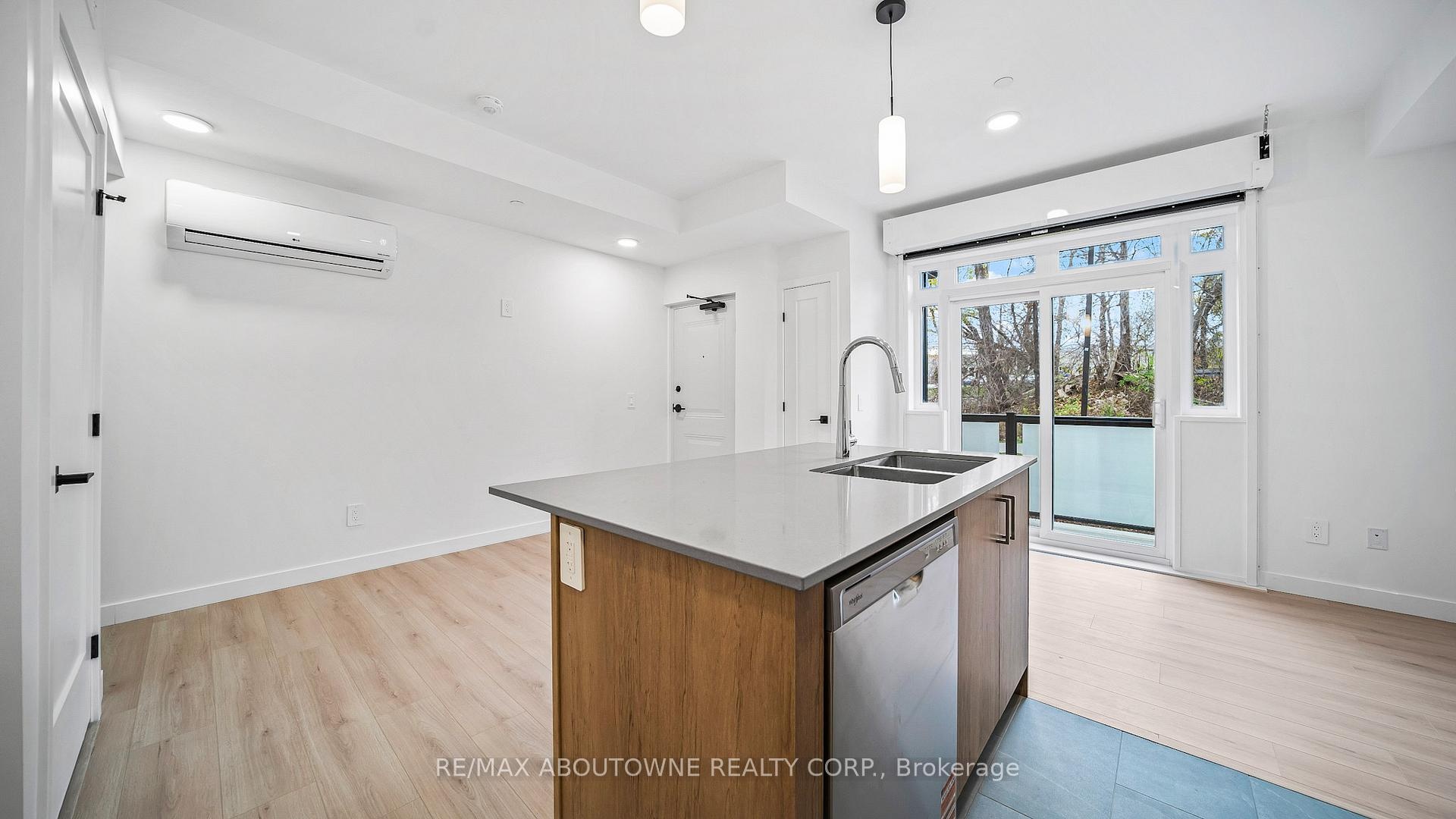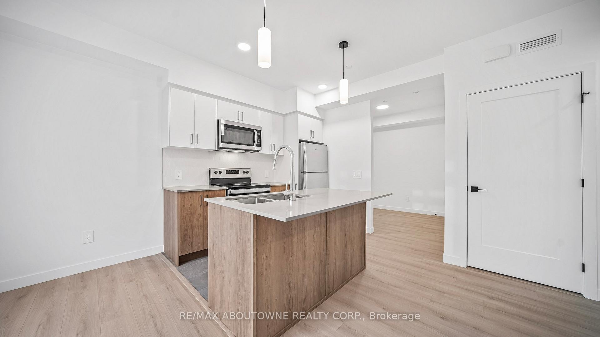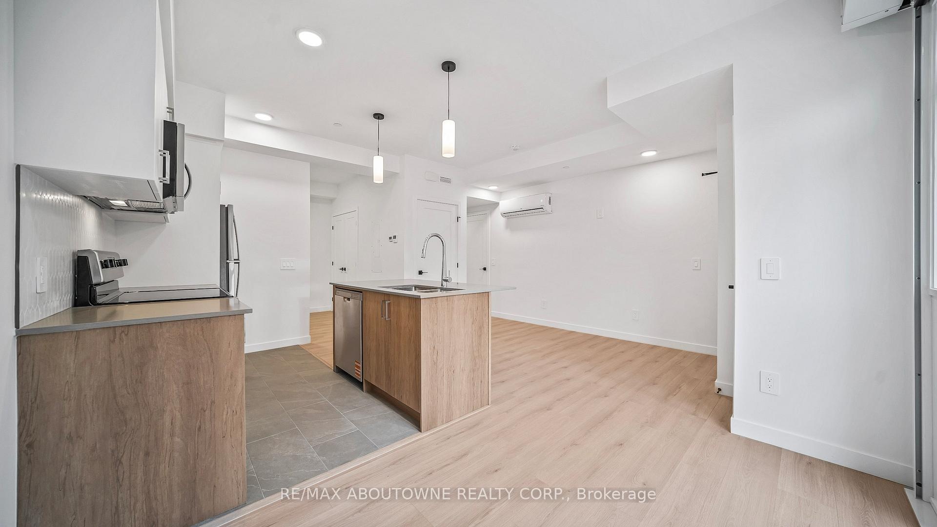 Welcome to this brand-new, never-lived-in 1-bedroom condo offering modern comfort and convenience in one of Kitchener's most vibrant communities. The open-concept layout features a contemporary kitchen overlooking the dining and living areas, a spacious bedroom, a 3-piece bathroom, and in-suite laundry. Step out onto the private balcony for fresh air and relaxation. Includes one owned parking space. Enjoy morning coffee at a nearby café, stroll or bike along scenic trails, skate at Victoria Park in winter, or unwind in the beautifully landscaped surroundings. Perfect for professionals or first-time buyers seeking style, walkability, and connection in a dynamic urban setting.