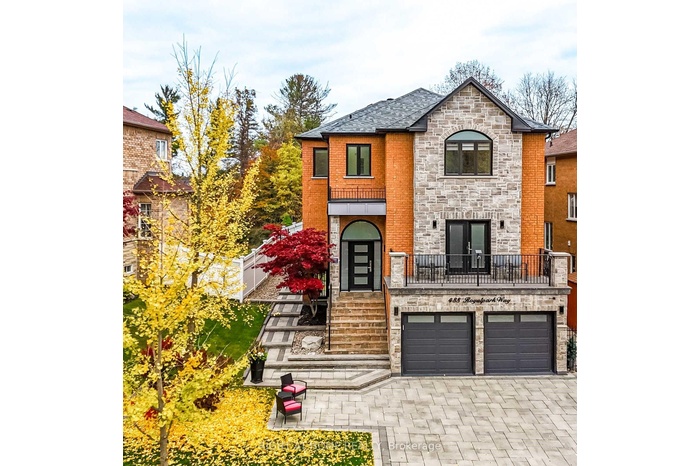 Discover this hidden gem in Vaughan's sought-after neighbourhood of Elder Mills, Vaughan. 488 Royalpark Way is a beautifully updated 4-bedroom brick home backing onto a peaceful ravine for ultimate privacy and scenic views. Lovingly maintained, it features a custom stone façade, interlock landscaping, and smart-controlled soffit lighting. Inside, enjoy a bright modern layout with smooth ceilings, engineered hardwood, and a renovated kitchen with stainless steel appliances (2 yrs old) and a walkout to the backyard-perfect for entertaining. The family room includes a cozy gas fireplace and a west-facing balcony for sunset views. Stylishly updated bathrooms and a spacious primary suite with a 5-piece ensuite elevate the comfort. Upgrades include triple-glazed windows (6 yrs old), new front door, frosted glass partitions, hot tub (5 yrs old), gas BBQ hookup, and electric car charger. The finished basement offers a cantina, 3-piece bath, and garage access. A move-in-ready home in one of Vaughan's most desirable neighbourhoods. A place you will be proud to call home!