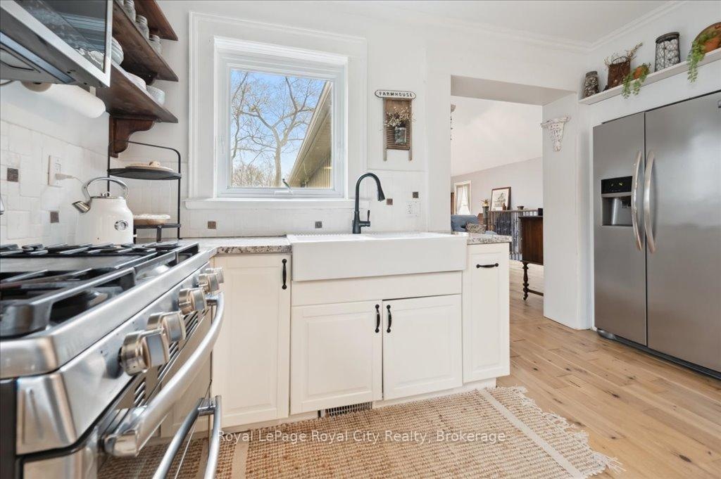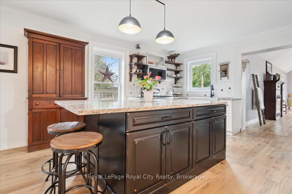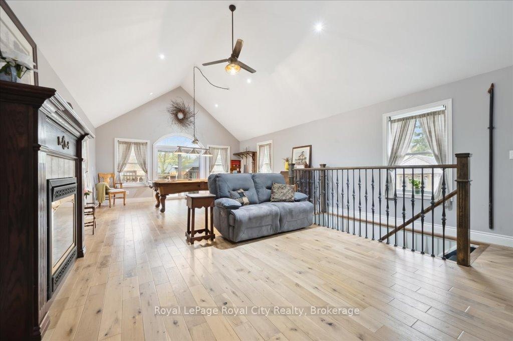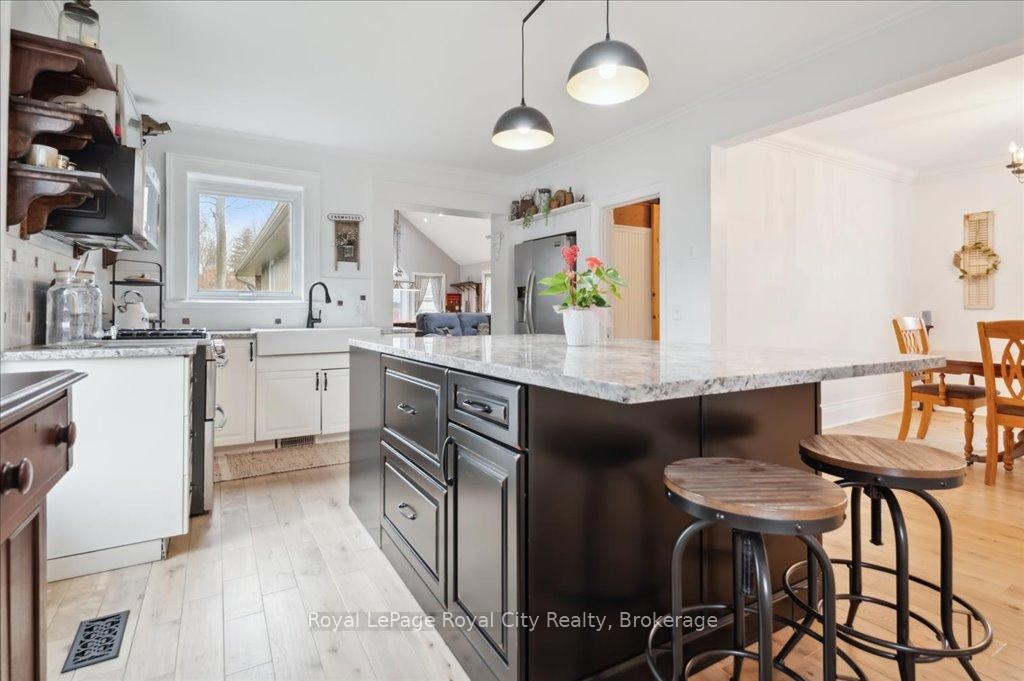 Welcome to this thoughtfully updated century home, brimming with timeless character and style. Tucked away on a quiet street in the heart of Grand Valley, this warm and inviting property offers the perfect blend of historic charm and contemporary comfort. From the moment you walk in, you'll be struck by the bright, open layout, ideal for entertaining. The spacious living and dining areas flow into a beautifully updated kitchen featuring a large island, granite countertops, and plenty of storage. The stunning family room addition is a true showstopper, with soaring cathedral ceilings and a cozy gas fireplace that makes it the heart of the home. Upstairs, you'll find three generously sized bedrooms and a beautifully renovated bathroom complete with a spa-like walk-in shower. Outside, your own private retreat awaits. Relax or entertain year-round under the large covered lanai, surrounded by an interlock patio and lush, low-maintenance perennial gardens. The interlock driveway and charming board-and-batten shed tie everything together with style and function. Located in the picturesque village of Grand Valley, you'll enjoy the peace and community of small-town living just a short drive from major amenities.