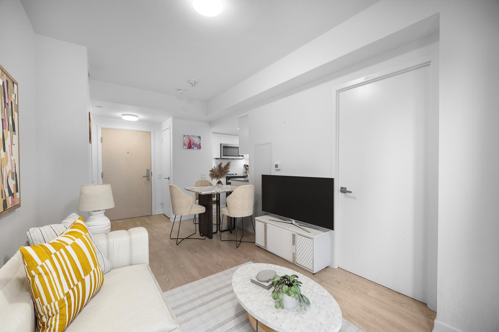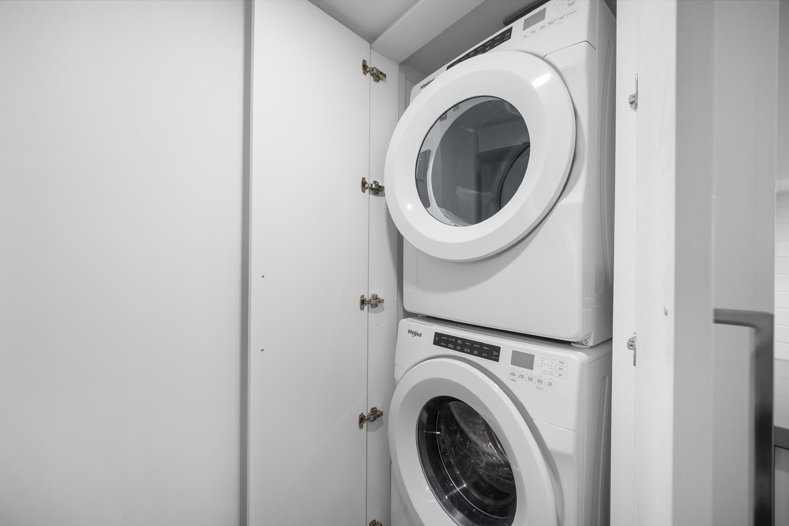 A modern 2 Bedroom, 2 Bath condo designed for comfortable urban living. Featuring bright west exposure, this unit enjoys plenty of natural light. The open concept living space includes a modern kitchen, ensuite laundry, locker unit (owned) for additional storage. One Parking Space Included, this condo delivers both convenience and value, with many amenities - Shopping, Restaurants and transit - Perfect for first time buyers, downsizers or investors.