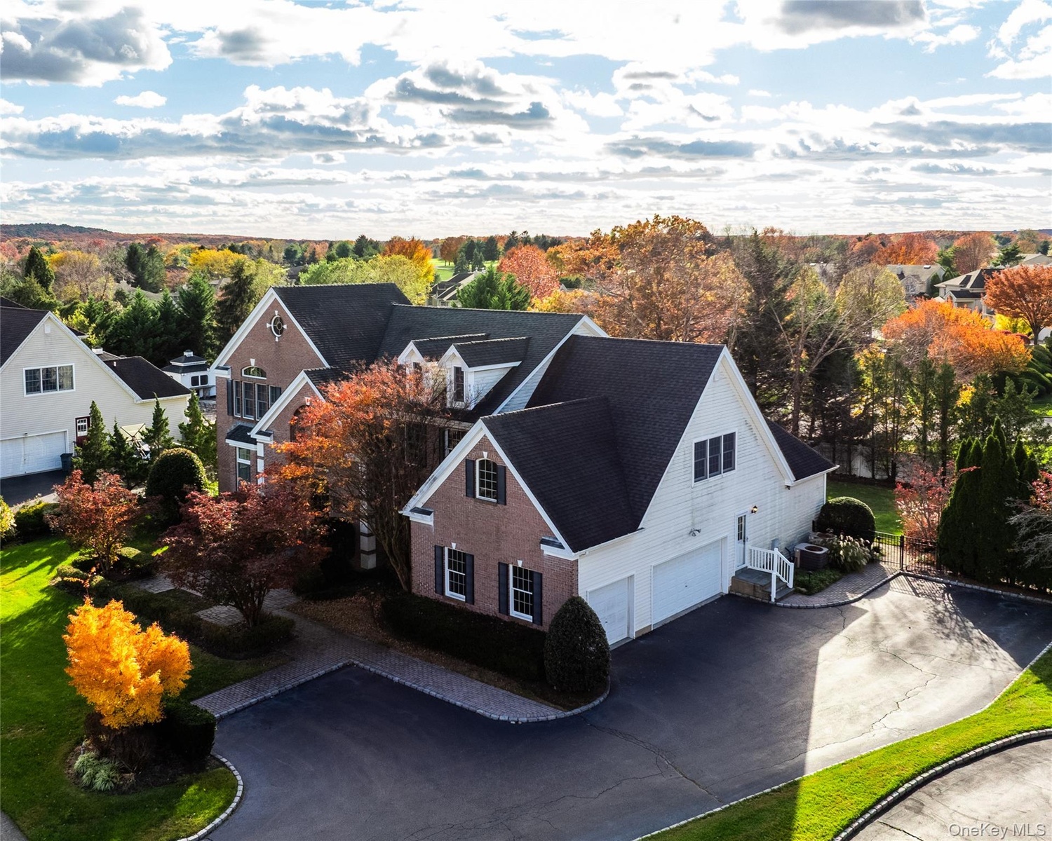 Elegant Colonial with a stately brick facade located within the prestigious, 24-hour gated community of Country Pointe in Dix Hills. Perfectly sited on a beautifully landscaped half-acre, this residence offers timeless architectural detail and modern comfort in one of Long Island’s most sought-after enclaves. Residents enjoy the security and serenity of Country Pointe living while adjoining The Greens, with access to its clubhouse, pool, tennis, fitness center, pickleball, and more. The grand two-story foyer introduces a sophisticated layout featuring formal living and dining rooms, a bright living room with gas fireplace, and an expansive kitchen with granite countertops and a center island open to a breakfast area. A first-floor bedroom with adjacent full bath provides flexibility for guests or a private home office, along with a convenient half bath near the main entry. Includes a first-floor laundry/mudroom and access to a three-car garage. The upper level hosts a primary suite with dual walk-in closets and a spa-style bath, along with four additional bedrooms and a hall bath. Outdoors, enjoy an inviting stone patio, pergola, and in-ground pool surrounded by lush, mature landscaping for total privacy. A full basement, gas heat, and central air conditioning complete this outstanding offering—delivering luxury, space, and security in one of Long Island’s most desirable gated communities.