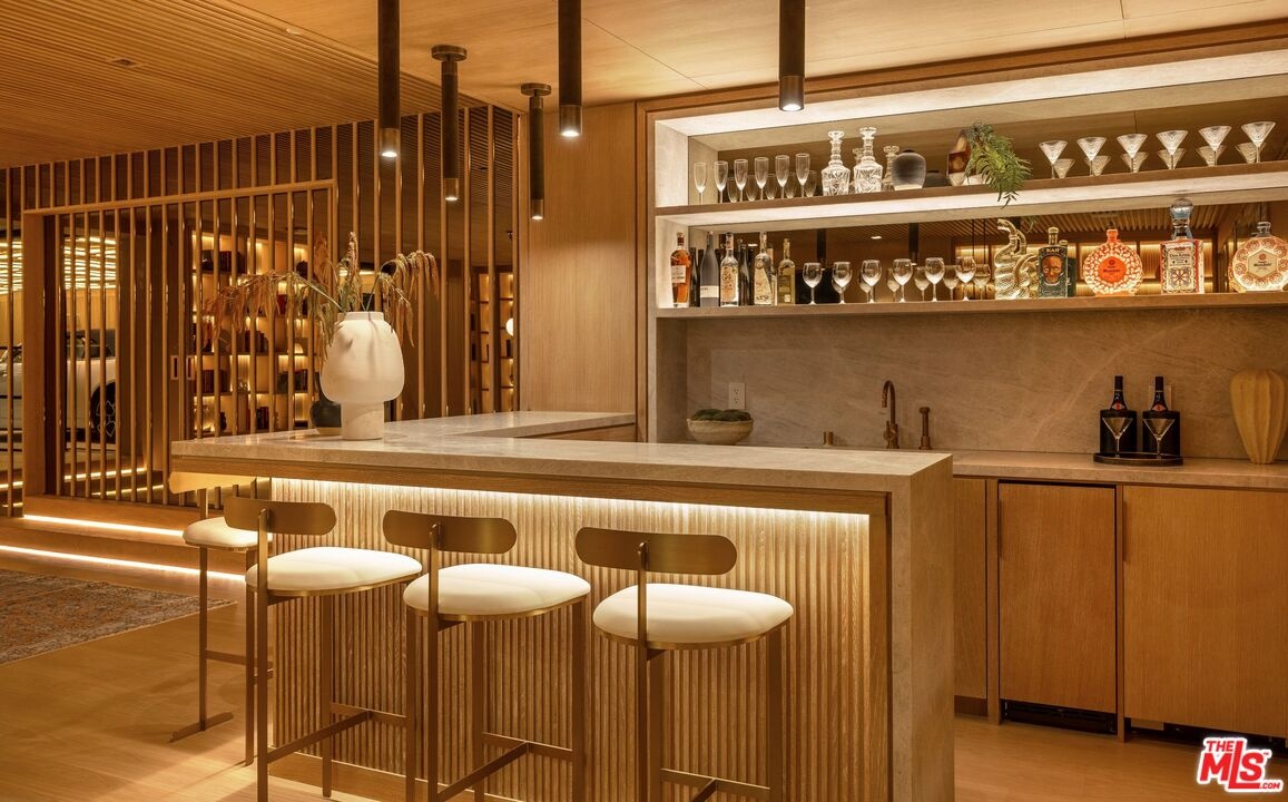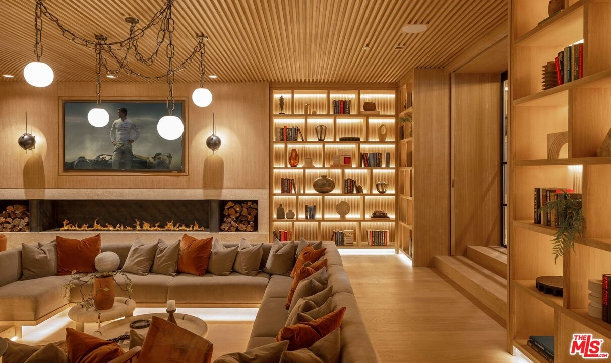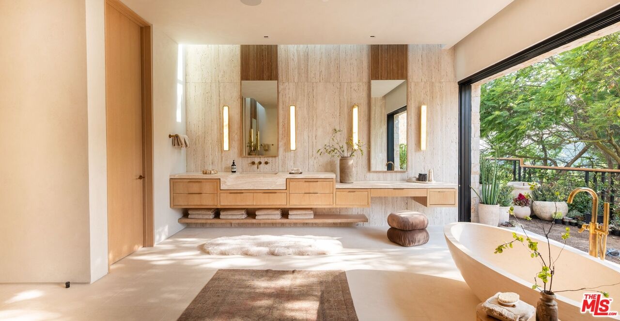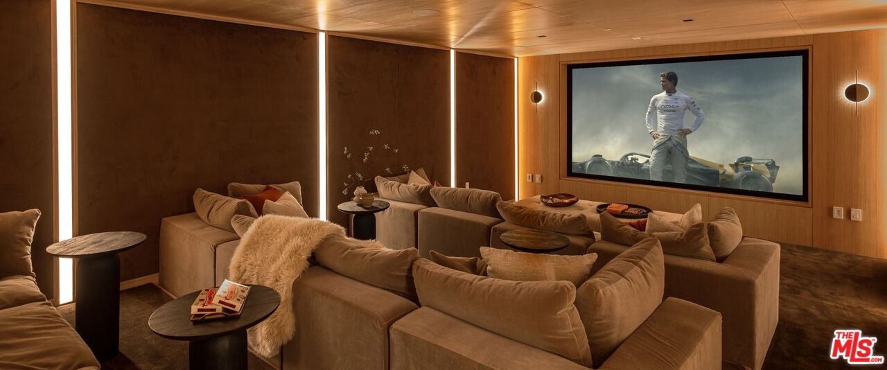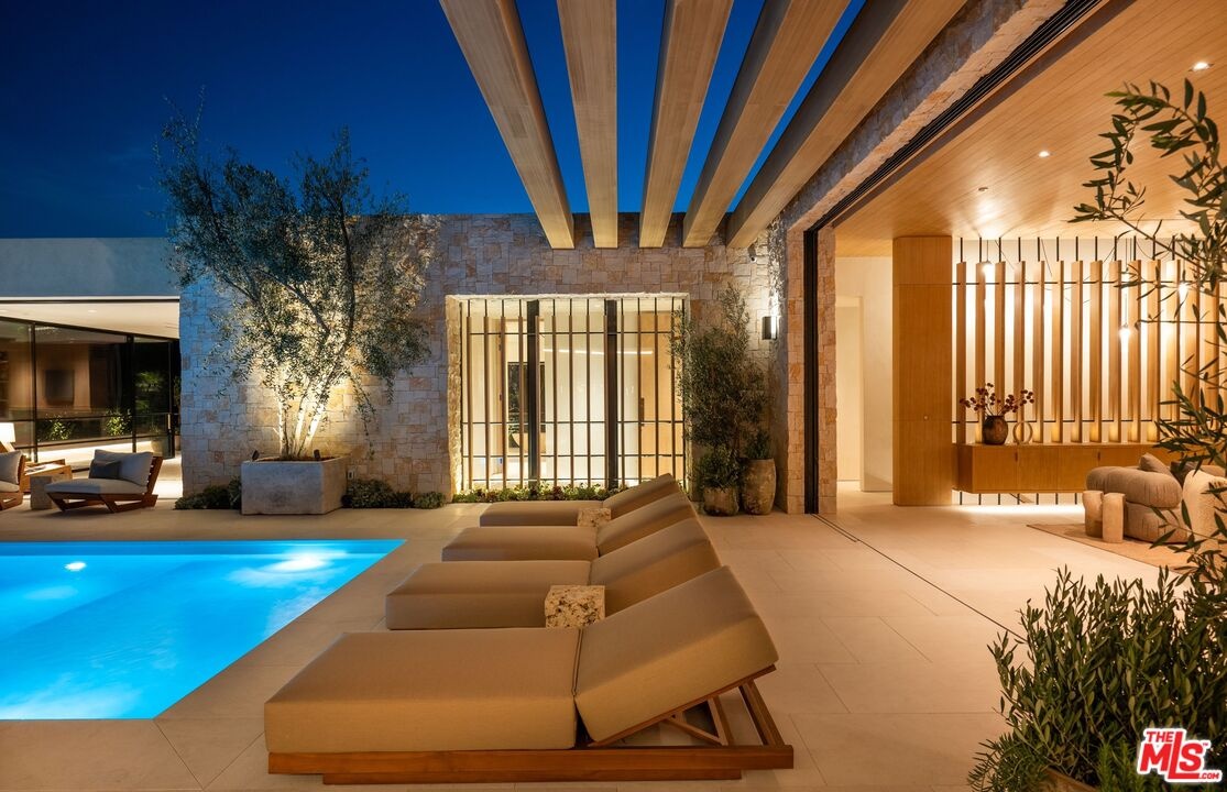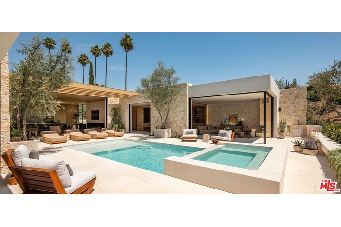 Experience timeless elegance in the exclusive Trousdale neighborhood of Beverly Hills. This organic estate, designed by renowned designer Charles Infante, weaves his experience in film to create a narrative fit for entertainment and curated for elevated living in every possible way. Spanning approx. 10,000 square feet, this architectural masterpiece showcases rich natural tones with Portuguese limestone, Italian Navona travertine, white oak paneling and floors, organic custom plaster walls, and motorized custom steel windows. Sleek lines perfectly frame cinematic city-to-ocean views. Inside, the main living spaces are open and airy, with walls of glass that fully pocket to create a seamless indoor/outdoor flow to the pool, spa, and patio. The expansive living room, dining area, and both the main and chef's kitchens are designed for grand scale living and entertaining. Four ensuite bedrooms offer refined comfort, in addition to a spacious, tranquil primary suite with motorized walls of glass, panoramic city views, and a spa-style bath. Luxurious amenities include a sleek gym with sauna, a temperature-controlled wine display, and an epic entertainment lounge with a sunken conversation pit, full bar, and state-of-the-art theater. The fully finished showcase garage features a car turntable; perfect for showcasing your collection. This is your moment to live above it all, in a home that sets the new standard for Trousdale living.