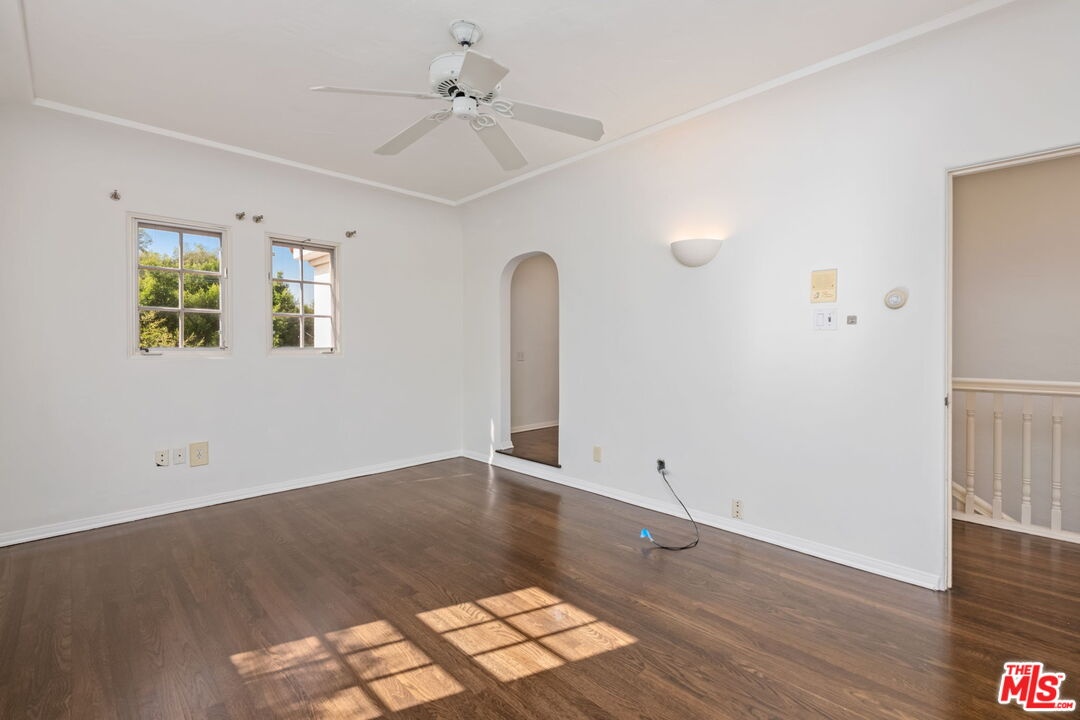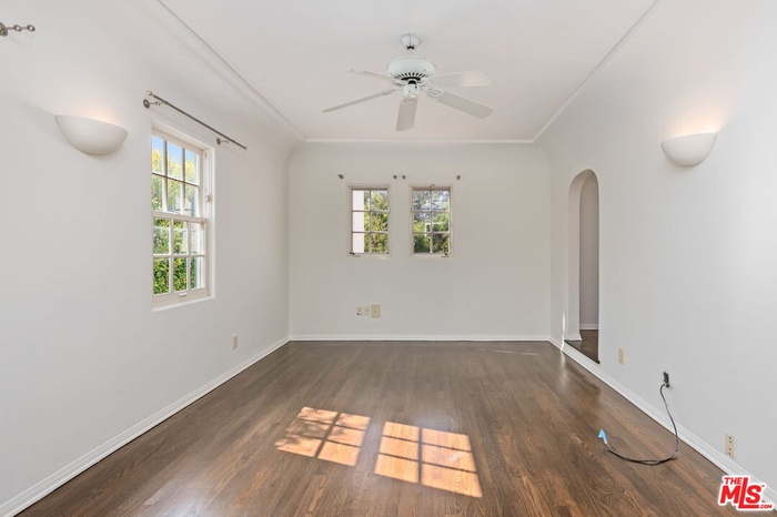 Updated Spanish home in prime Brentwood Flats location. This charming remodeled home features four generously-sized bedrooms and 3.5 baths. Many of the original detailing still intact. Hardwood floors, arched windows and doorways, gorgeous moldings and built ins add a nice sense of style against the backdrop of many modern conveniences.. Formal entry leads to the very spacious living room complete with a beautiful fireplace. The amply sized formal dining room provides easy access to the modern and upgraded gourmet kitchen equipped with stainless steel appliance. The family room with yet another fireplace opens seamlessly to the kitchen and also out through French doors to the beautifully landscaped backyard. A powder room, laundry room and a downstairs bedroom and bath complete the first level floor plan. Upstairs, the primary suite features a sitting area, a balcony, a walk-in closet and a spa-like bathroom. Two other secondary bedrooms share a bath, Jack and Jill style. Out back, there's a lovely deck space for easy al fresco lounging and dining, a refreshing pool and spa and a grassy area. the converted garage functions as a bonus room in the back yard. Air conditioning is upstairs only. Views of the pool and backyard from the master suite and family room. Square footage number is from an appraisal and is not guaranteed. Both fireplaces are to be considered decorative and shall not be used by tenant.