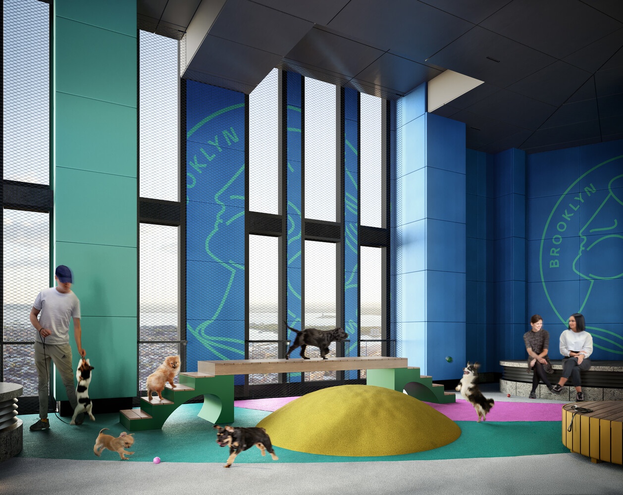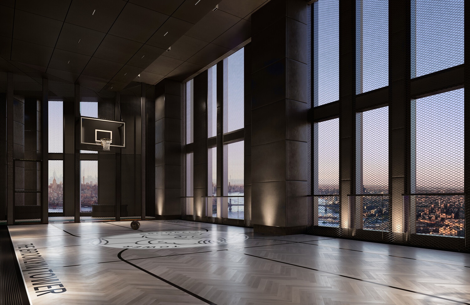 Residents at Brooklyn Tower have access to one of the largest residential amenity offerings in New York. A world-class performance-infused lifestyle, secured with over 100,000 square feet of exclusive indoor and outdoor leisure spaces. Life Time Athletic Club will manage an impressive array of amenities including a 75" outdoor lap pool and whirlpool, fully-serviced poolside lounge and atrium, billiards room, library lounge, conference room, and theater with wet bar. Dedicated private resident amenities include a children's playroom, limited off-site parking, and the coveted Sky Park, boasting an open-air loggia featuring a basketball court, playground, and dog run.