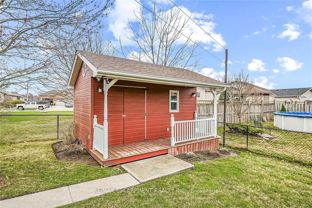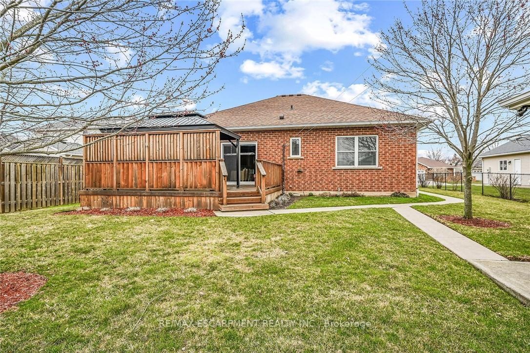 Tastefully updated, lovingly maintained Custom Built 2 bedroom, 2 bathroom all brick Bungalow in Hagersville's premier subdivision on premium 65' x 117' lot on desired Oak Crescent. Great curb appeal with attached double garage, concrete driveway, welcoming front porch, shed, partial fenced yard, & mature back yard complete with deck & gazebo area. Open concept interior layout includes over 2000 sq ft of living space highlighted by 9 ft ceilings throughout, eat in kitchen, formal dining area, family room with gas fireplace, additional MF living room, 2 bedrooms including primary suite with 3 pc ensuite, 4 pc primary bathroom, foyer, & patio door walk out to extensive deck. The partially finished basement features large rec room, games area, & oversized storage area that can be finished to add to overall living space. Ideal for those looking for main floor living, young family, or 2 family home / in law set up.