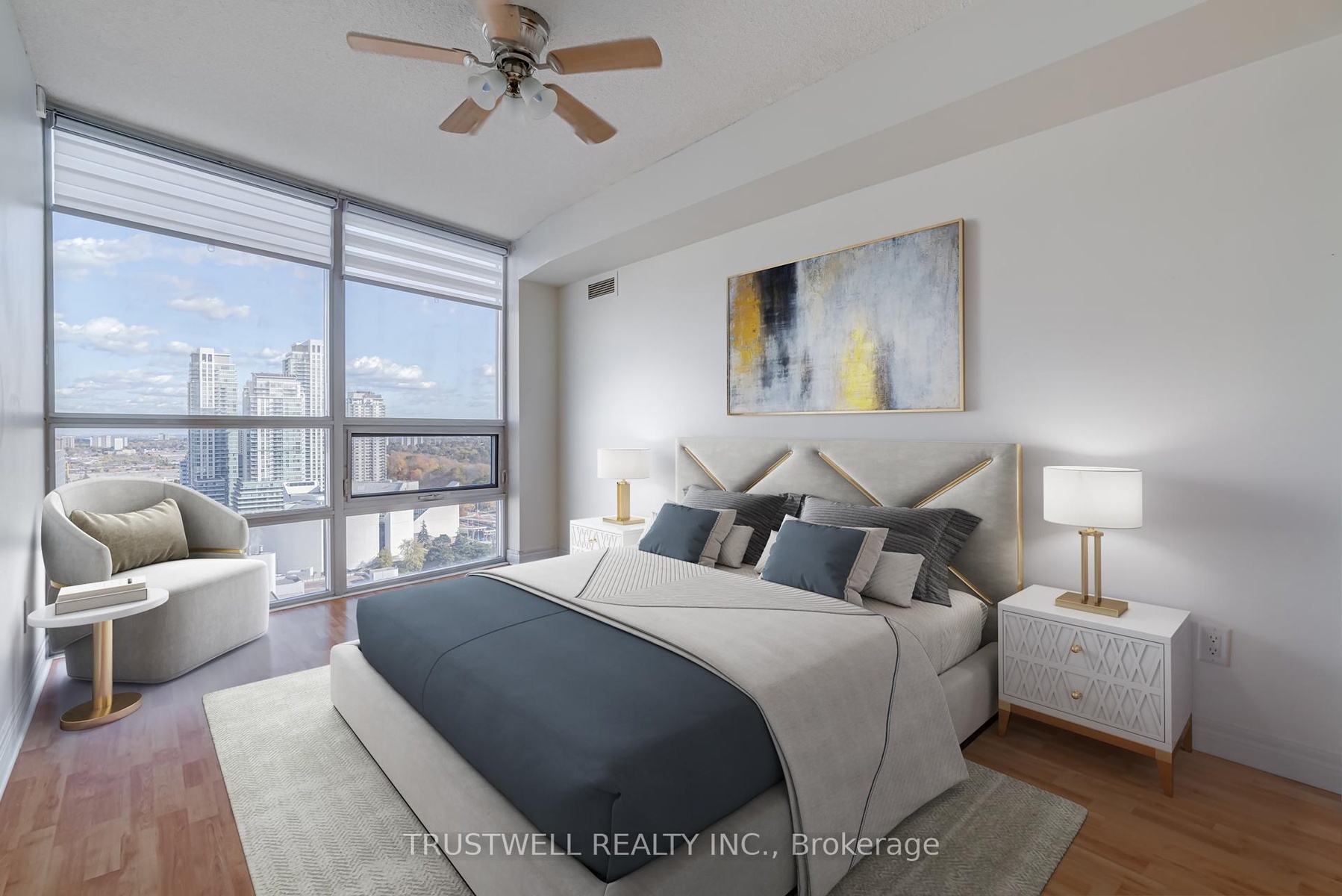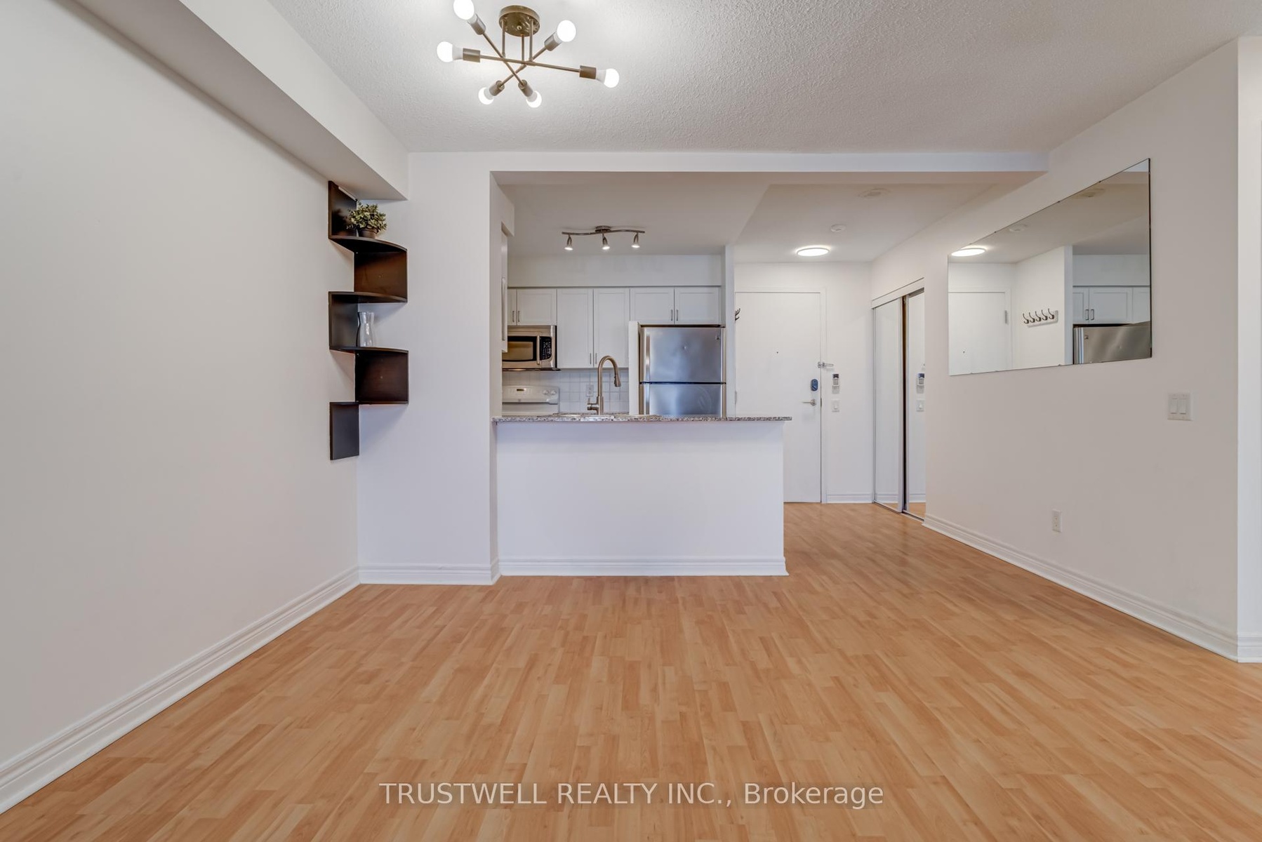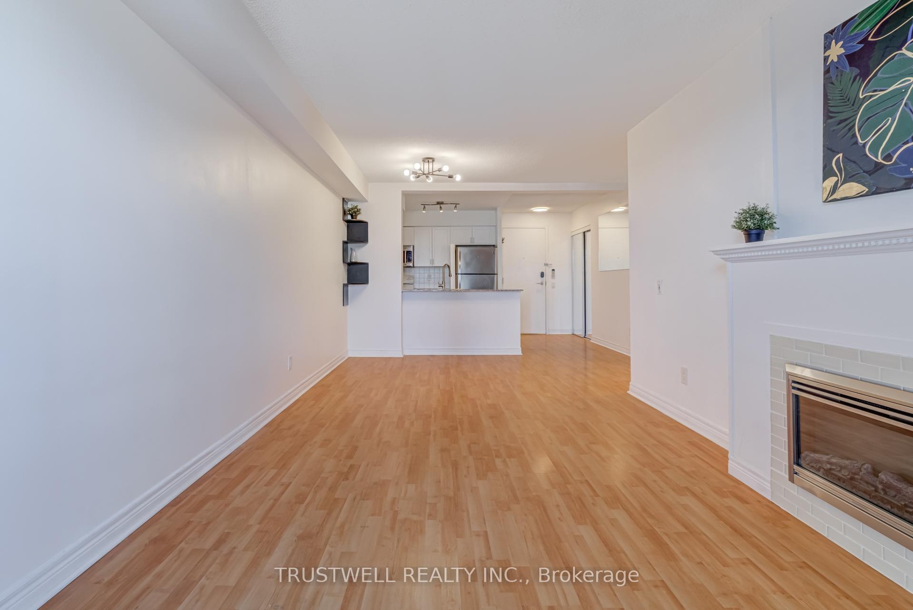This spacious and functional, 1 bedroom unit with an eastern exposure is immaculate and move-in ready! With parking and locker conveniently located within steps of one another. Enjoy sunrise views from the walk-out to the balcony from the living/dining area with a warming electric fireplace and display mantle. Prepare meals and entertain in the open concept kitchen with a lovely granite breakfast bar and counters. Durable laminate flooring is laid throughout the living/dining areas and primary bedroom. The sun-filled primary bedroom has floor-to-ceiling windows with a large wall-to-wall double closet with built-in closet organizers. Just steps away from the bedroom is the 4-piece bath with a rain shower head. You will surely enjoy the amazing building amenities including: 24 hour concierge, the indoor swimming pool, sauna and hot tub, fully equipped gym, billiards and party room, the roof top patio on the 26th floor and lots of visitor's parking. Prime Location: Just minutes to 401, 404 and DVP, TTC just steps away. Short stroll to Scarborough Town Centre, groceries/shopping, restaurants, theatre and so much more! Don't miss out on this one!