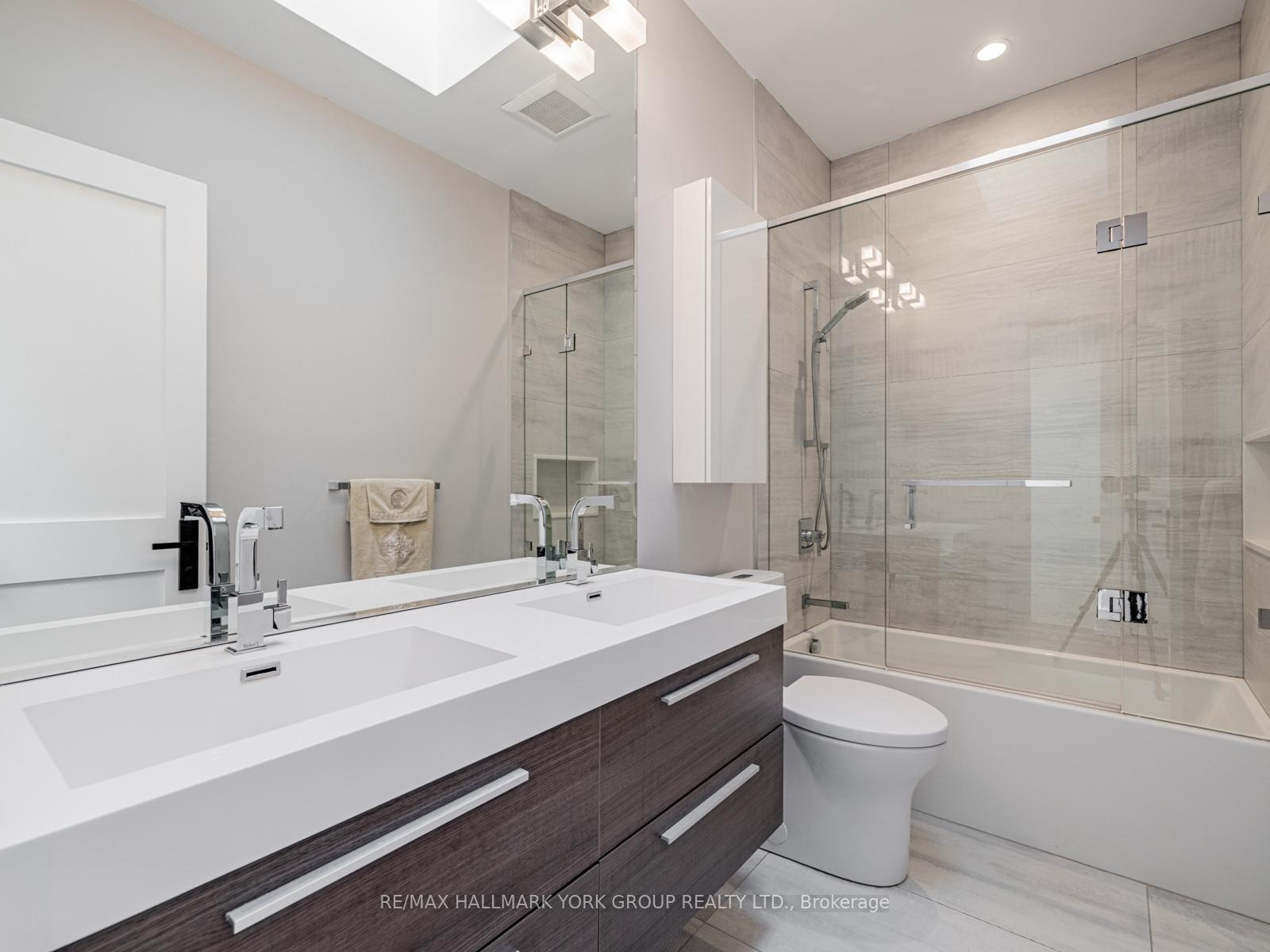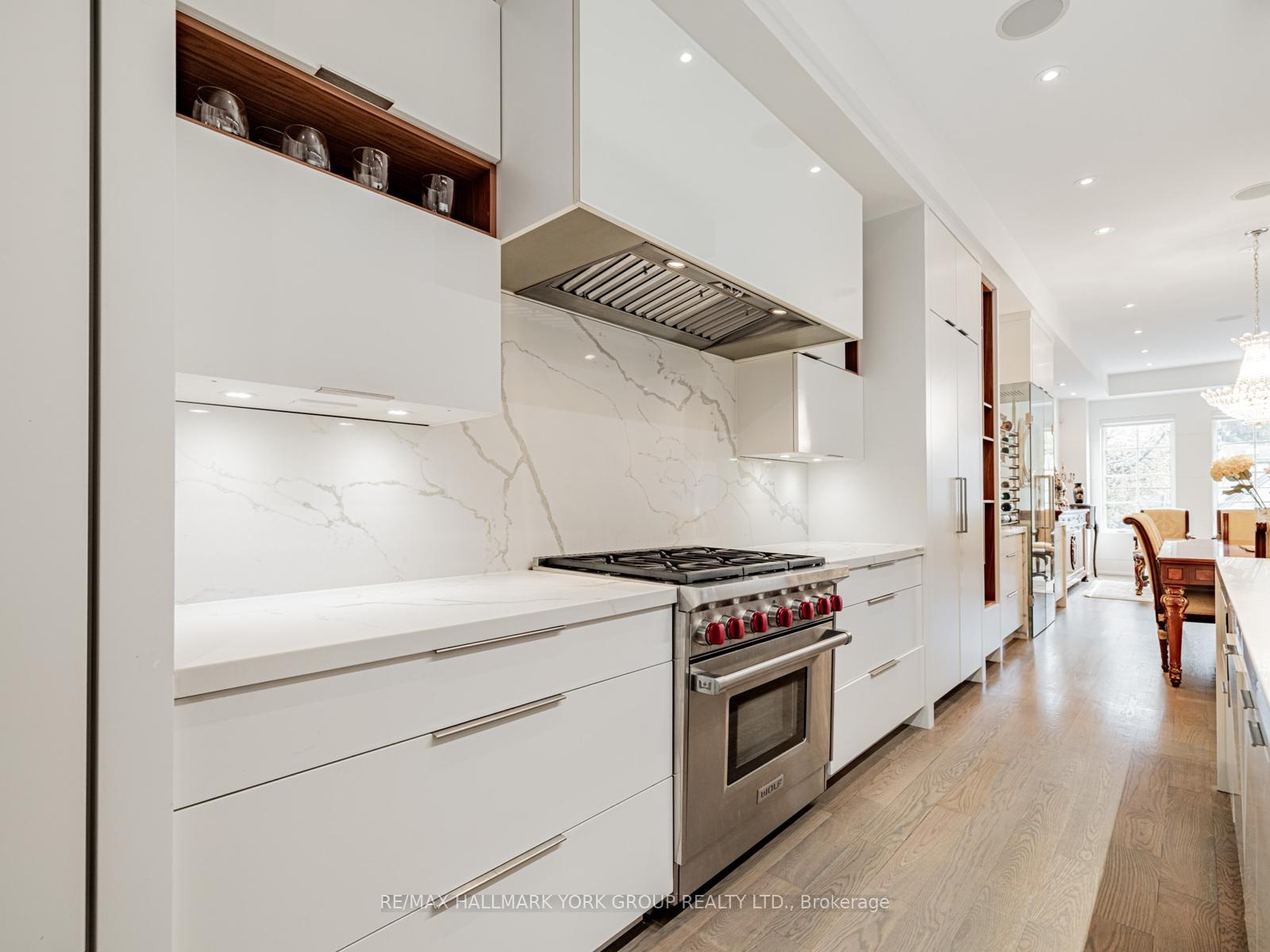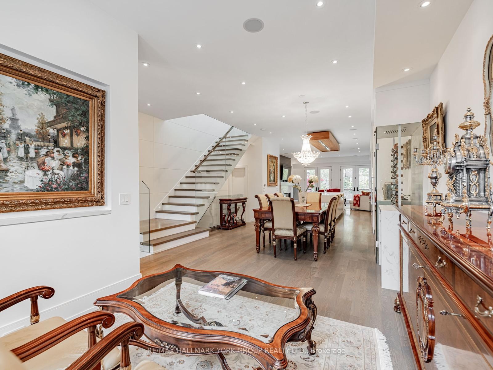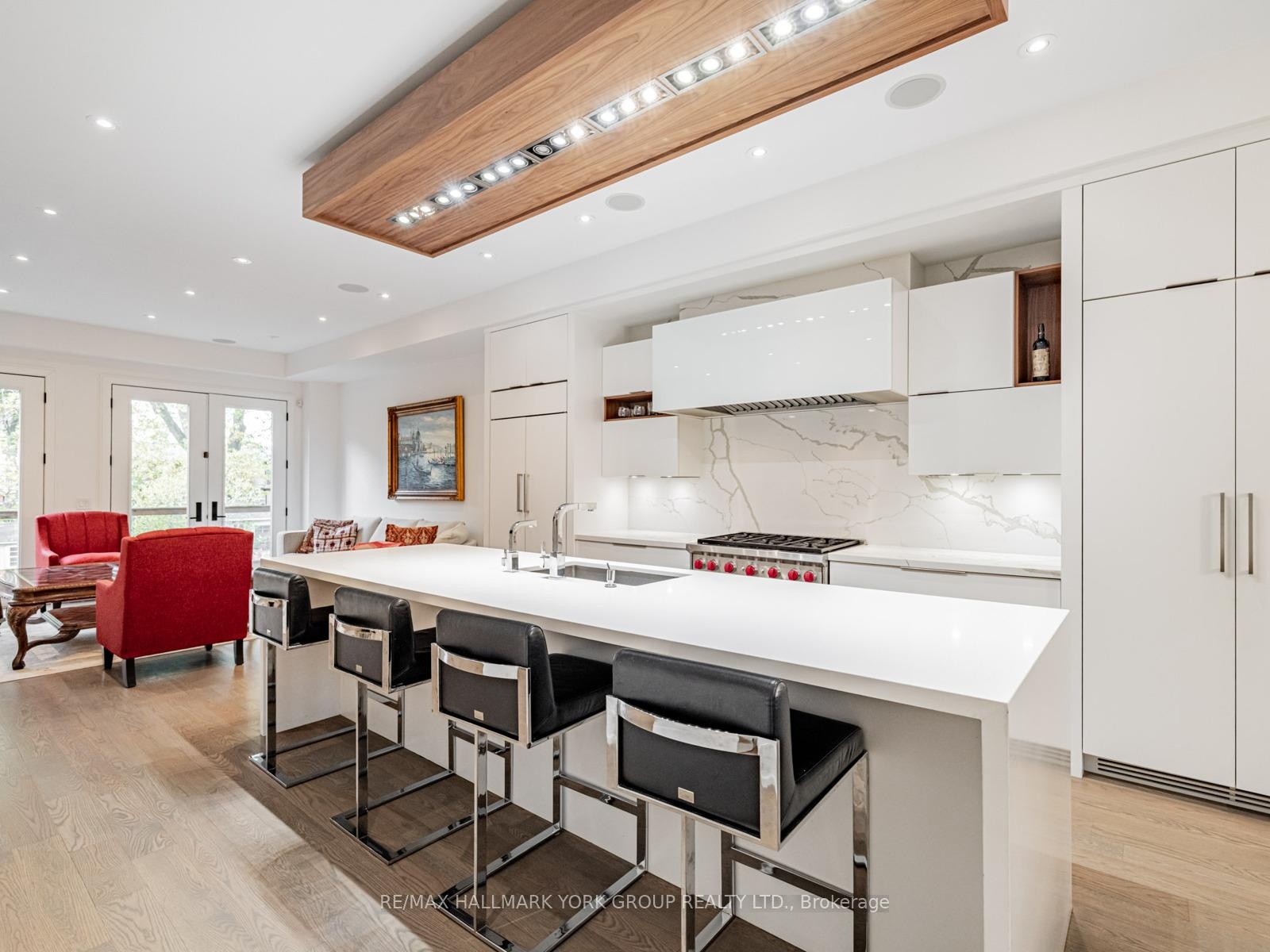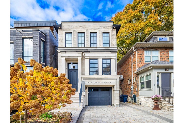Bold Design. Timeless Luxury. Exceptional Location. Welcome to 62 St. Germain Avenue, an architecturally crafted masterpiece on an extra-deep 25 x 150 ft lot in the prestigious Lawrence Park North. This custom-built 4+1 bedroom home offers over 2,300 sq.ft. of above-grade living, combining modern sophistication with timeless elegance in one of Toronto's most coveted neighbourhoods.From the moment you arrive, refined curb appeal sets the tone - a limestone façade, black-framed windows, and interlocked driveway with integrated garage create a stunning first impression. Inside, natural light fills the spacious living room with oversized bay windows, flowing into a striking dining area complete with a custom wine display and built-in cabinetry for effortless entertaining.The chef-inspired kitchen impresses with a waterfall island, Sub-Zero refrigerator, Wolf 6-burner range, panelled dishwasher, and built-in microwave - a perfect blend of form and function. The open-concept family room features a gas fireplace and double French doors opening to a large deck and landscaped backyard, ideal for seamless indoor-outdoor living.Enjoy 10-ft ceilings on the main floor, 9-ft upstairs, and a soaring 11-ft lower level with full in-floor radiant heating. White oak hardwood floors and heated foyers and bathrooms elevate comfort and style throughout.The upper level hosts four generous bedrooms with coffered ceilings and custom built-ins. The primary suite is a serene retreat with two walk-in closets and a spa-inspired ensuite, featuring a soaking tub, oversized glass shower, and double vanity. A dramatic panelled feature wall and custom stairwell lighting showcase exceptional craftsmanship at every turn.Steps from Yonge St boutiques, fine dining, and Lawrence subway, and within the Bedford Park Elementary and Lawrence Park Collegiate school zones, this residence defines modern luxury living - turnkey, elegant, and truly timeless.