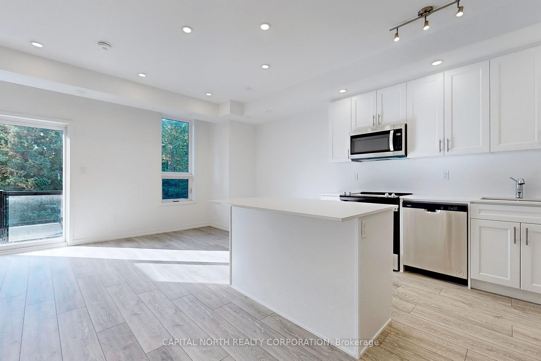 Bright 2-bedroom townhome with rooftop terrace and south exposure overlooking greenery. Approx. 1,234 sq. ft. plus 356 sq. ft. terrace with gas hookup. Two parking spaces and one locker included. Around $15,000 in upgrades-smooth ceilings, pot lights, cabinetry, vanities, tiles, and doors. Prime location across from Upper Canada Mall and steps to Newmarket Bus Terminal.