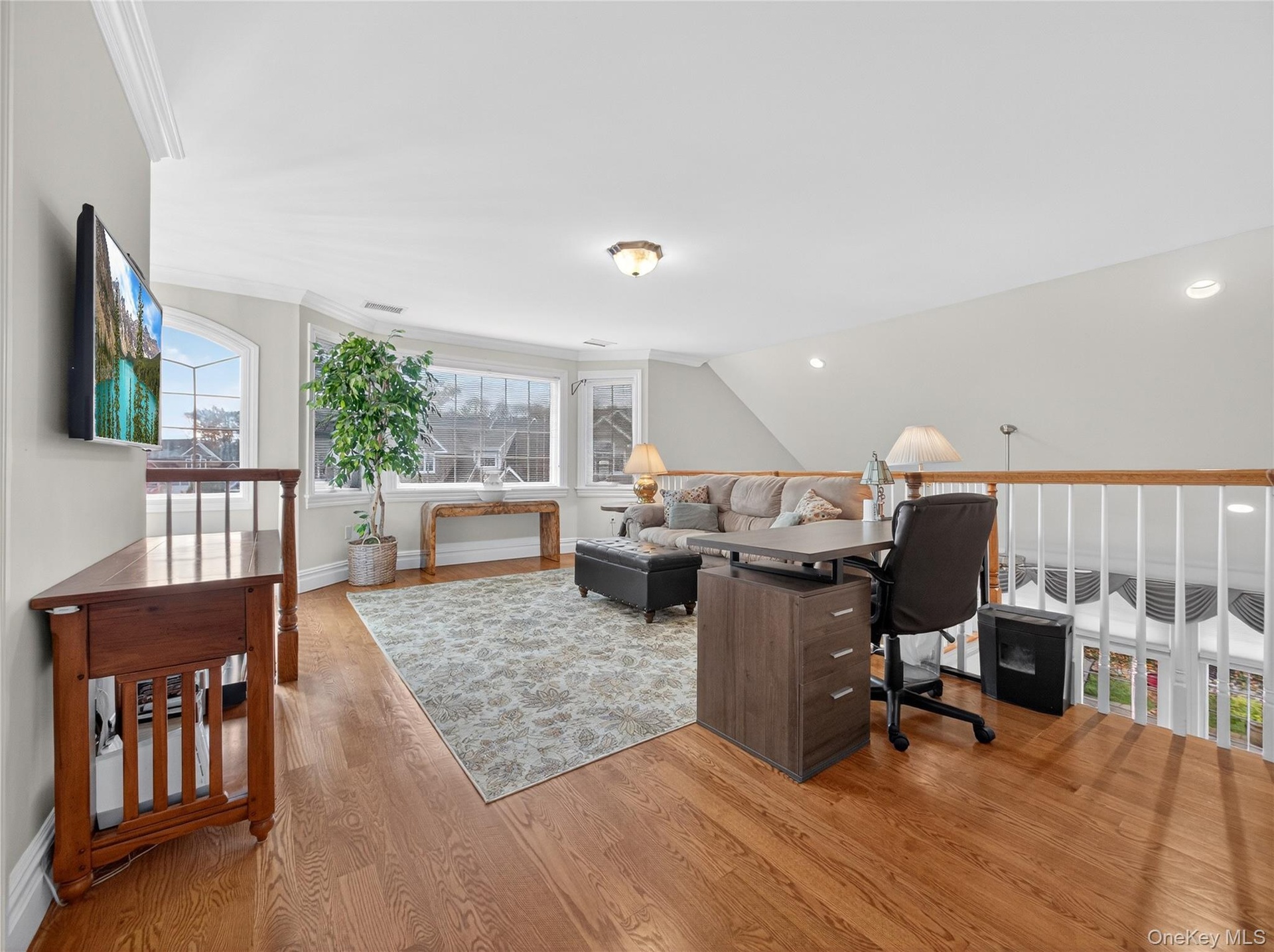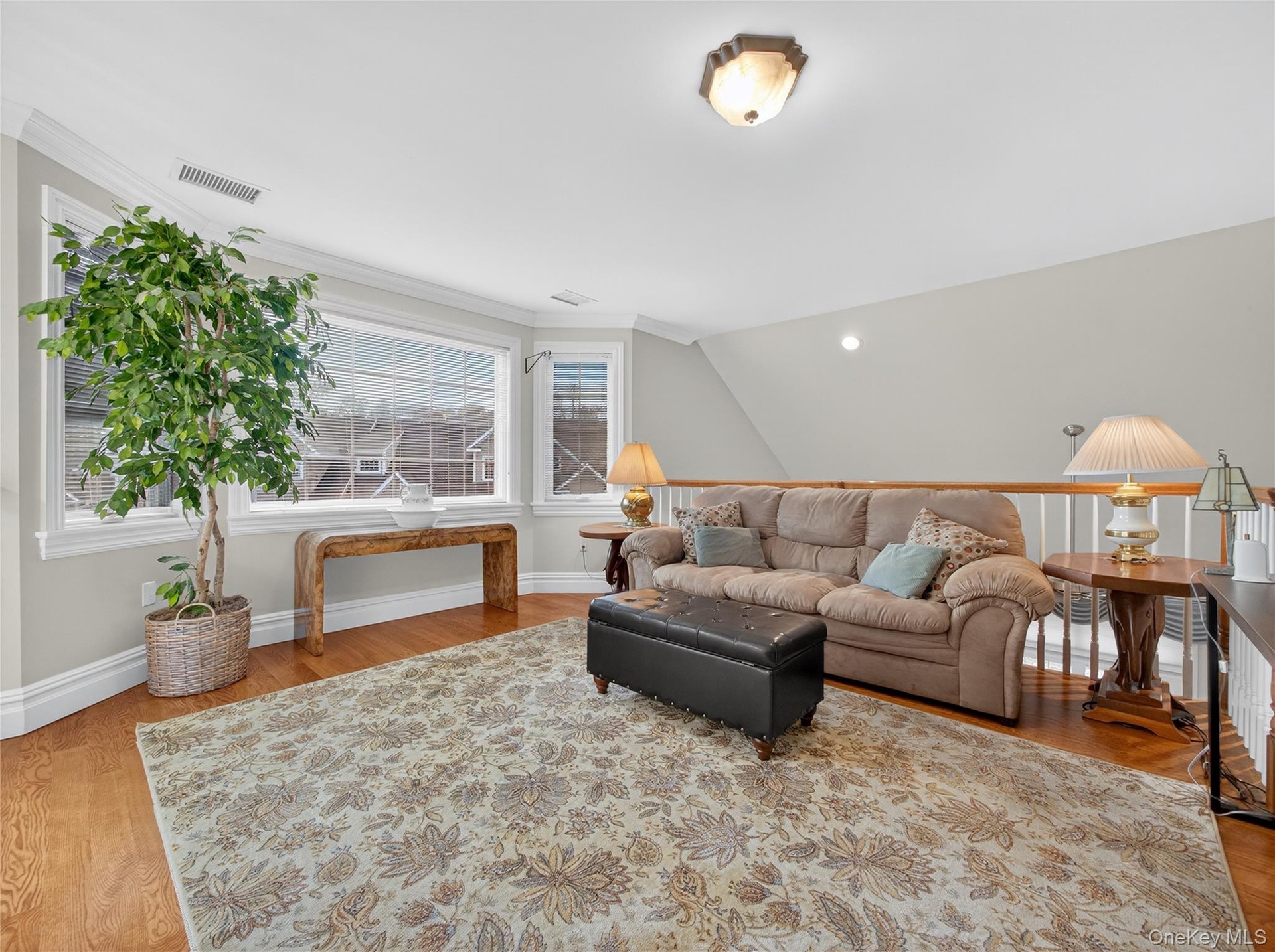 Luxury End Unit - in a Premier 55+ Community. This exceptional 2-bedroom (Primary bedroom on the main floor + 1 additional bedroom on the upper floor), 2.5-bath end-unit Townhome with a private side entry is a rare opportunity in one of the area’s most desirable 55+ luxury communities. Surrounded by mature landscaping and filled with natural light, this residence offers refined living inside and out. The interior showcases hardwood floors throughout, custom crown molding and trim, and oversized windows. The main level includes a sun flooded formal dining room to the great room with cathedral ceiling and gas fireplace. A walk-in laundry room, and a gourmet kitchen with a double - wall oven and separate cooktop and pantry with rollout drawer features. Off the family room is the oversized patio with custom full size electric awning surrounded by large - mature privacy landscaping. The main floor - primary suite features a custom built-in walk-in closet and a spa-inspired bath with walk-in shower. Upstairs, enjoy the sun filled loft and additional walk in closet, and the second spacious bedroom with a large walk in closet and spacious en-suite bathroom. The home has a soft water system installed along with central vacuum. The main floor windows enjoy privacy tint for added comfort. Community Residents have access to a wide variety of amenities including: sparkling outdoor pool with sundeck and private cabanas, Bocce court, tennis courts, and putting green for year-round recreation and scenic walking trails perfect for exercise or leisurely strolls. Additionally, a clubhouse featuring a state-of-the-art fitness center, multipurpose rooms, and elegant dining areas for social gatherings and events. This community offers the perfect balance of leisure and activity in a welcoming setting. This move-in ready end unit is the perfect blend of elegance, comfort, and convenience—set within a vibrant 55+ community.