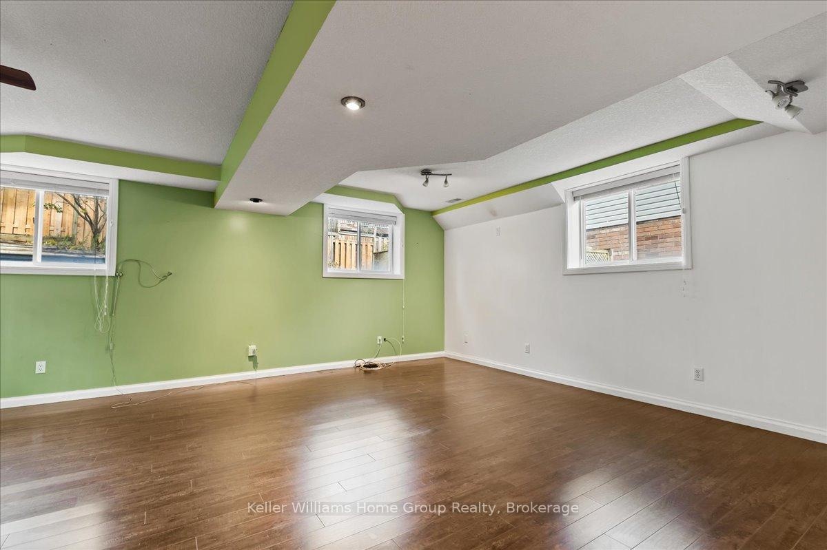 This detached raised bungalow sits on a spacious 55 x 100 foot lot in one of Guelph's most family-friendly neighbourhoods, just steps from Eastview Community Park and Pollinators Park. Offering 1,119 square feet of living space, this home features a bright open-concept layout with natural light flowing throughout.The main level has been refreshed with new flooring and carpet (2024), an updated kitchen showcasing refreshed cabinets, a stylish backsplash, and modern appliances (2024). The bright and airy living room includes a gas fireplace and walkout to one of two decks - perfect for relaxing or entertaining. A second deck off the kitchen overlooks the side and backyard, offering even more space to enjoy the outdoors.The bright lower level, complete with large windows, provides excellent in-law suite potential or additional living space. With a newer roof (approximately eight years old) and a two-car garage, this property offers both comfort and peace of mind.Move-in ready and full of charm, 431 Starwood Drive combines warmth, functionality, and future opportunity - all in a convenient Grange East location close to parks, great schools, and everyday amenities.