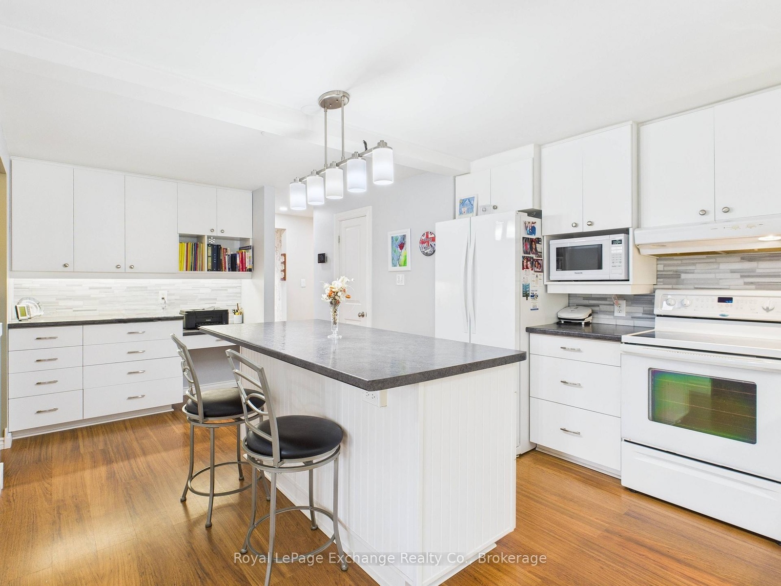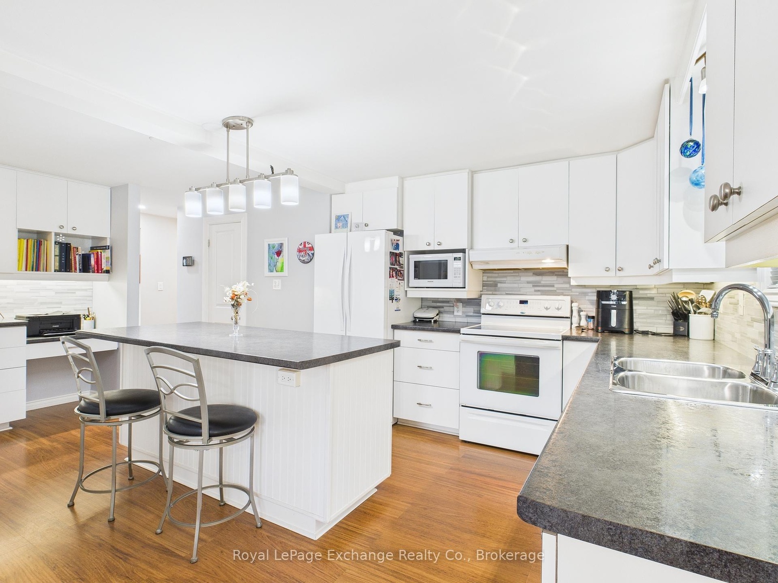 This well-maintained 3-bedroom, 2-bathroom bungalow offers over 2,100 sq. ft. of finished living space on a beautifully private 220-foot deep lot. Ideal for first-time buyers or downsizers, the home blends comfort, practicality, and charm throughout. The spacious kitchen features a large island and connects seamlessly to the bright sunroom addition, creating the perfect setting for morning coffee or quiet relaxation. The lower level expands the living area with a versatile family room and additional space for hobbies, guests, or a home office. An attached single-car garage includes workshop space and a 60-amp panel, providing excellent utility for the handyman or DIY enthusiast. The deep backyard offers a private outdoor retreat with ample room for gardens, entertaining, or simply enjoying the peace and quiet. Located in a desirable area of Kincardine, close to parks, schools, and the shoreline, this property offers the best of small-town living with modern convenience.