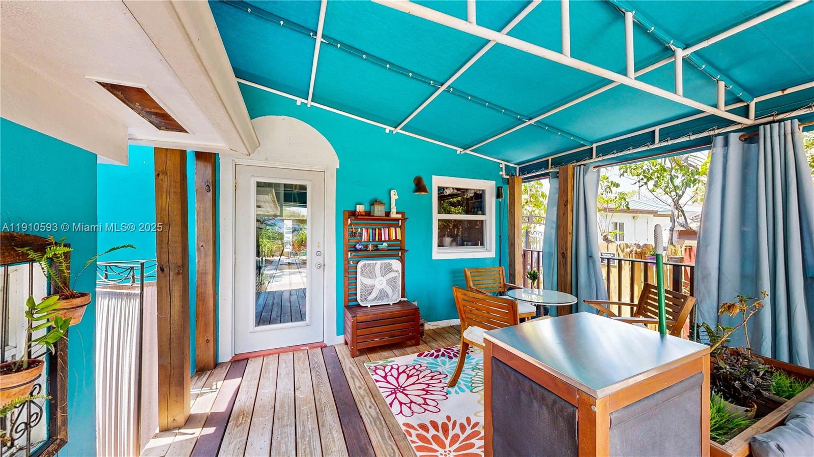 Impeccably upgraded 4-bedroom and 2-bathroom home with solid red oak floors and eco-friendly improvements throughout. In-laws suite with its entrance. Impact windows, a hurricane-rated roof, and a 7K generator ensure top-tier storm protection. Kitchen features custom solid wood cabinets, stone counters, new stainless steel appliances, and a natural gas stove. Updated plumbing and electrical with 200-amp service, surge protection, and whole-house generator diverter. Private courtyard with hot tub, expansive awning-covered deck, and fully fenced yard with gated driveway and off-street parking for 3. A smart security system. A fully electrified yard, video doorbell, and shed with tools are included. Zoned for duplex conversion. Conveniently located. Enjoy 3D tour! May the force be with you!