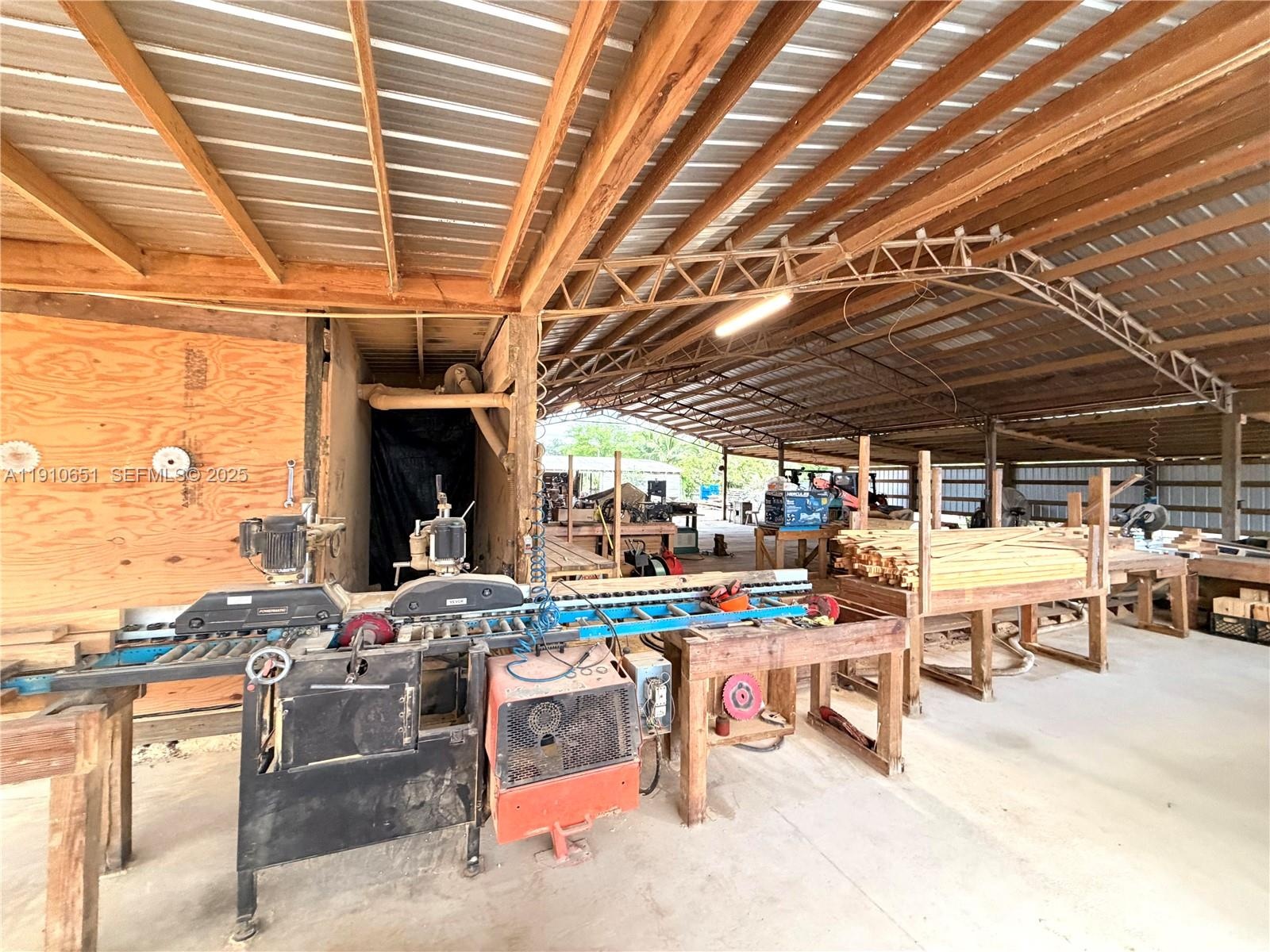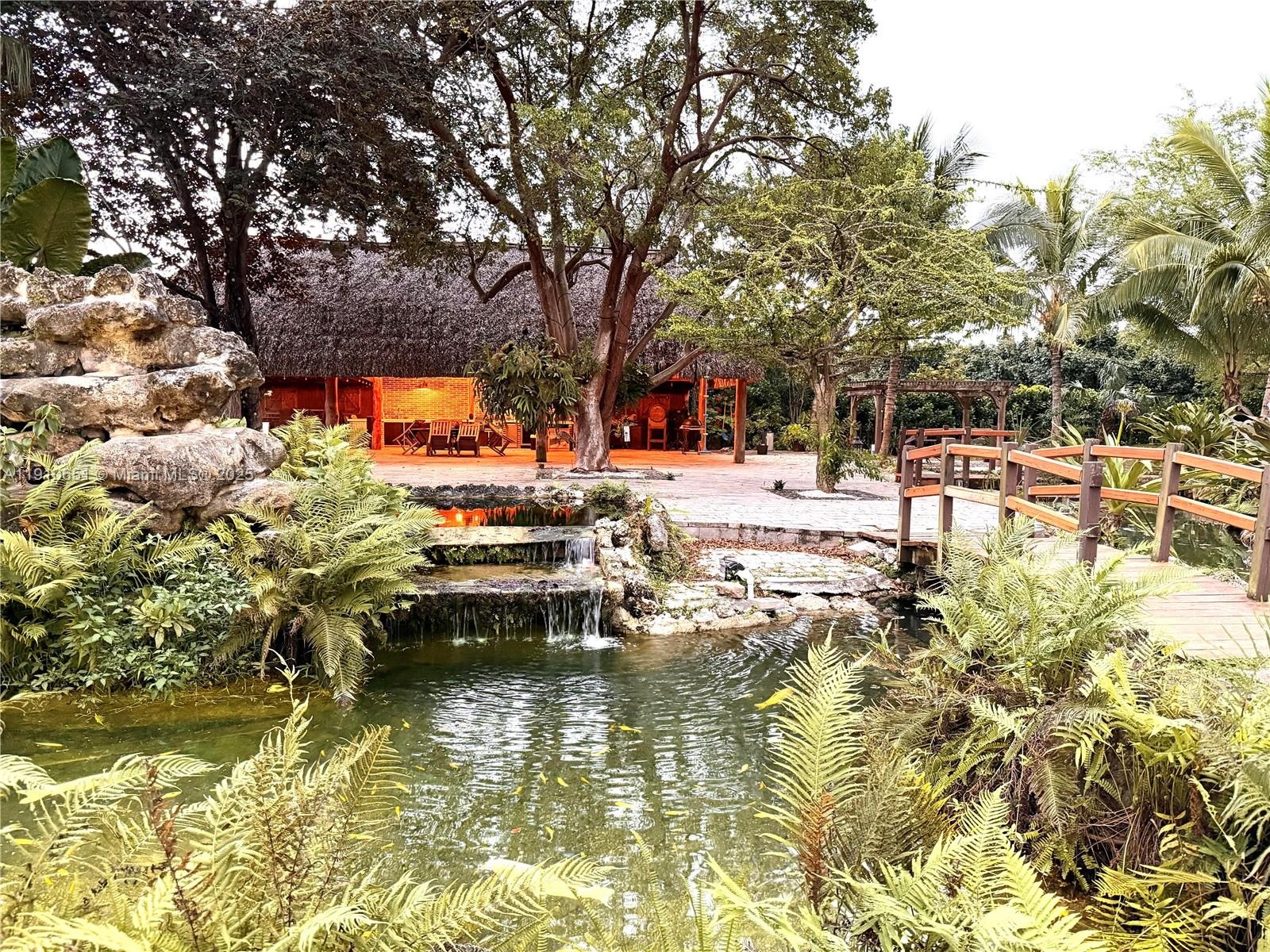 Lovely Redland Estate House 4.81 Acre Relaxing unique chimney, french doors, family room overlooking fish pond & waterfall, & 1,500 sq. ft. custom built gazebo with pavers, kitchen, BBQ, lighting, & 2 outdoor bthrms. Garage convert., metal roof. Whole house electrical panel flip from FPL to generator. Peaceful living, opportunity to create a profitable Airbnb & host rustic yet elegant event for over 50 cars. Additional multi-use buildings include: 5 workshops - electric, & water, of which the largest is 5,760 sqft, RV area, horse stable. Industrial Irrigation Perkin Pump (1,400 GPM)., lush gardens,. Fruit trees. Custom built playhouse Agri. Classified = lower taxes.. More than a home it's a serene lifestyle and business opportunity where creativity, & profitability can come together.