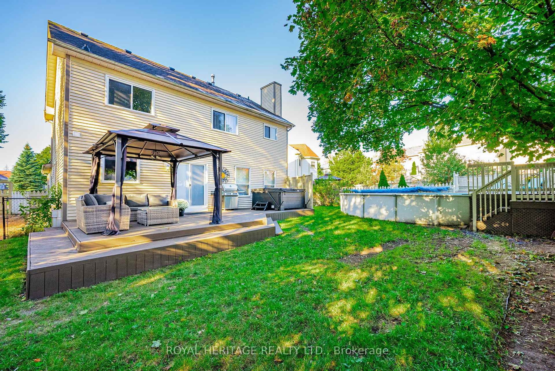 OPEN HOUSE SATURDAY NOVEMBER 08 & SUNDAY NOVEMBER 09 @ 2:00 - 4:00 pm. Location! Location!! Location!!! Finished From Top To Bottom Detached 2 Storey 4+1 bedrooms, 4-bathrooms tucked away on a quiet court in a desirable Pinecrest community. Designed for family living, the main floor offers a modern kitchen updated in 2022, with stainless steel appliances combined with the family room and walkout to a private fenced backyard complete with a hot tub, above-ground pool with new liner 2025, and dog run. Separate Living and Dining Rooms could also be converted to a main floor offices. New Broadloom on Stairs (2025) leading up and into the Primary bedroom. Upper floor also features four spacious bedrooms including a primary suite with ensuite bath and walk in closet. The fully finished basement adds exceptional living space with a large recreation area, custom wet bar, and a cozy gas fireplace, a full 3 piece bathroom plus an additional room ideal for guests. Conveniently located close to schools, parks, shopping, and minutes to Hwy 401, this home offers comfort, style, and a fantastic family-friendly setting. Be sure to check out the virtual tour!