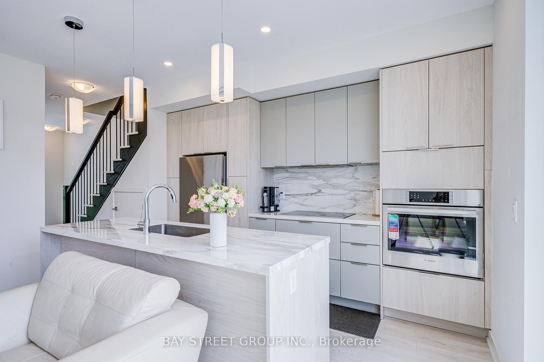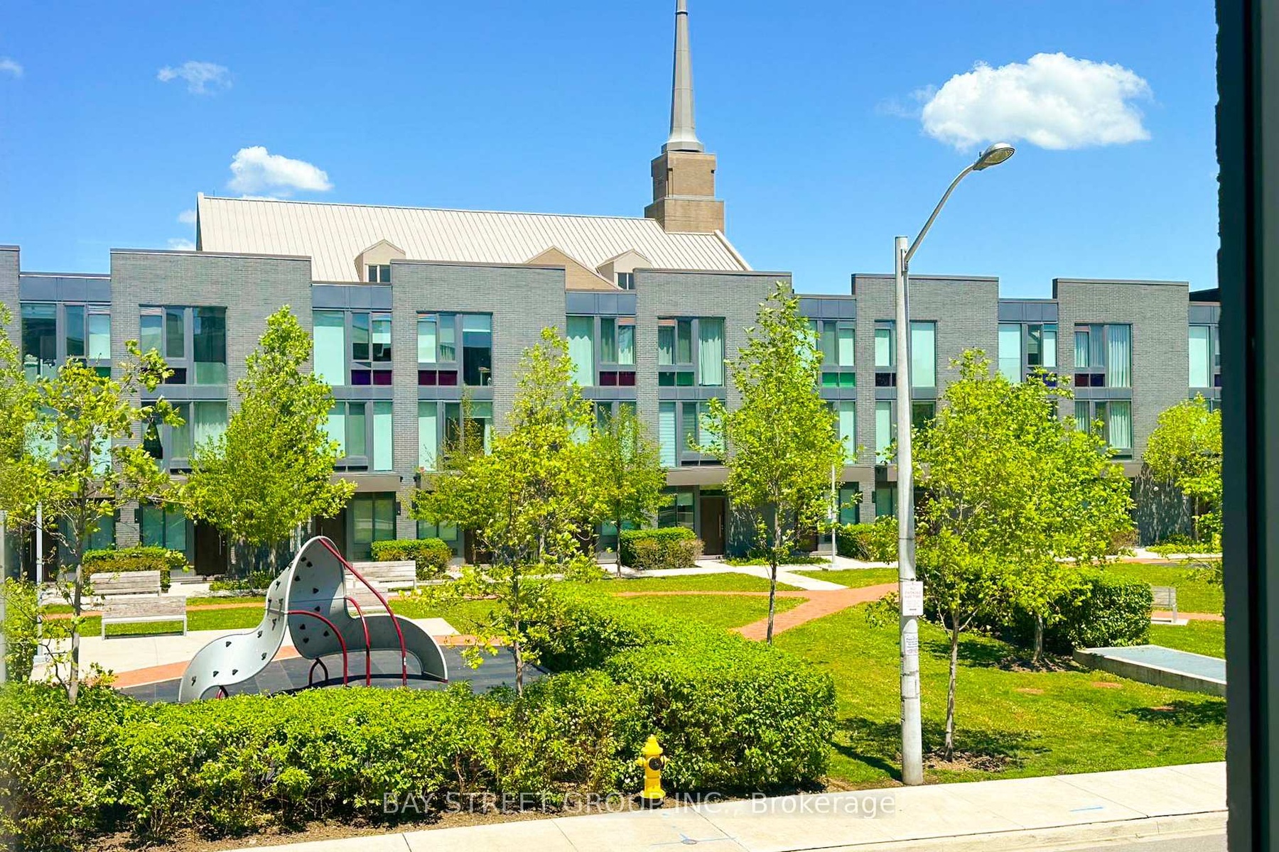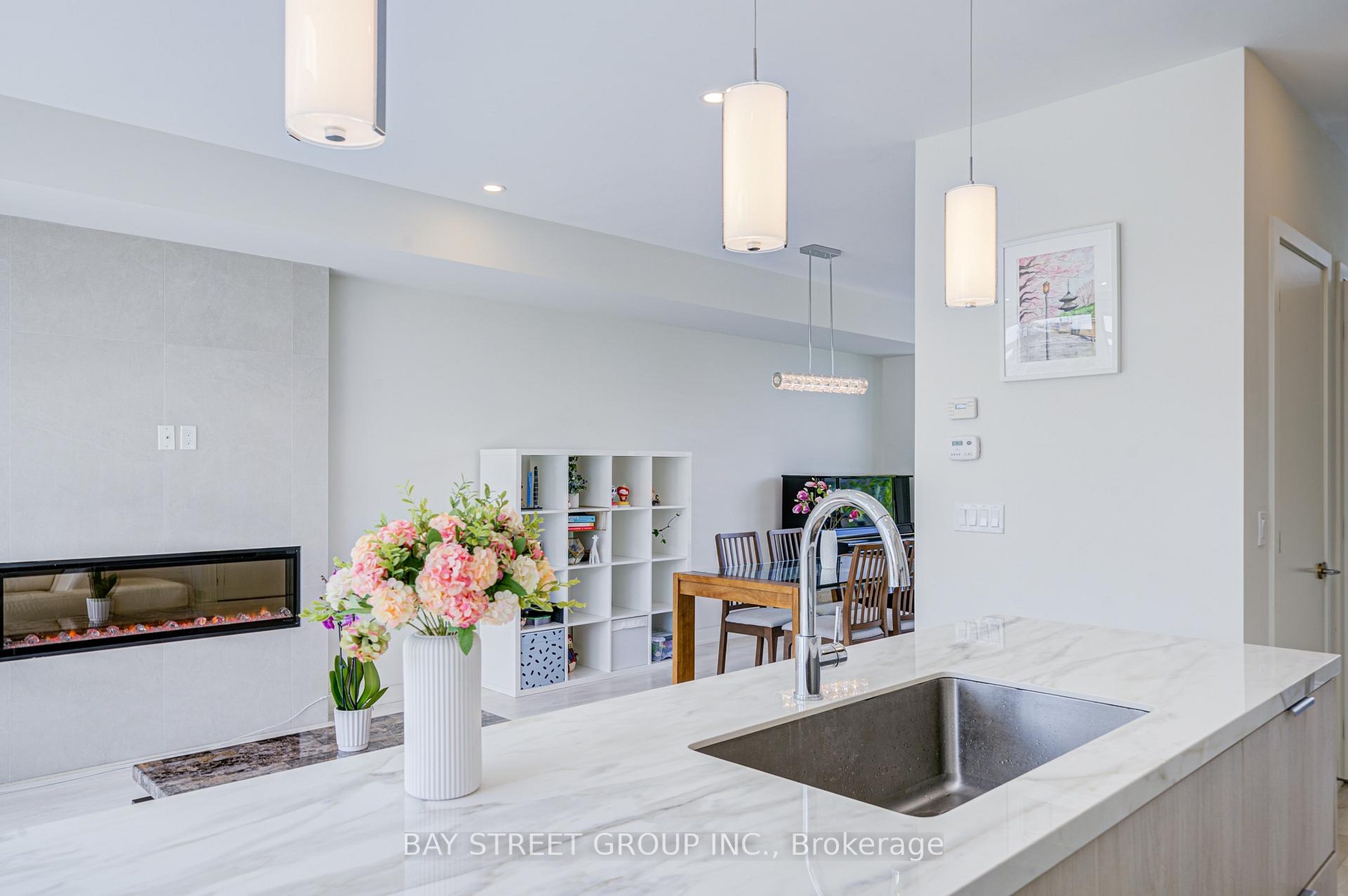 This luxury 3-bedroom townhouse features 9-foot smooth ceilings throughout. Sunlight pours in through floor-to-ceiling windows showcasing park views. The open-concept kitchen impresses with custom cabinetry, stone slab countertops, and an oversized island. The ground-level suite offers heated floors. Enjoy direct garage access from the foyer. Premium condo amenities include a gym, sauna, game rooms, and rooftop barbecue area. The location can't be beat - walkable to the future Crosstown LRT and TTC hub. Surrounded by parks and shops, it's minutes from the DVP, 401, Science Centre, and Museum.