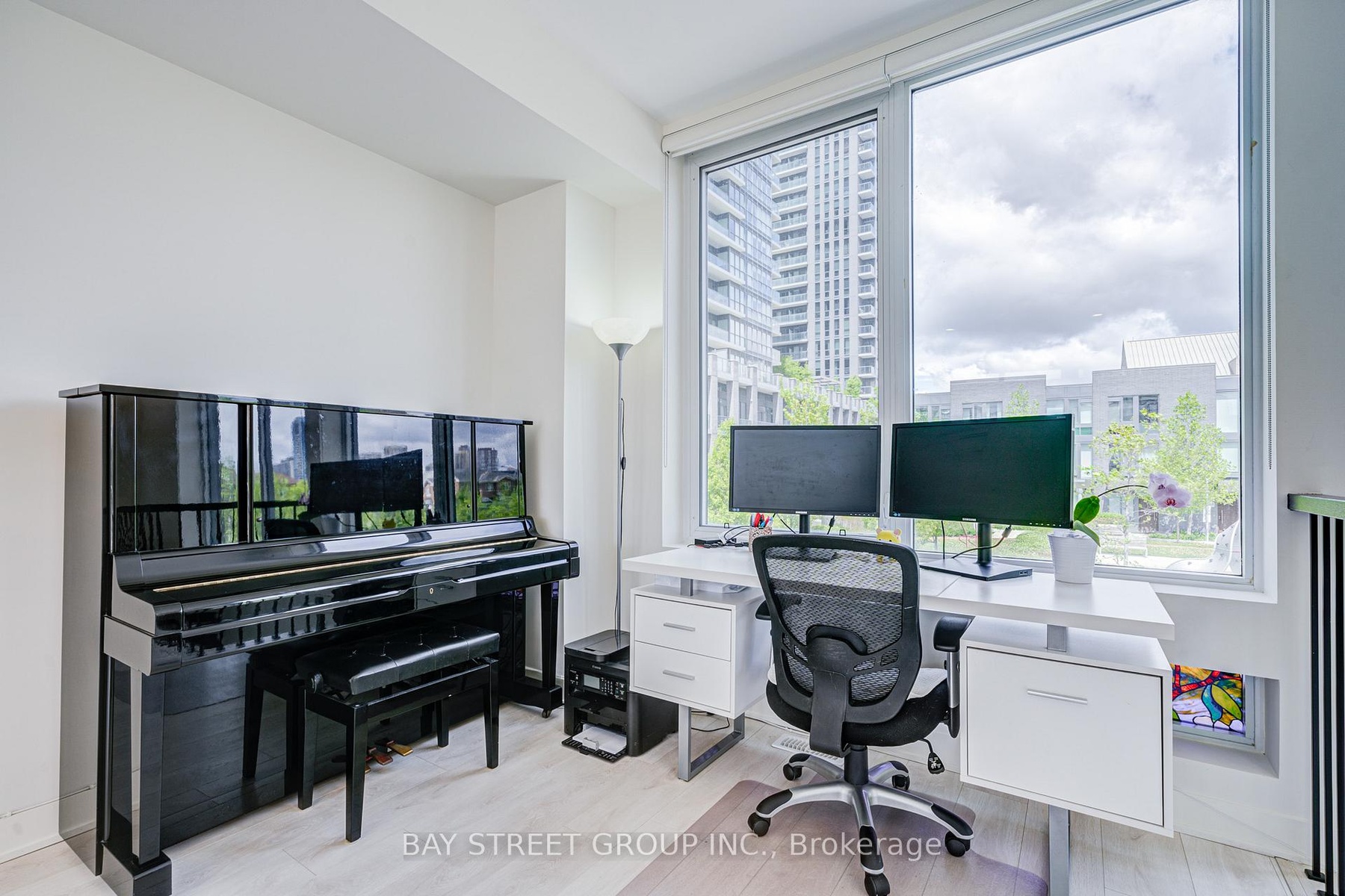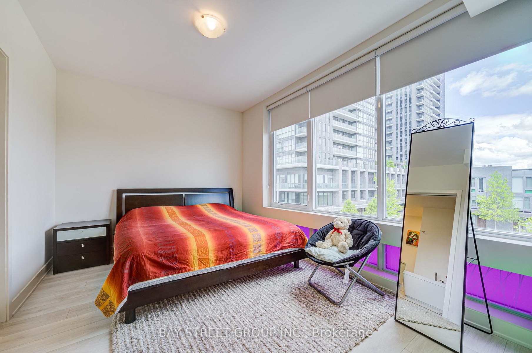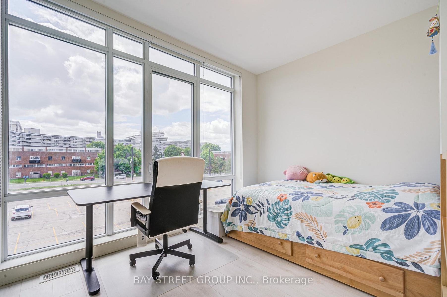 This luxury 3-bedroom townhouse features 9-foot smooth ceilings throughout. Sunlight pours in through floor-to-ceiling windows showcasing park views. The open-concept kitchen impresses with custom cabinetry, stone slab countertops, and an oversized island. The ground-level suite offers heated floors. Enjoy direct garage access from the foyer. Premium condo amenities include a gym, sauna, game rooms, and rooftop barbecue area. The location can't be beat - walkable to the future Crosstown LRT and TTC hub. Surrounded by parks and shops, it's minutes from the DVP, 401, Science Centre, and Museum.