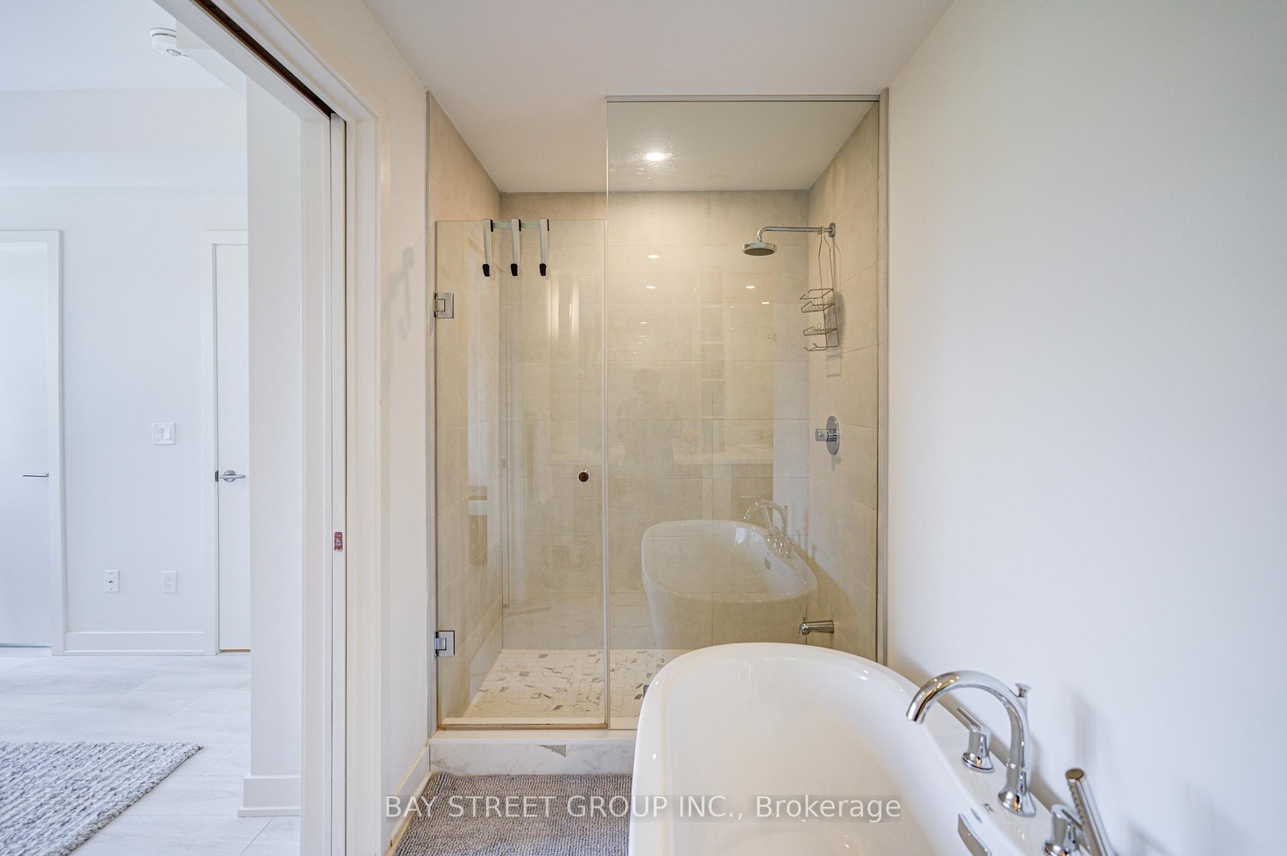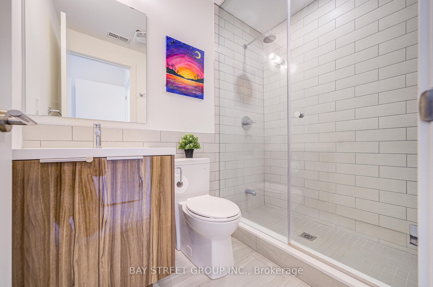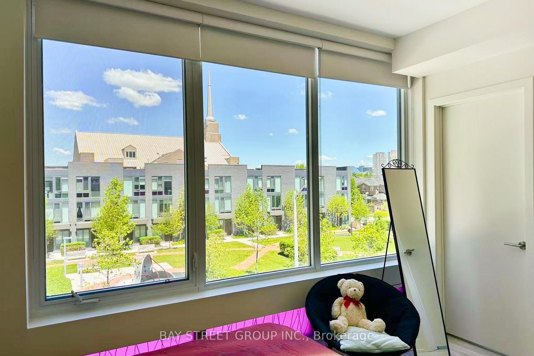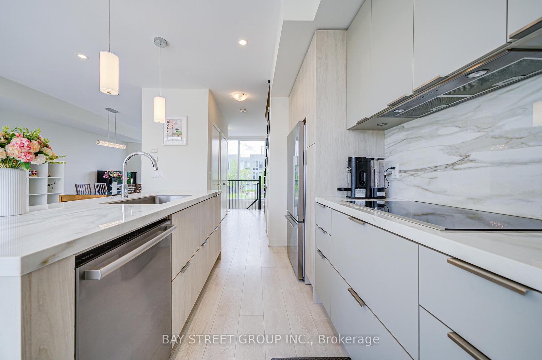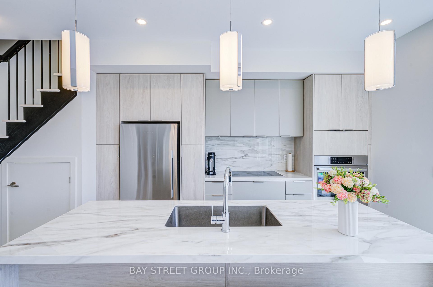 This luxury 3-bedroom townhouse features 9-foot smooth ceilings throughout. Sunlight pours in through floor-to-ceiling windows showcasing park views. The open-concept kitchen impresses with custom cabinetry, stone slab countertops, and an oversized island. The ground-level suite offers heated floors, a kitchenette, private washroom, and separate entrance - ideal for guests or rental income. Enjoy direct garage access from the foyer. Premium condo amenities include a gym, sauna, game rooms, and rooftop barbecue area. The location can't be beat - walkable to the future Crosstown LRT and TTC hub. Surrounded by parks and shops, it's minutes from the DVP, 401, Science Centre, and Museum.