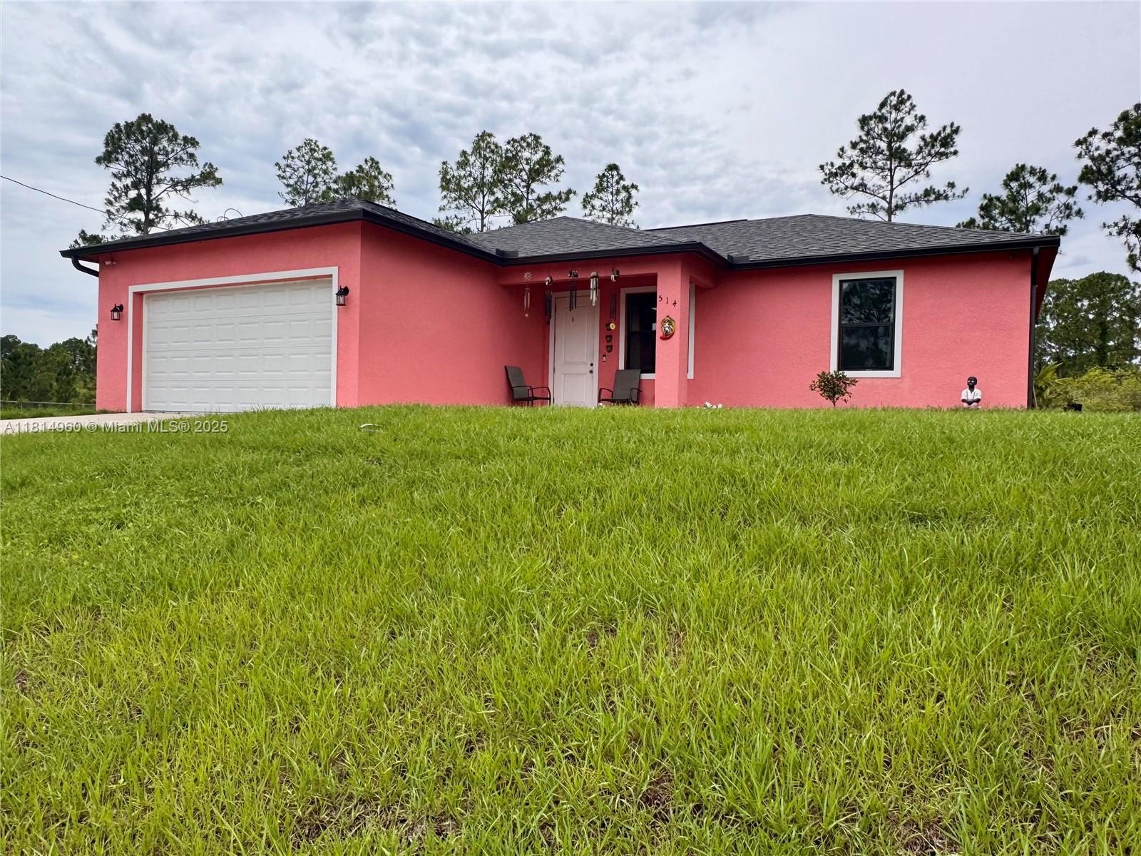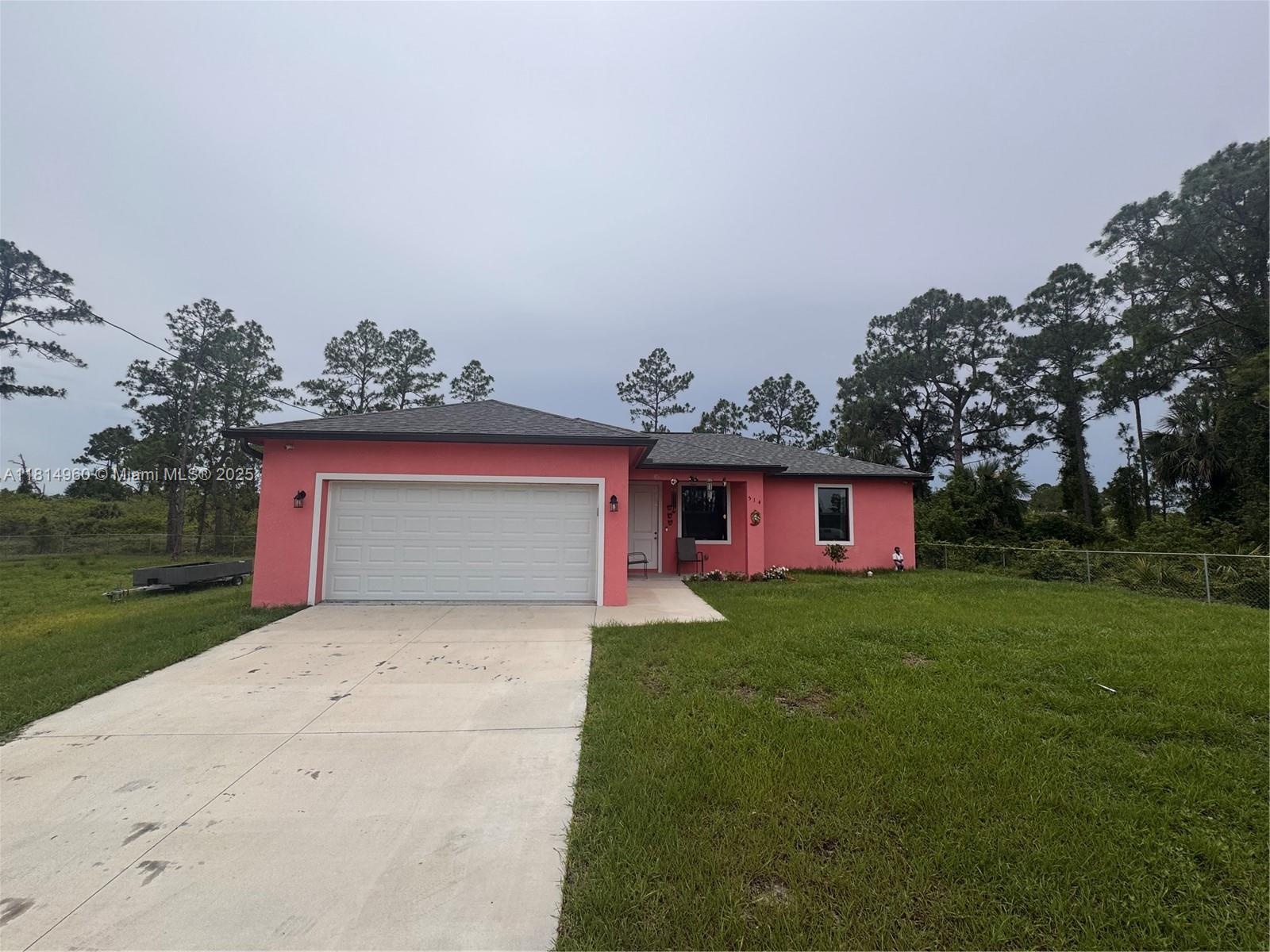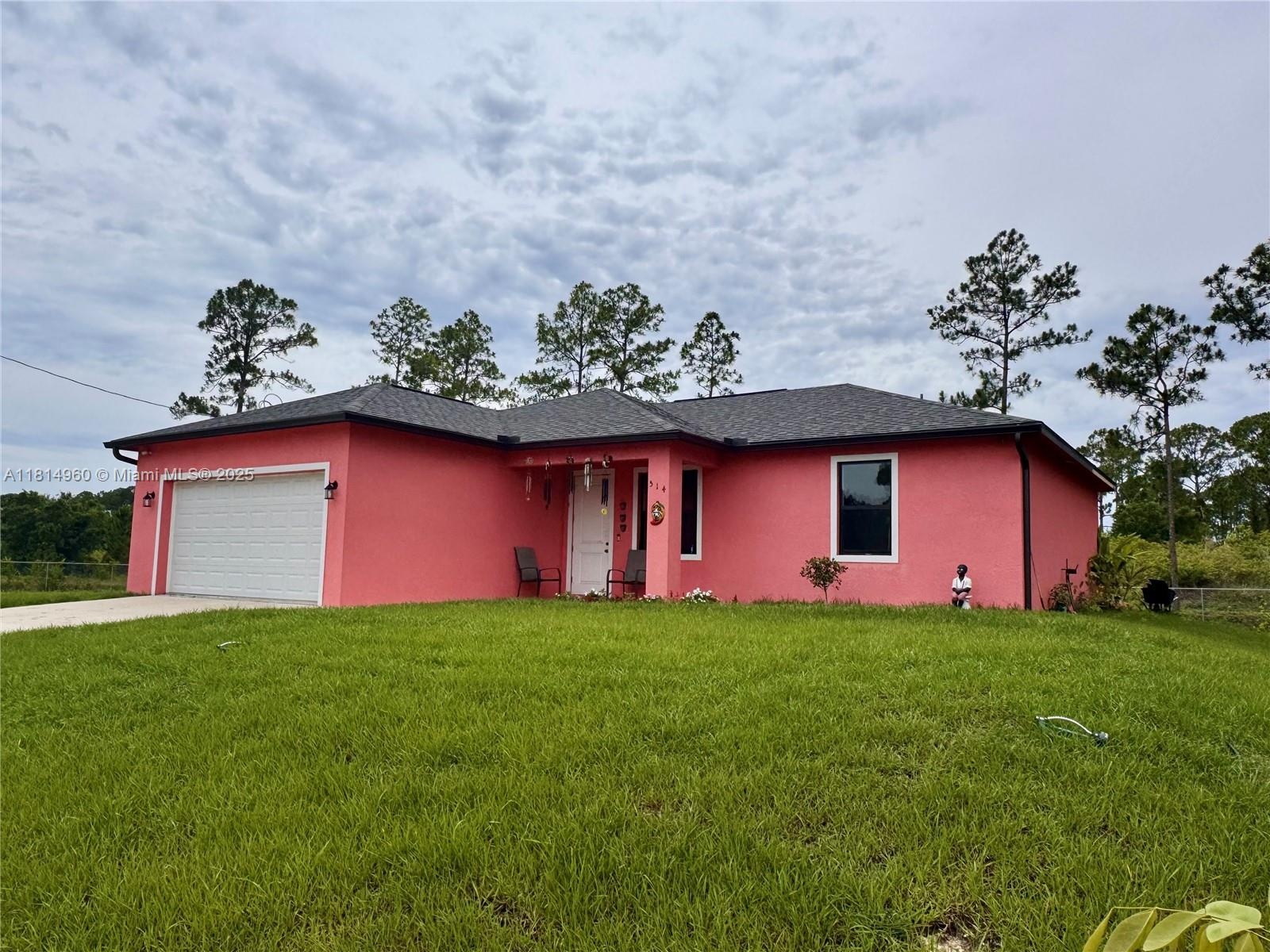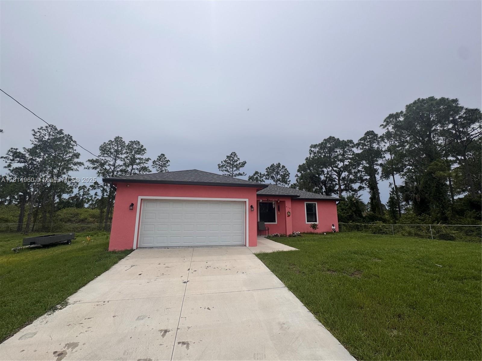 Discover this 2022-built home on a rare oversized 20,000 sq.ft. lot with canal access in Lehigh Acres! This property combines modern construction with space and privacy—perfect for those seeking tranquility without sacrificing convenience. Tile flooring throughout & the roof still has 10 years remaining on its warranty. Originally two separate parcels (Lots 8 and 9), this unique property offers the opportunity to build an additional structure on the second lot—ideal for future expansion, guest house, or investment potential. The backyard offers beautiful views of the canal. Located in a quiet neighborhood with easy access to Fort Myers, shopping, dining, & major roadways. Don’t miss this opportunity!