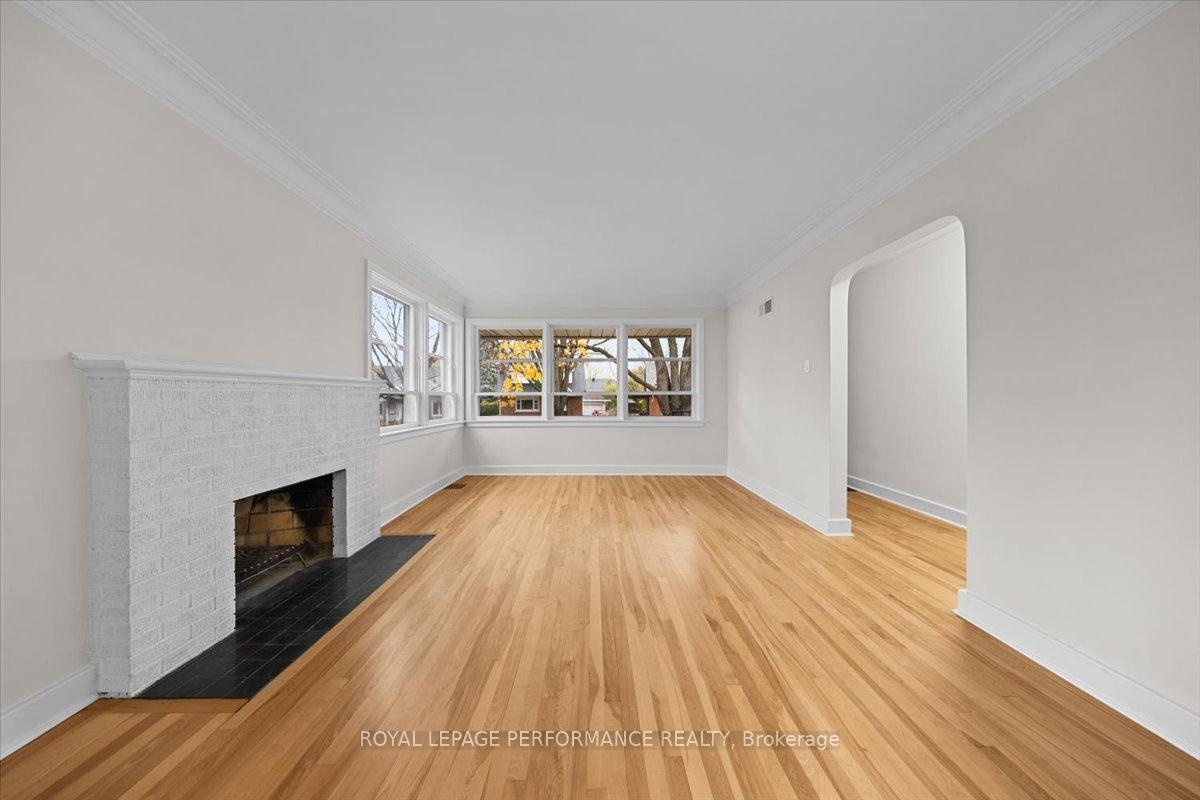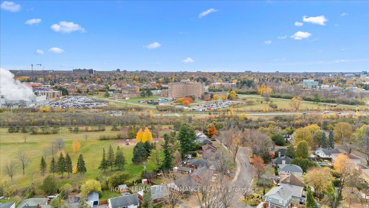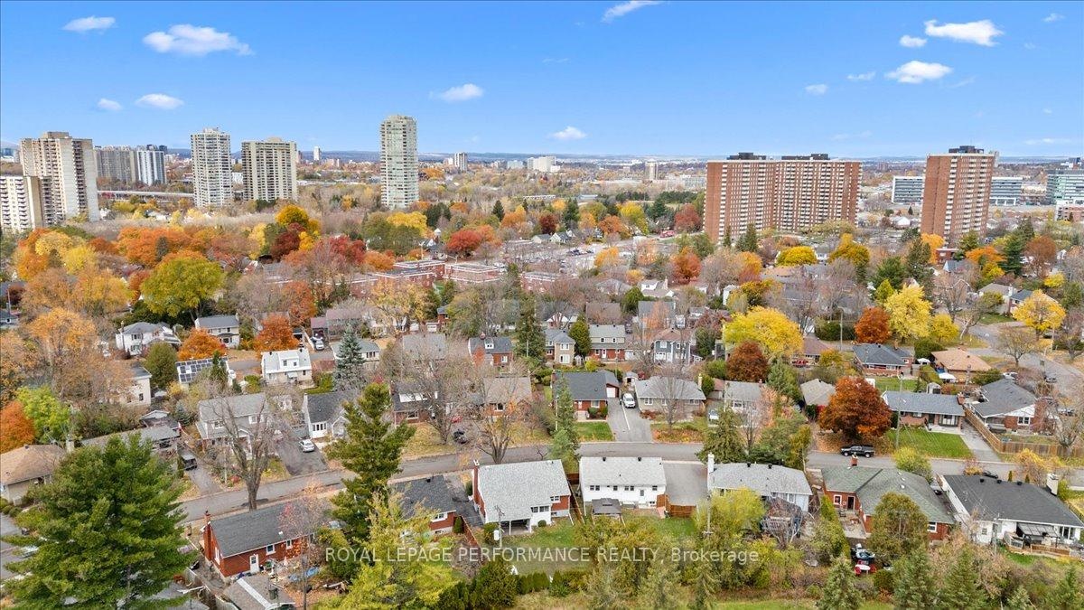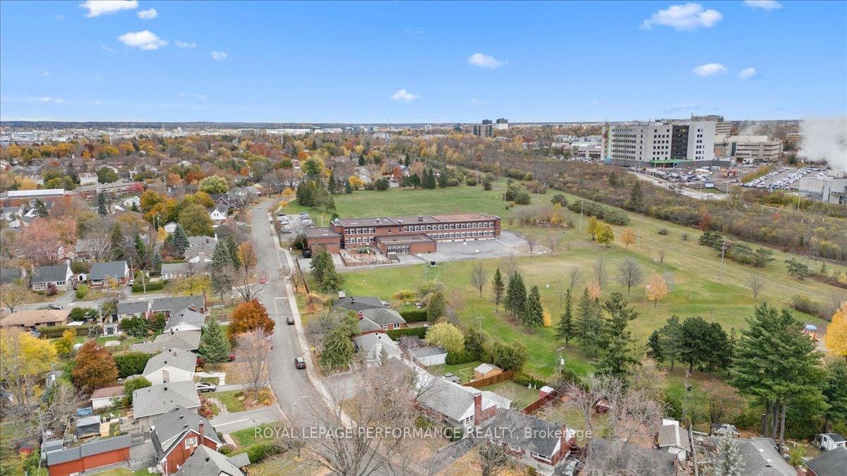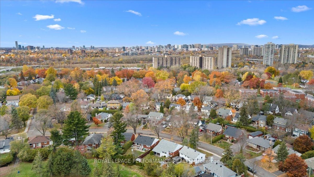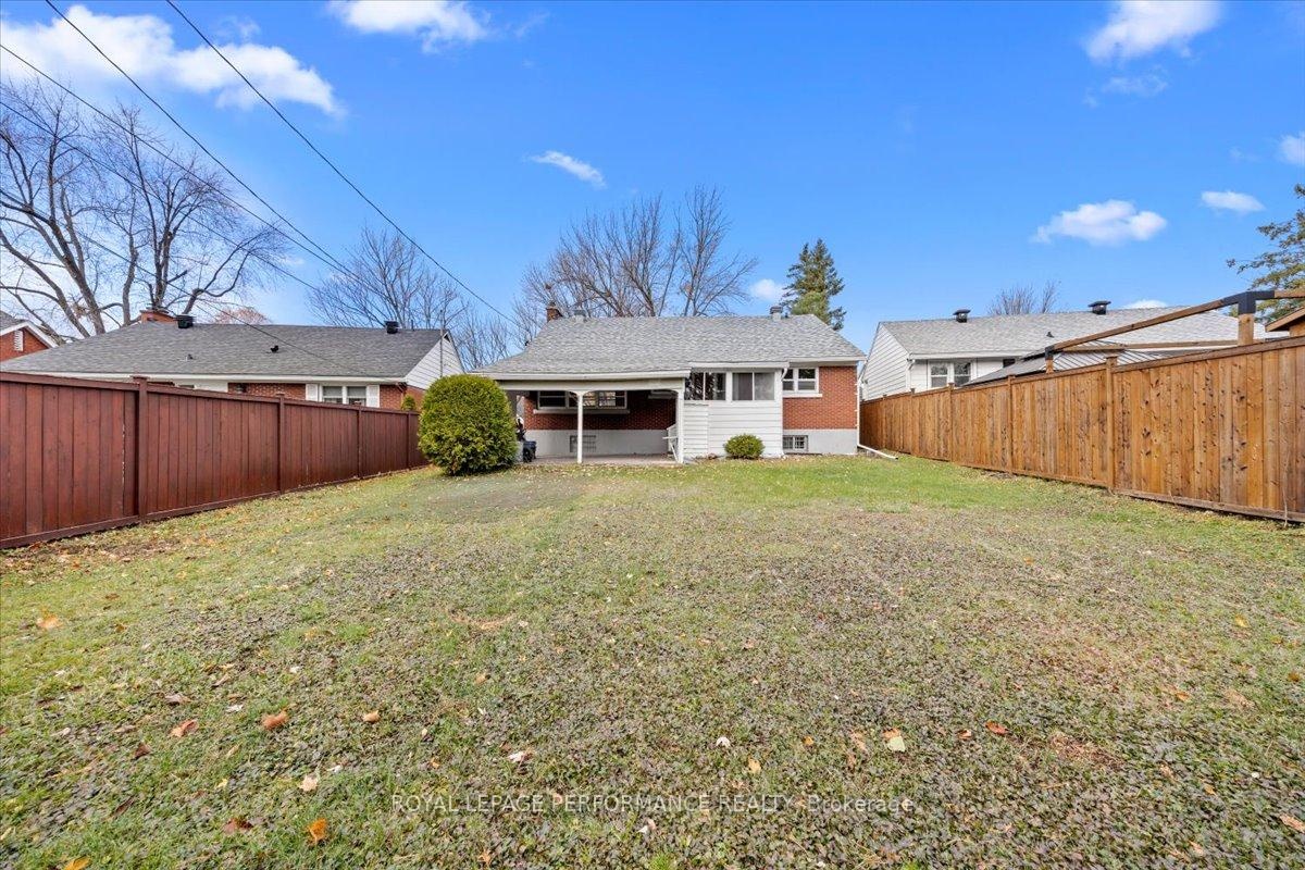 Bright 3-bedroom bungalow in a sought-after, family-friendly neighbourhood in the heart of Riverview Park. Cozy living room is complimented with a wood-burning fireplace plus corner windows allowing natural light to come through. The eat-in kitchen offers a new countertop, sink, and vinyl flooring. Separate dining room off the kitchen with built-in glassed shelves. Original hardwood floors throughout were cleaned, sanded and refinished. Recent repairs/maintenance include: painting throughout (walls, ceilings, doors and cupboard), kitchen ceiling re-drywalled and new lighting fixtures installed, new cabinet and vinyl flooring in bathroom, replaced switches and outlets, installed GFI outlets near sinks. Basement was cleaned up and is ready for potential for a secondary dwelling or in-law suite or large recreation room (wallboards, framing and flooring removed; dividing walls in centre of basement and laundry area removed; stairway carpet removed, steps and stairwell repaired and painted; new vinyl flooring and cabinet installed in bathroom). Enjoy the private setting backing onto Riverview Park from the covered porch and beautiful fenced backyard. This home is ideal for families or investors alike! Convenient walking path to Ottawa General Hospital, CHEO, NDMC and Oak Park Seniors Residence. Situated just minutes from the Trainyards Shopping District, transit routes, parks, schools, public transit and downtown.
