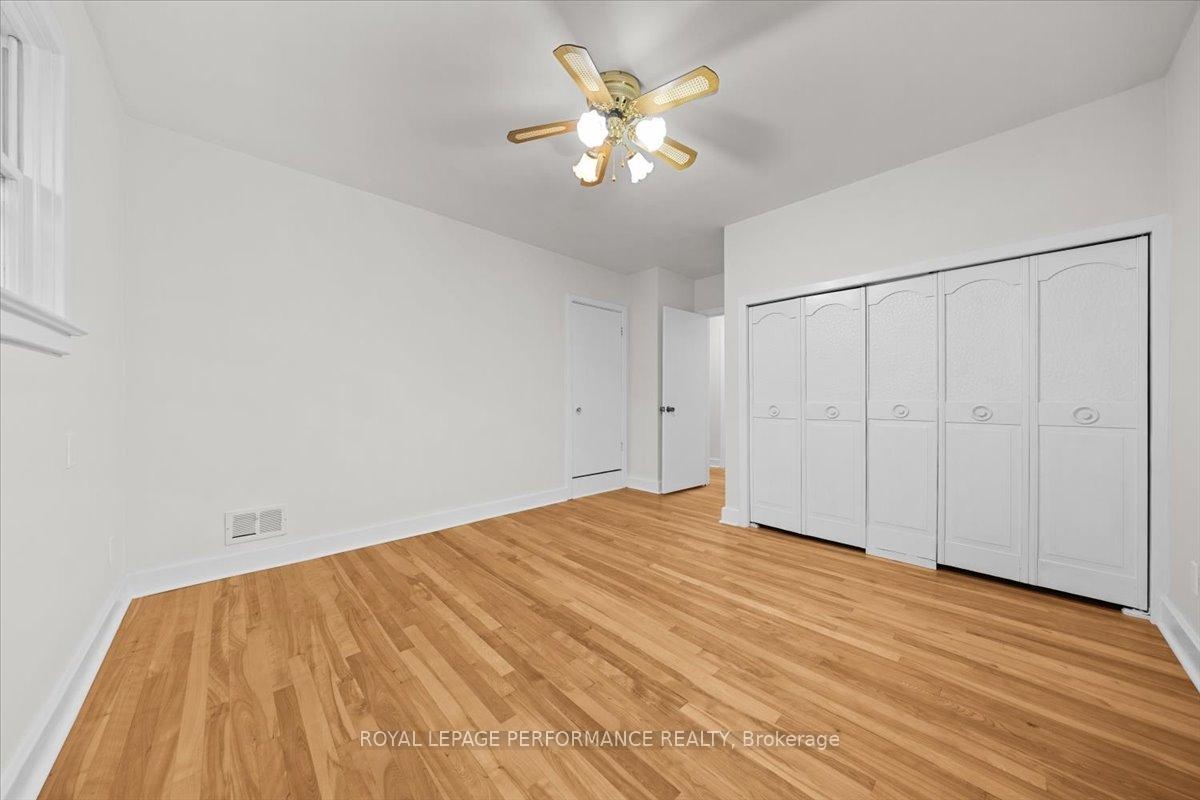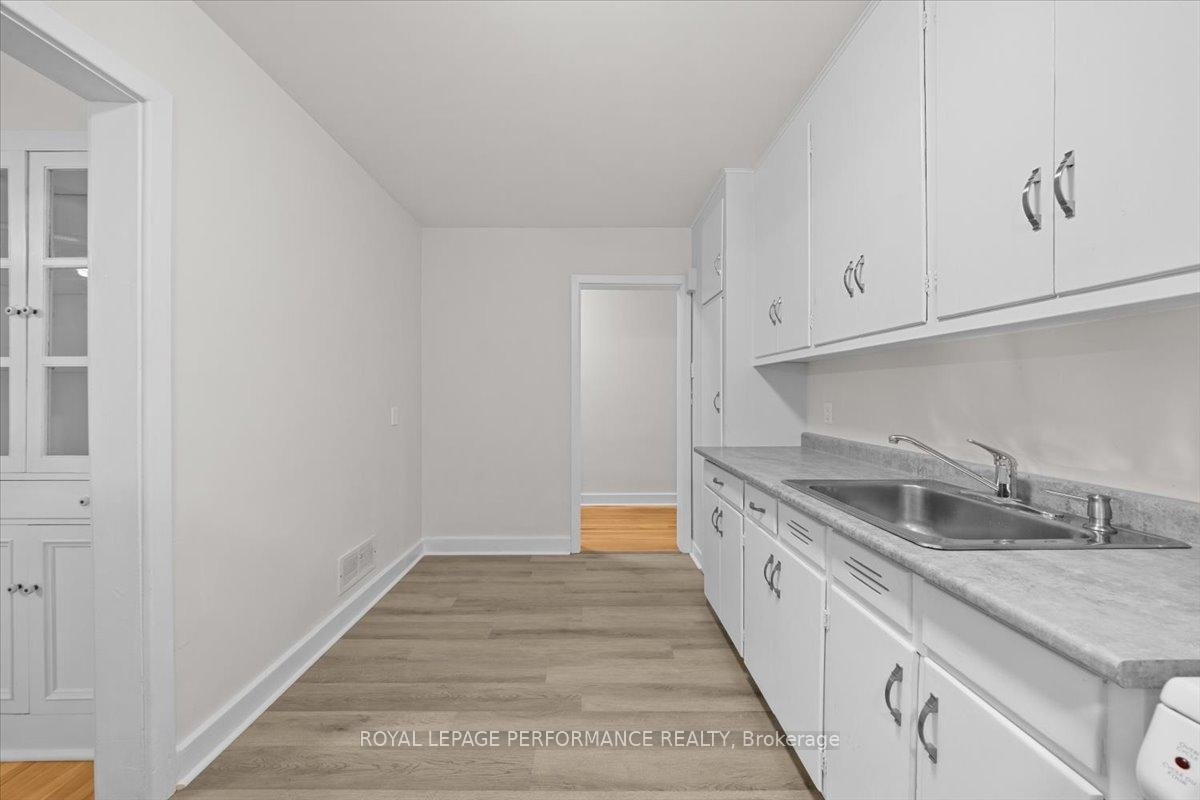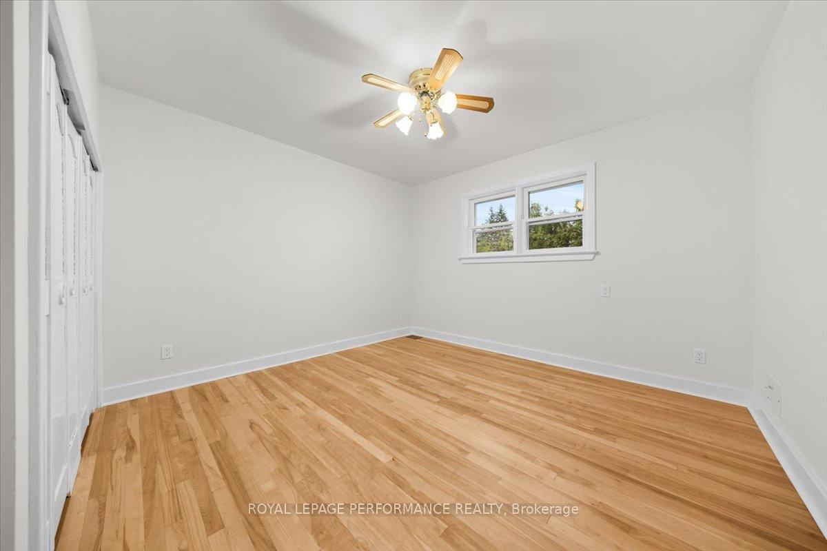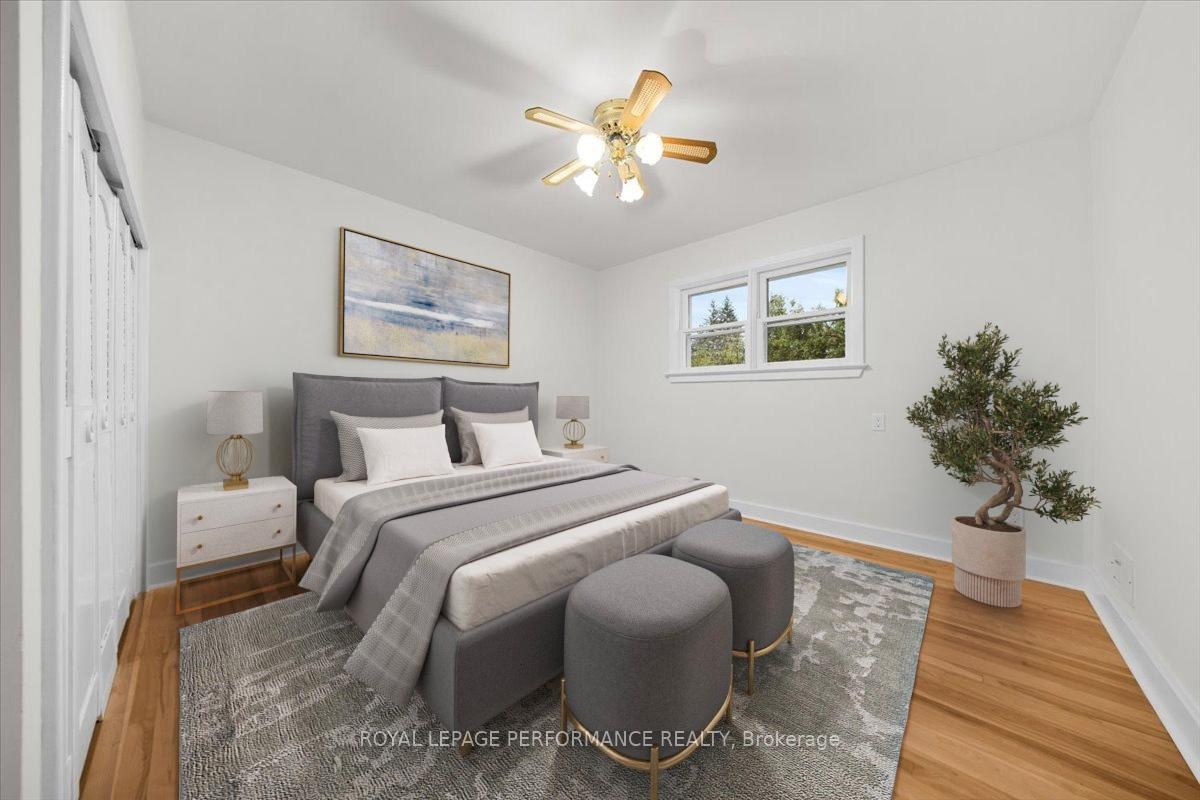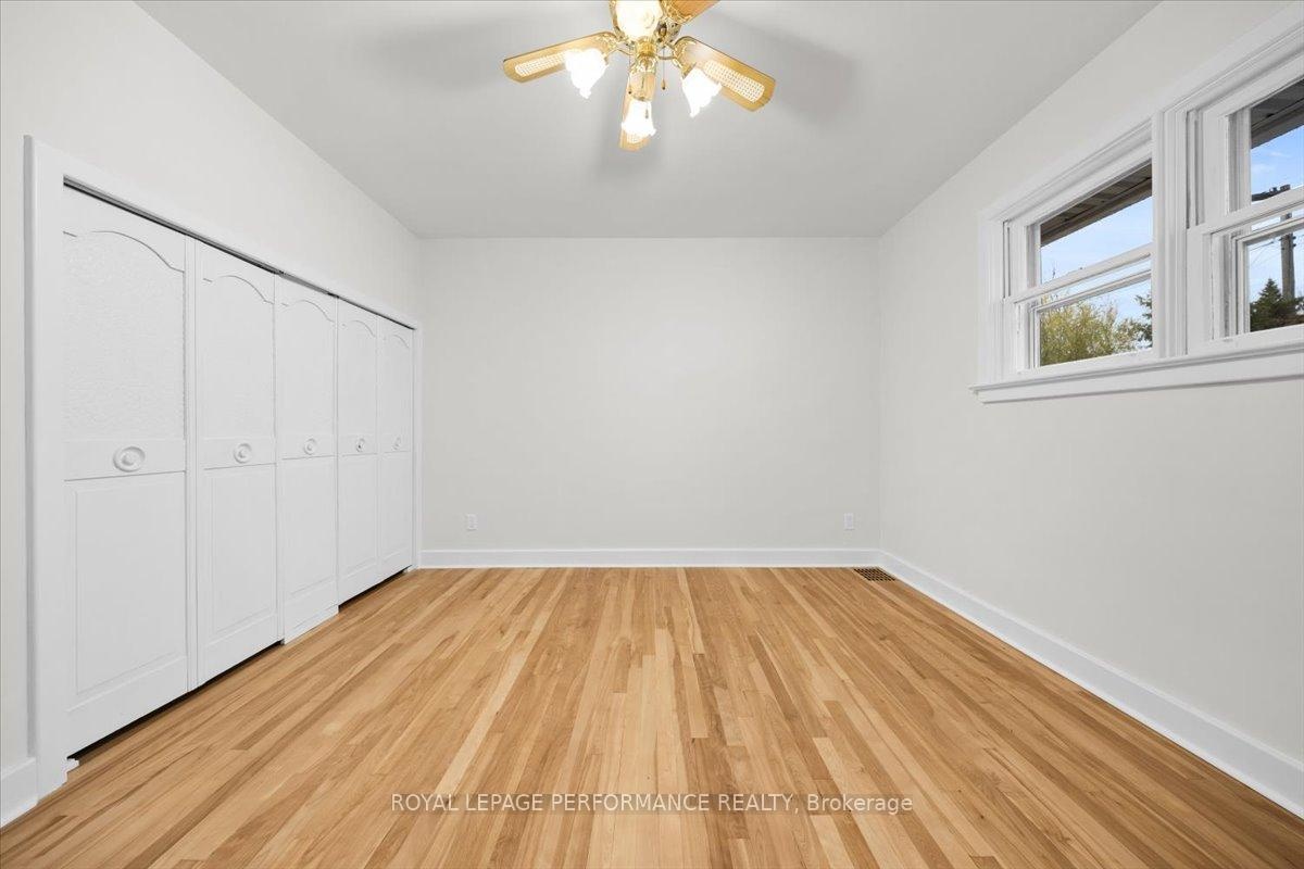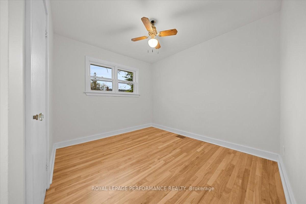 Bright 3-bedroom bungalow in a sought-after, family-friendly neighbourhood in the heart of Riverview Park. Cozy living room is complimented with a wood-burning fireplace plus corner windows allowing natural light to come through. The eat-in kitchen offers a new countertop, sink, and vinyl flooring. Separate dining room off the kitchen with built-in glassed shelves. Original hardwood floors throughout were cleaned, sanded and refinished. Recent repairs/maintenance include: painting throughout (walls, ceilings, doors and cupboard), kitchen ceiling re-drywalled and new lighting fixtures installed, new cabinet and vinyl flooring in bathroom, replaced switches and outlets, installed GFI outlets near sinks. Basement was cleaned up and is ready for potential for a secondary dwelling or in-law suite or large recreation room (wallboards, framing and flooring removed; dividing walls in centre of basement and laundry area removed; stairway carpet removed, steps and stairwell repaired and painted; new vinyl flooring and cabinet installed in bathroom). Enjoy the private setting backing onto Riverview Park from the covered porch and beautiful fenced backyard. This home is ideal for families or investors alike! Convenient walking path to Ottawa General Hospital, CHEO, NDMC and Oak Park Seniors Residence. Situated just minutes from the Trainyards Shopping District, transit routes, parks, schools, public transit and downtown.