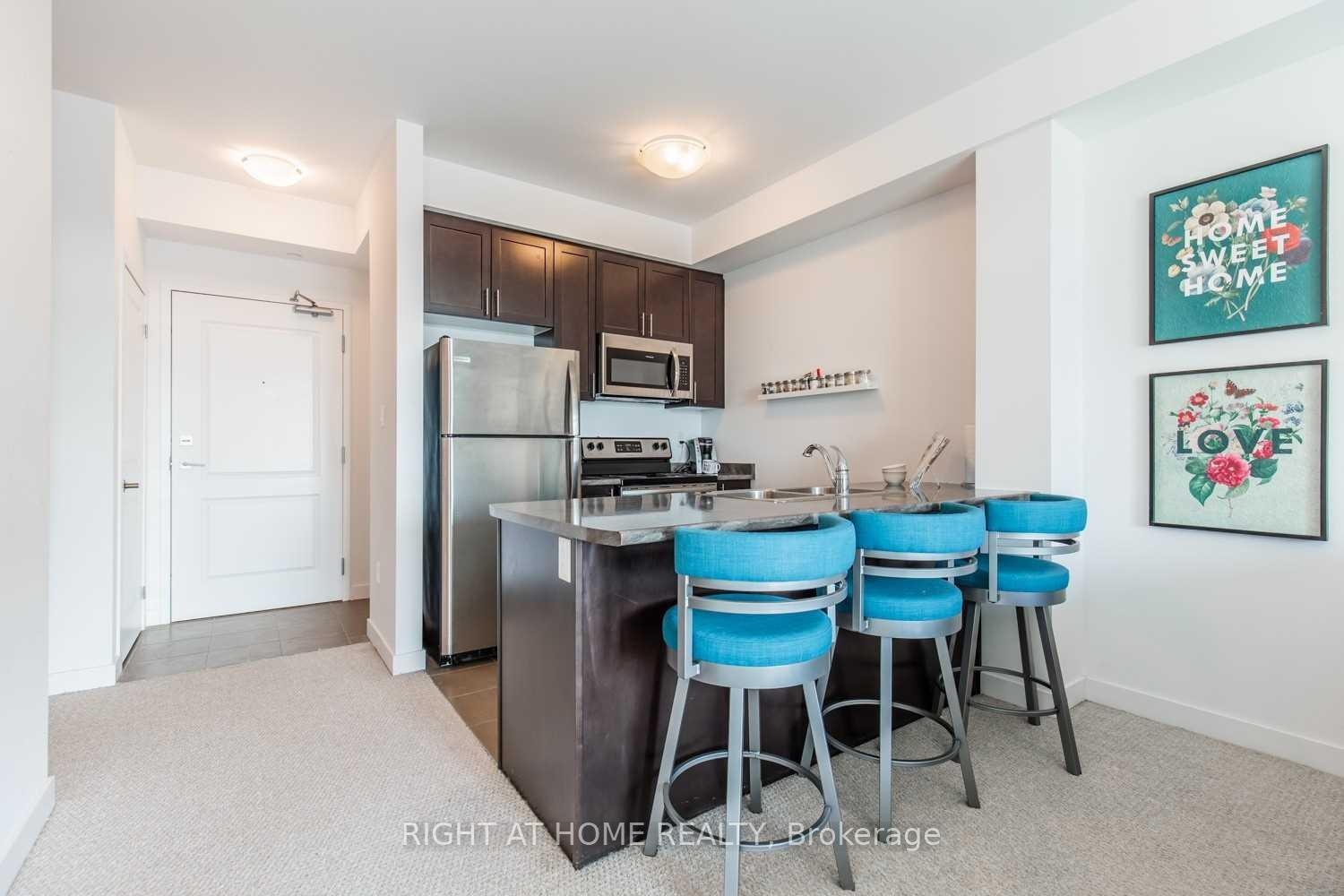 Welcome To The Highly Sought-After Sapphire Condos On The Lake! This Bright And Inviting 1 Bedroom + Den Suite Offers A Functional Layout With Modern Finishes Throughout. Natural Light Flows Into The Open-Concept Living Area Through The Balcony Walk-Out, Creating A Warm And Welcoming Space To Relax And Unwind. The Kitchen Is Equipped With Stainless Steel Appliances, Quartz Countertops, And Ample Storage. The Den Provides Nice Versatility For A Home Office Or Cozy Reading Nook. Enjoy The Rooftop Terrace Overlooking The Water, Fully Equipped Fitness Centre, Party Room, And Meeting Room.Conveniently Located Just Steps From The Waterfront, Walking Trails, Parks, And Minutes To Highway Access, GO Station, Shops, And Restaurants. Come See It And You'll Love It!